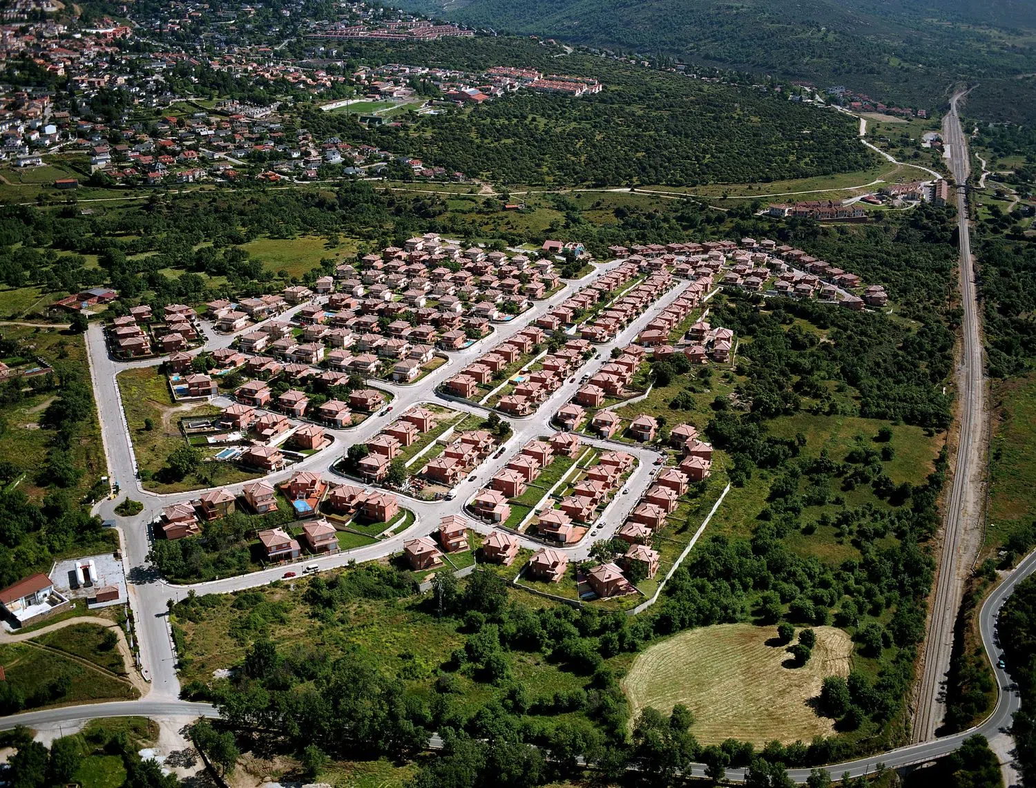 Die Urbanisierung besteht aus 259 Chalets, von denen mehr als die Hälfte das ganze Jahr über bewohnt sind. Es gibt sieben verschiedene Chalet-Typen, sowohl Doppelhäuser als auch freistehende, mit drei bis vier Schlafzimmern, mit oder ohne zusätzlichem Keller. Die Wohnflächen variieren zwischen 158 m² und 243 m², auf Grundstücken von 400 bis 600 m². Alle sind bezugsfertig und verfügen über die Erlaubnis zur Erstbewohnung sowie ein Energiezertifikat. Die hervorragenden Ausblicke auf die Berge und die hochwertige Ausstattung der Möbel und Innenbereiche sind besonders zu erwähnen. Die Chalets sind mit Hydromassage-Säulen und modernster Hausautomation ausgerüstet.
