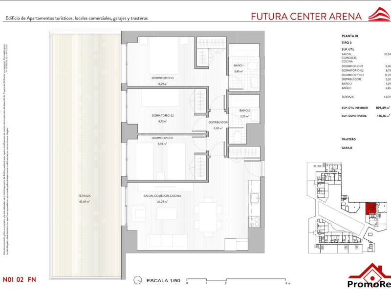 ¡ÚLTIMAS UNIDADES! FUTURA CENTER ARENAEl más ambicioso - PISO DE 319.000 € con 3 dormitorios, 126m2 en la primera planta con dos plazas de garaje y terraza.Ubicado en la misma boca de Metro de Rivas Futura (línea 9), alberga muchos servicios, destacamos un hospital privado, una residencia y locales comerciales para el Ocio.Dentro del complejo, estos apartamentos turísticos se localizan en las plantas de la 2ª a 7ª, destacándose por sus terrazas, Piscina, zonas ajardinadas, control de accesos, lobby, espacios multiusos donde celebrar reuniones y eventos, gimnasio, spa, lavandería…En la mayoría de los apartamentos, están incluidos en el precio, plaza de garaje y trastero.Los servicios, la ubicación, el diseño y los acabados Porcelanosa, hacen de este proyecto un lugar único, donde podrás cumplir tu sueño.IVA no incluido.