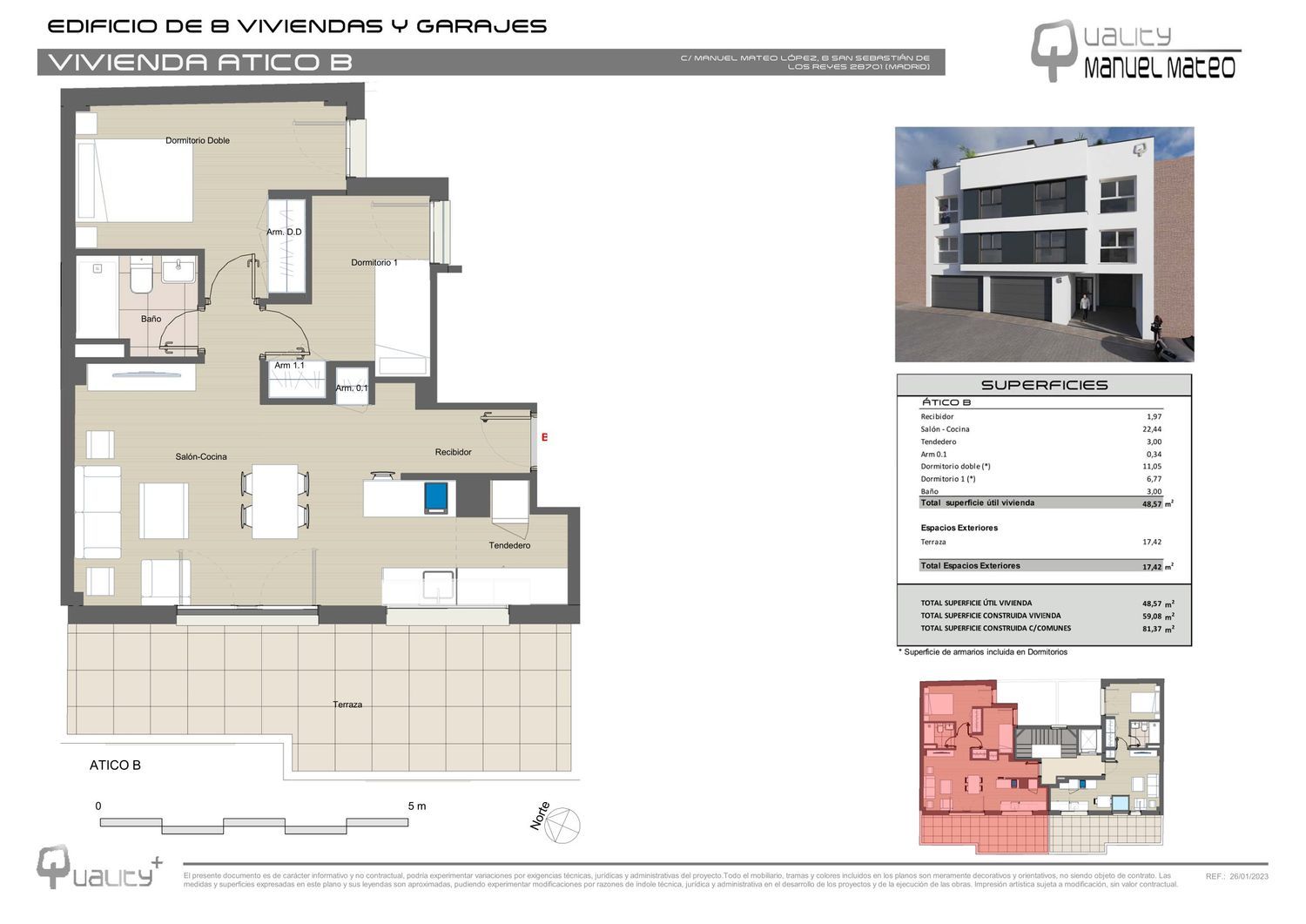 OBRAS INICIADAS.Viviendas de obra nueva de 1 y 2 dormitorios, algunos de ellos con patio/ terraza en el centro de San Sebastián de los Reyes (Calle Manuel Mateo López 6).Calificación Energética Clase A, lo que permite reducir el consumo significativamente (hasta un 40%). Dicho de otro modo… con esta vivienda ahorrarás en la factura eléctrica. Todo ello gracias al suelo radiante/ refrescante impulsado por aerotermia, apoyo de Aerotermo para el ACS, ventanas con doble acristalamiento con rotura de puente térmico, gran aislamiento en fachadas…Plaza de garaje y trastero opcional.Las viviendas están proyectadas pensando en el confort de la familia que la vaya a disfrutar ¿serás tú?Fecha prevista de entrega último trimestre 2024.Escríbenos y estaremos encantados de atender cualquier duda/ consulta que te pueda surgir.