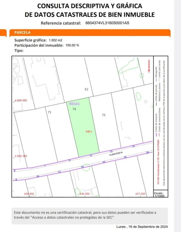 Amplia parcela en urbanización consolidada de chalets, tranquila, adyacente al núcleo urbano de Soto y centro de salud, rodeada de áreas de equipamiento deportivo, zonas verdes y campo. Vend...