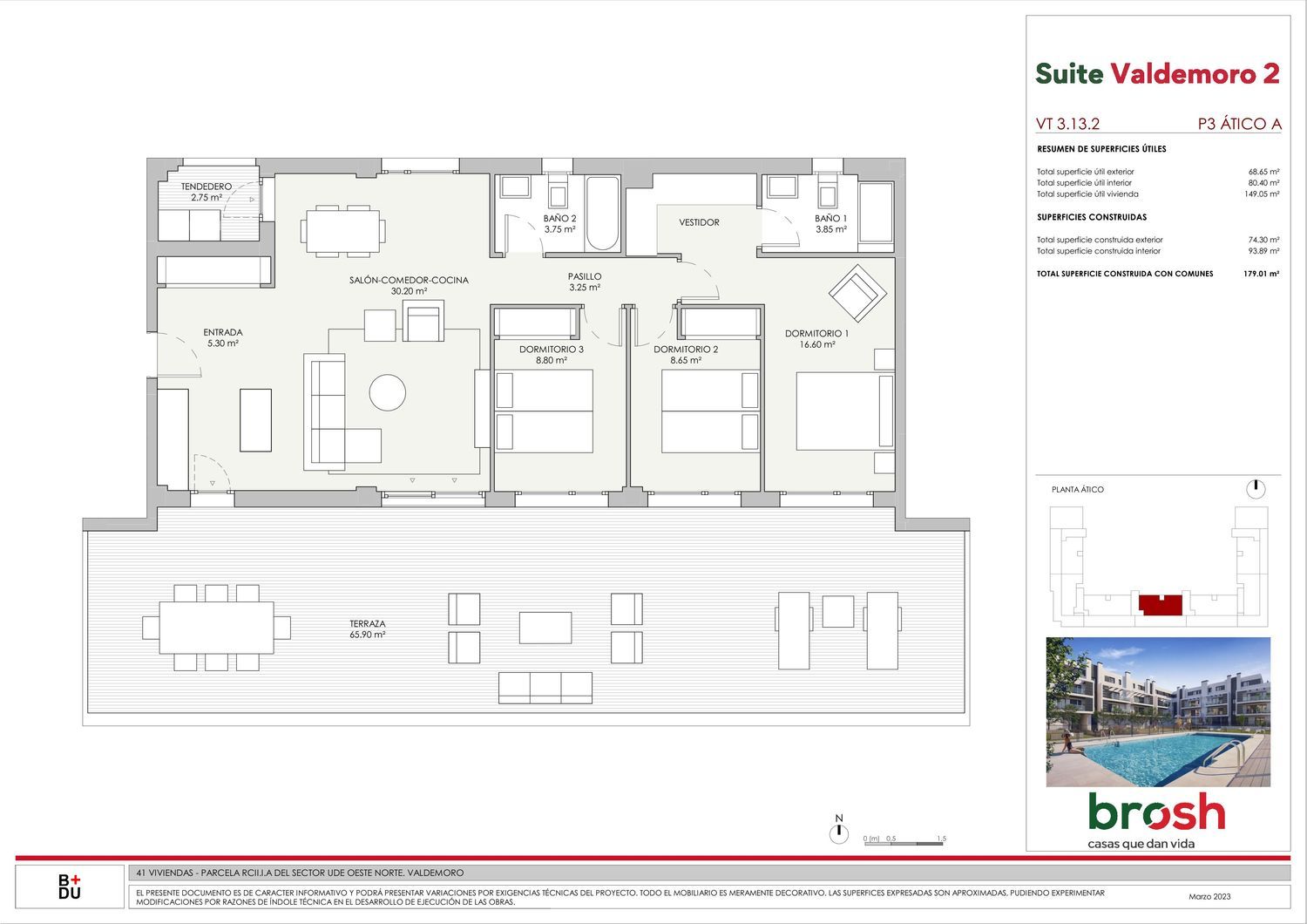 Nuestro proyecto se desarrolla en una exclusiva urbanización privada compuesta por 41 viviendas en altura, con opciones de 3 y 4 dormitorios, y la posibilidad de 1 o 2 plazas de garaje y trastero incluido. Esta promoción de 4 plantas cuenta con áticos y bajos, y ha sido diseñada pensando en satisfacer tus nuevas necesidades. Hemos pensado en tu comodidad, por eso todas nuestras viviendas cuentan con una terraza, para que puedas aprovechar los días soleados al máximo. Además, hemos seleccionado marcas como Porcelanosa Grupo, Laufen, grupo Quick Step y Hansgrohe para los acabados de cocina, baños y dormitorios, garantizando así la mejor calidad y estilo en tu nuevo hogar. Para brindarte un confort excepcional, tu nueva casa contará con un sistema de aerotermia con suelo radiante y refrescante, junto con ventilación mecánica, que te permitirá disfrutar de un ambiente fresco y saludable sin tener que abrir las ventanas. Cuando llegue el calor, podrás refrescarte en la piscina, mientras que los más pequeños se divertirán en el área infantil durante todo el año.Además, la promoción cuenta con una zona de street workout para que puedas mantenerte en forma sin excusas. También disponemos de una sala para eventos, donde podrás organizar reuniones o celebraciones especiales. Y, por supuesto, no nos hemos olvidado de los jardines, que transformarán tu comunidad en un espacio perfecto para el ocio y el relax en casa. En , te ofrecemos la oportunidad de personalizar tu vivienda, con una serie de opciones sin coste adicional. Podrás elegir entre tener tu cocina independiente o incorporarla al salón con una isla para separar ambas zonas, según tus preferencias y estilo de vida. Por último, queremos destacar la magnífica ubicación, muy cerca del Hospital Universitario Infanta Elena. Además, todos los servicios que necesitas en tu día a día están a poca distancia, y gracias a su excelente comunicación, con fácil acceso a las carreteras M423 y A4, estarás a tan solo 35 minutos del centro de Madrid. Descubre la modernidad y el confort que te ofrece , un lugar perfecto para vivir y disfrutar de tu nuevo hogar. ¡Contáctanos hoy mismo y comienza a hacer realidad tus sueños!