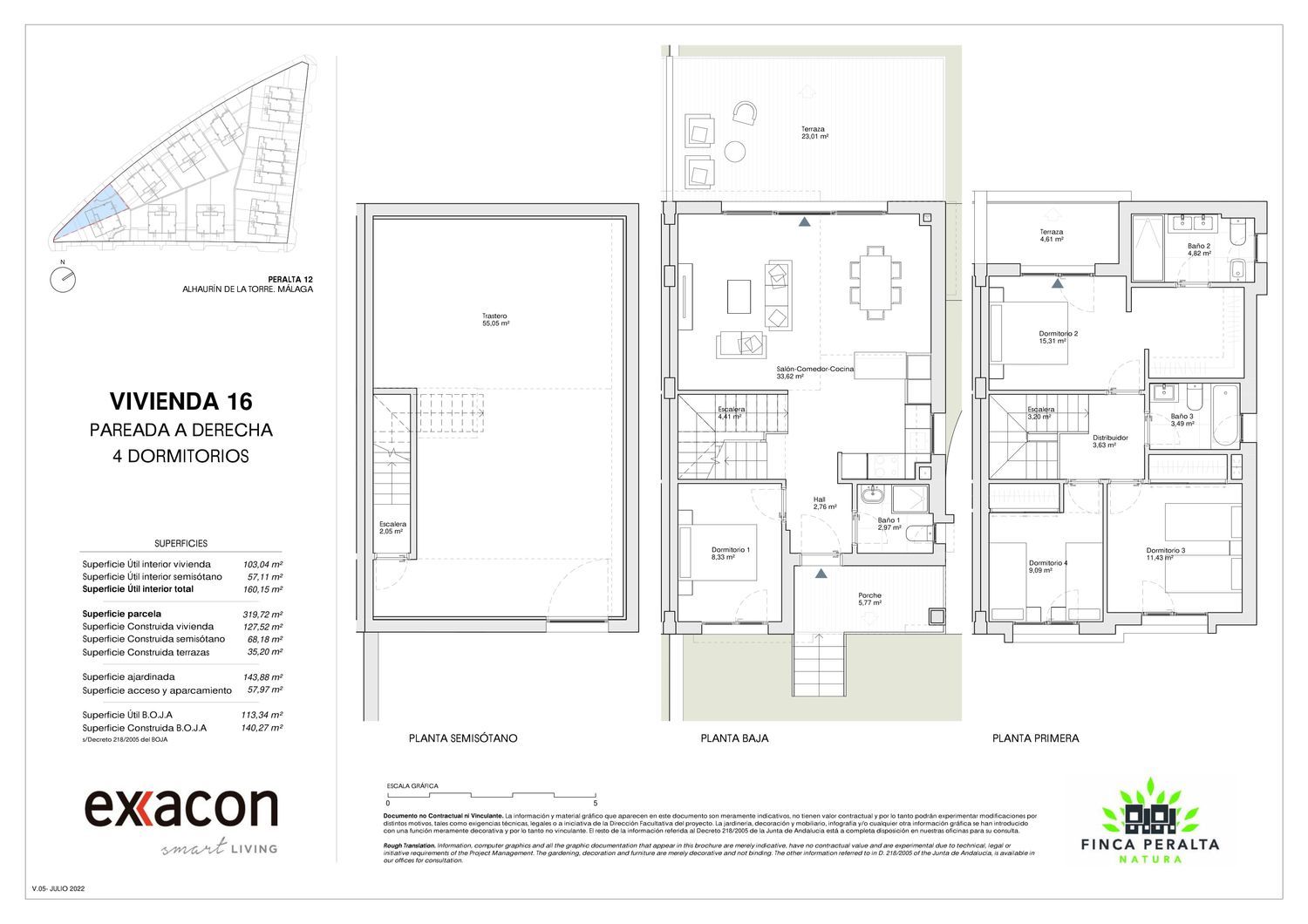 Exxacon Smart Living präsentiert die Finca Peralta Natura. Diese Phase ist Teil der bereits bestehenden städtischen Siedlung Finca Peralta in Alhaurin de la Torre. Die Siedlung besteht aus insgesamt 22 Häusern in einer Reihe, die sich auf 2 Etagen und ein Halbgeschoss verteilen, mit Parkplatz, Veranda und Terrasse mit direktem Zugang zu den gemeinschaftlichen Bereichen. Freuen Sie sich auf offene, sonnendurchflutete Räume in Ihrem neuen Zuhause. Das Viertel bietet eine ruhige Atmosphäre in einem Tal, umgeben von den Landschaften der Region Guadalhorse. Die Finca Peralta Natura ist 20 Minuten von der Hauptstadt Málaga und nur 15 Minuten vom internationalen Flughafen der Costa del Sol entfernt und sowohl mit öffentlichen als auch privaten Verkehrsmitteln gut angebunden. Die Ruhe der Natur ist nur ein paar Schritte entfernt. Die Reihenhäuser sind auf 3 Schlafzimmer, 2 Bäder und 1 Toilette verteilt. Die Innenausstattung umfasst ein Hauptschlafzimmer mit eigenem Bad, eine möblierte und integrierte Küche, um keinen Moment zu verpassen, um mit Freunden und Familie zu verbringen. Der Halbkeller der Häuser ist etwas Besonderes, denn dank seiner Geräumigkeit können Sie den perfekten Raum nach Ihren Wünschen gestalten. Momente der Entspannung und des Vergnügens für alle, gestalten Sie ihn nach Ihren Wünschen. Alle Häuser verfügen über einen eigenen Parkplatz. Die Finca Peralta Natura bietet vielseitige Räume, die alle lichtdurchflutet sind und in denen Funktionalität an erster Stelle steht. Weil wir wissen, was Ihnen wichtig ist, und weil wir Ihnen einen Ort bieten wollen, an dem Sie sich wohlfühlen.... wählen Sie die Finca Peralta Natura, Ihre beste Wahl, um sie Ihr Zuhause zu nennen. Nur Sie warten auf Sie! Das Ziel dieses Projekts ist es, seinen Besitzern ein Gefühl von Frieden, Ruhe, Gesundheit und Glück zu vermitteln. Fühlen Sie sich sicher in Ihrem neuen Zuhause.