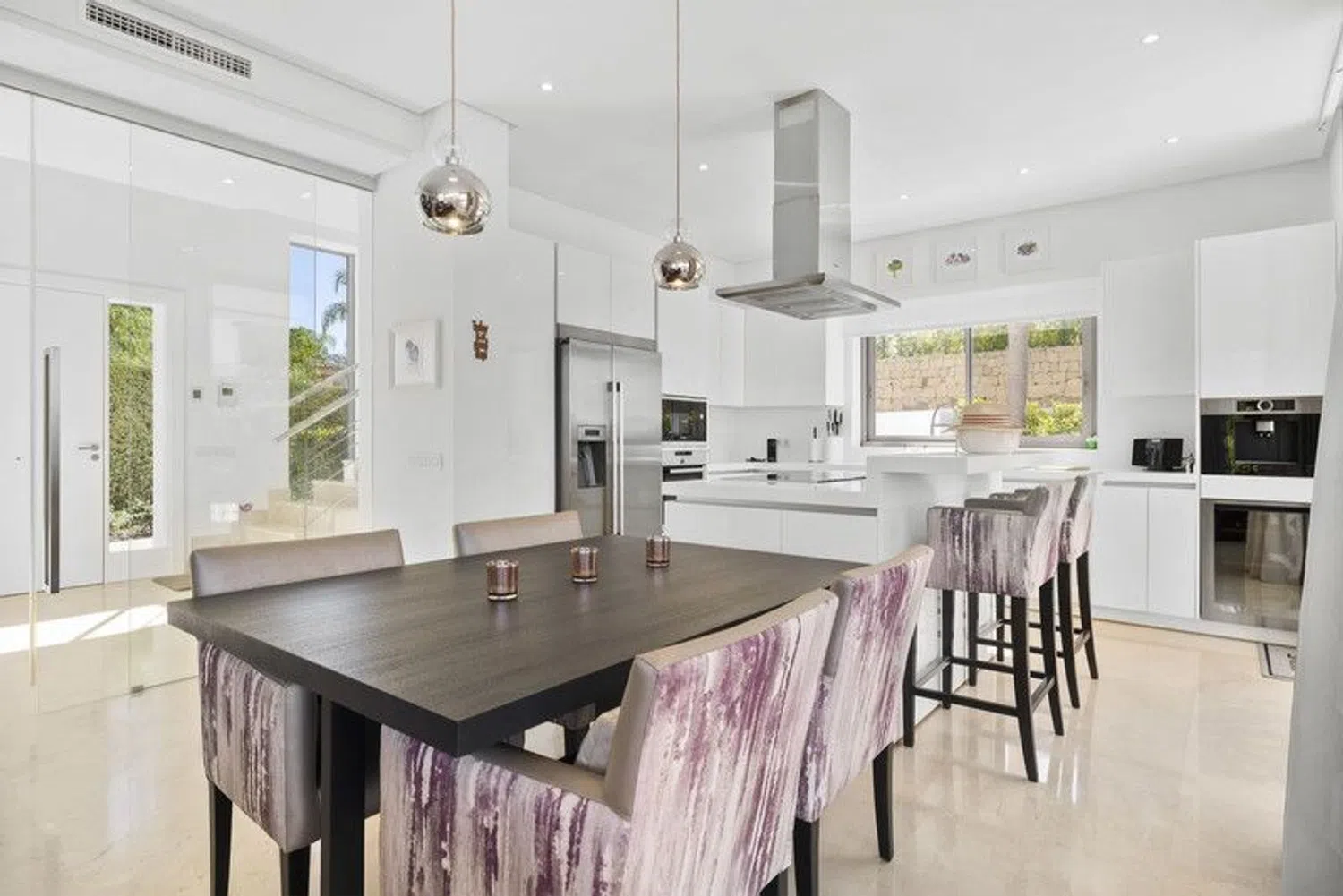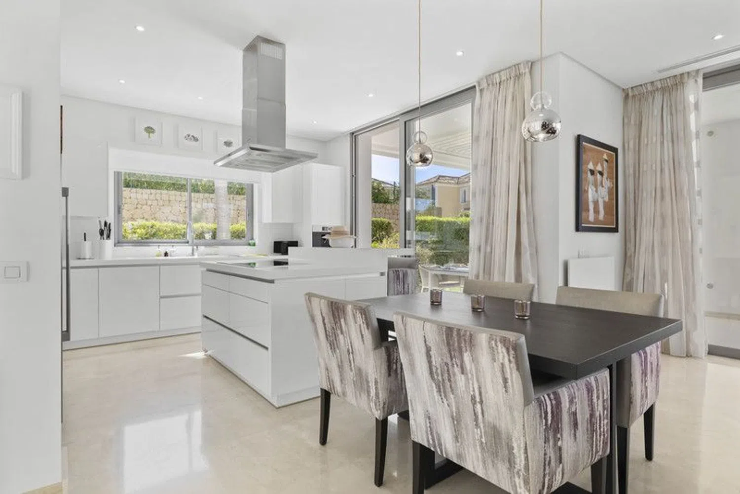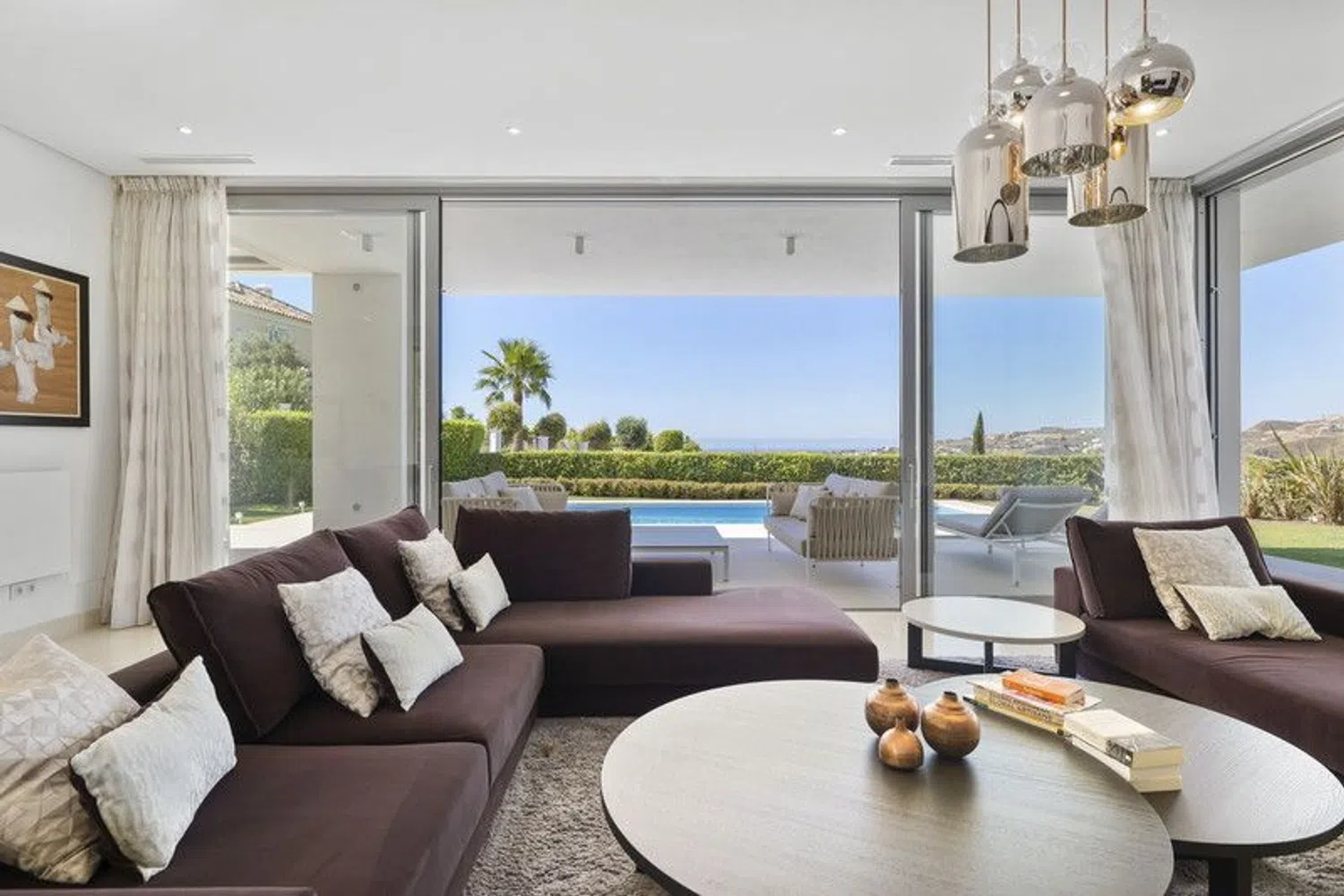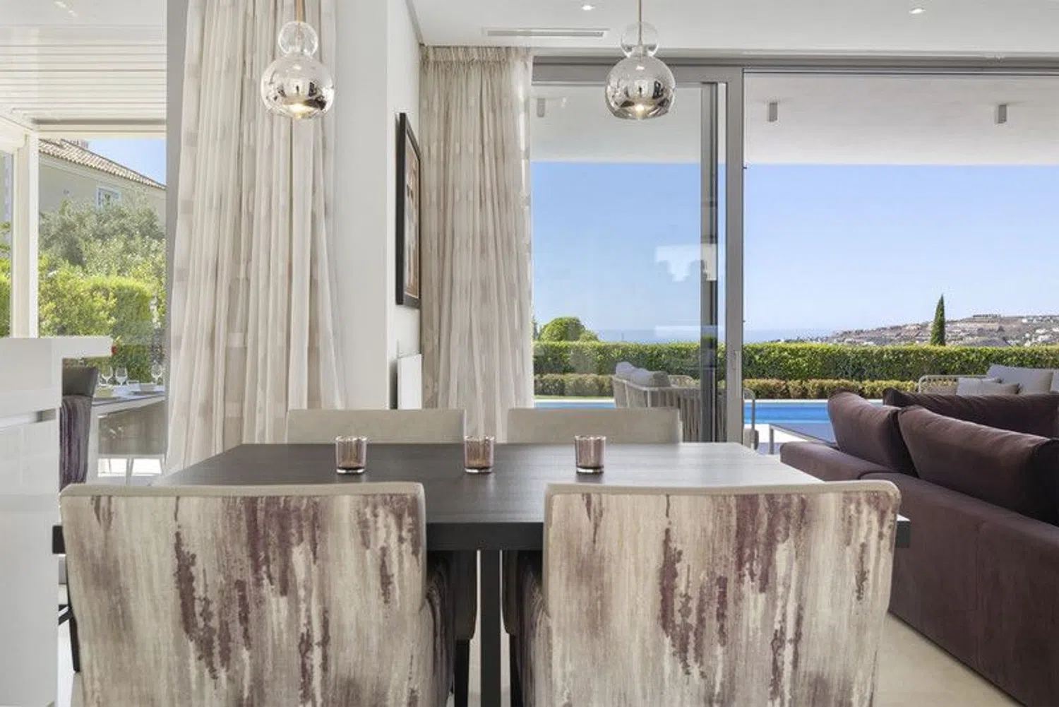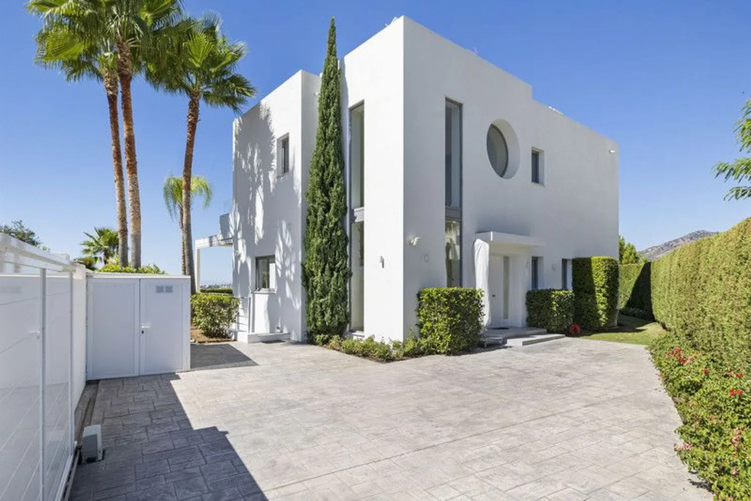 Discover this stunning contemporary 4-bedroom villa located in the tranquil and highly sought-after gated community of Puerto de Capitan, Benahavis. Nestled on the outskirts of Guadalmina Alta and San Pedro, this serene location is just a 5-minute drive from local amenities, international schools, and the toll road, with the vibrant Puerto Banus only 10 minutes away. Situated on a spacious 1,073 m² south-east facing plot, the villa boasts breathtaking panoramic views of the sea and mountains, offering an unmatched sense of luxury and privacy. Property Highlights: Built Area: 354 m² across 3 levels Parking: Ample space for 2+ vehicles with an electric gated entrance Layout: Ground Floor: Step into a bright and airy space with double-height ceilings and expansive feature windows, flooding the home with natural light. This level features an open-plan living, dining, and kitchen area equipped with top-of-the-line appliances and a breakfast bar. Sliding doors open onto a covered terrace with dining and seating areas, complete with automatic shutters and a retractable roof for year-round use. Also on this floor are a cloakroom, a guest bathroom, and a spacious en-suite bedroom with direct garden access. First Floor: The luxurious master suite includes a fully fitted walk-in dressing area and a lavish bathroom with a separate bath and shower. It opens onto a large private terrace with spectacular sea and mountain views. Two additional en-suite bedrooms with fitted wardrobes share the same panoramic outlook. Basement Level: Accessible via a separate entrance, the basement offers a utility and machine room, along with a vast flexible space ideal for a games room, spa, or any purpose you envision. Outdoor Features: The meticulously landscaped garden complements a sparkling saltwater swimming pool and a convenient storage shed. Additional Amenities: Underfloor heating in the master bathroom Solar panels for energy efficiency Water filtration system Security alarm system Automatic irrigation for the garden This exquisite villa has been elegantly furnished by Blackshaw, with all luxury furnishings and decor included in the sale. Seize the opportunity to own a dream home in one of Benahavis's most desirable locations. Contact us today for more information or to arrange a private viewing!