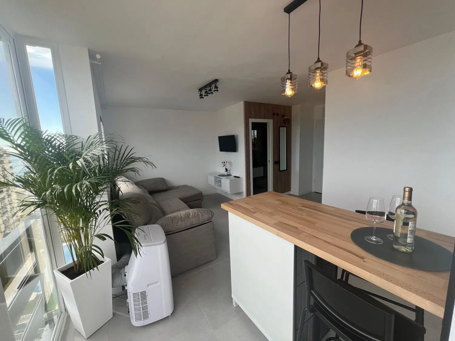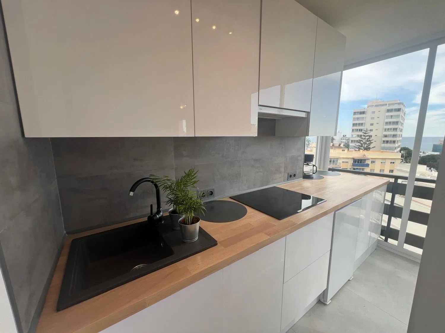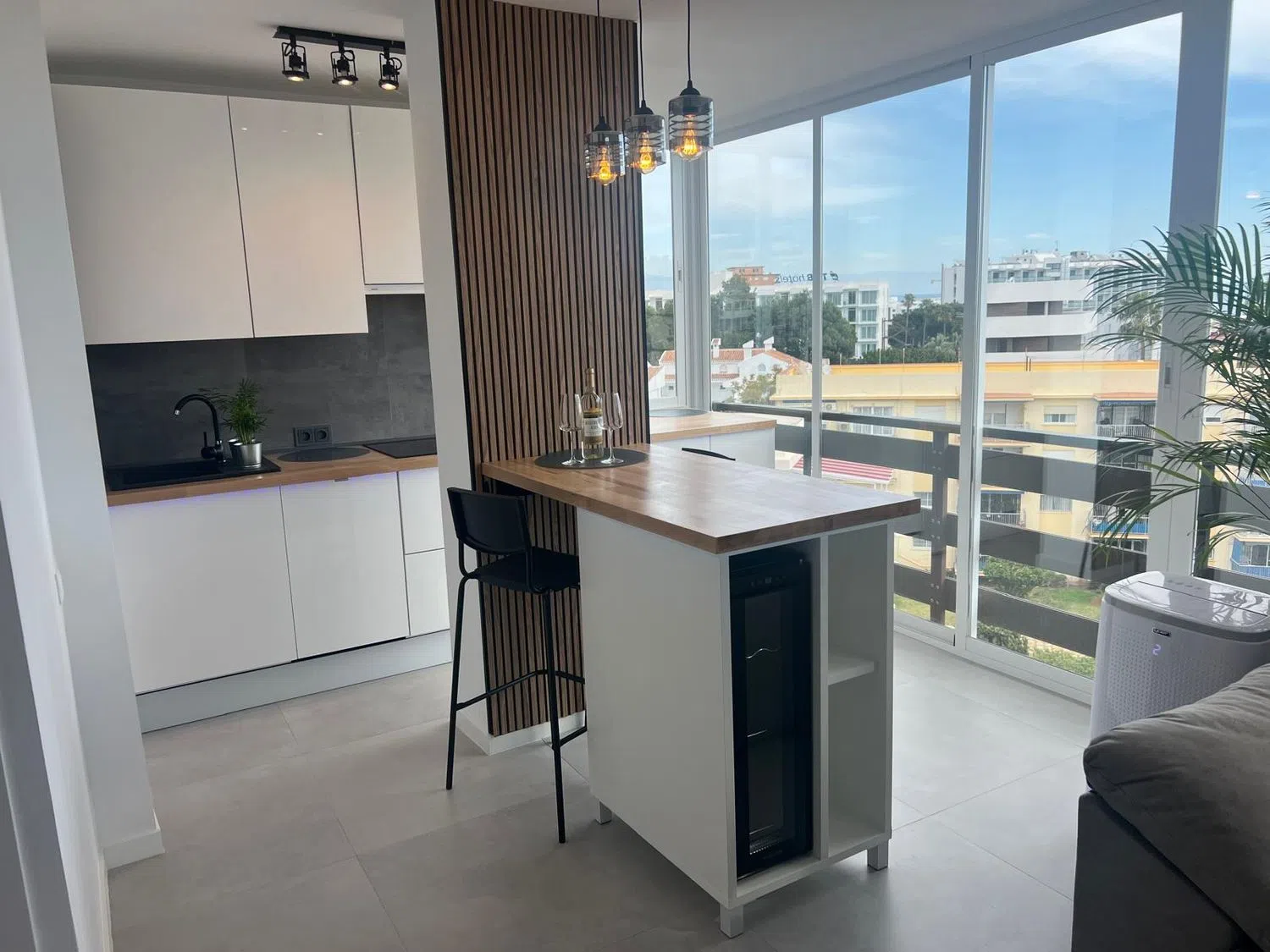 Precioso apartamento con espectaculares vistas al mar. A 280 metros de la playa junto al Parque de la Paloma y 1,4km a la estacion de tren Arroyo de la Miel, el cual esta conectado directamente con el aeropuerto y el centro de Malaga. Apartamento completamente reformado al más alto nivel y totalmente amueblado con todas las comodidades y servicios. Piso sin uso desde su renovacion. Listo para entrar a vivir o alquilar, cuenta con licencia turistica. Tuberias y instalacion electrica renovada. equipado con: vinoteca, nevera, placa de inducción, lavavajillas, lavadora, aire acondicionado (frio/calor), cocina moderna lacada con encimera de roble de madera auténtica, sofá cama de cuero, TV, 2x armario empotrado con puertas correderas, nuevas ventanas panorámicas, todas las puertas nuevas. Urbanización con 3 piscinas, jardín, restaurante y parking comunitario. Edificio con varios ascensores. A pocos pasos de todos los servicios necesarios y tiendas. Esta disponible para verlo en cualqier momento.