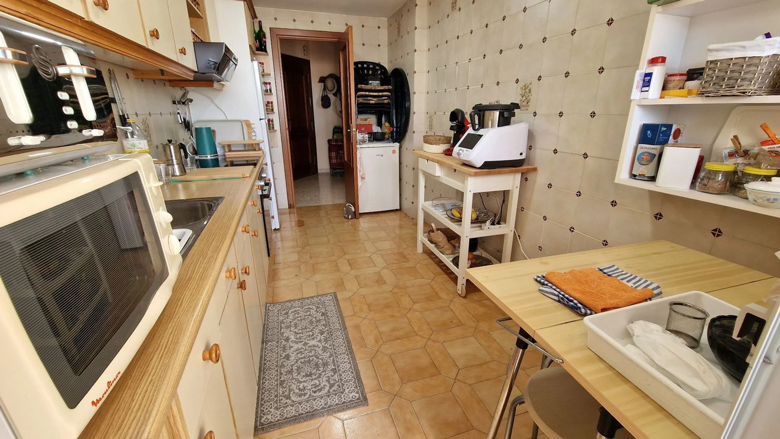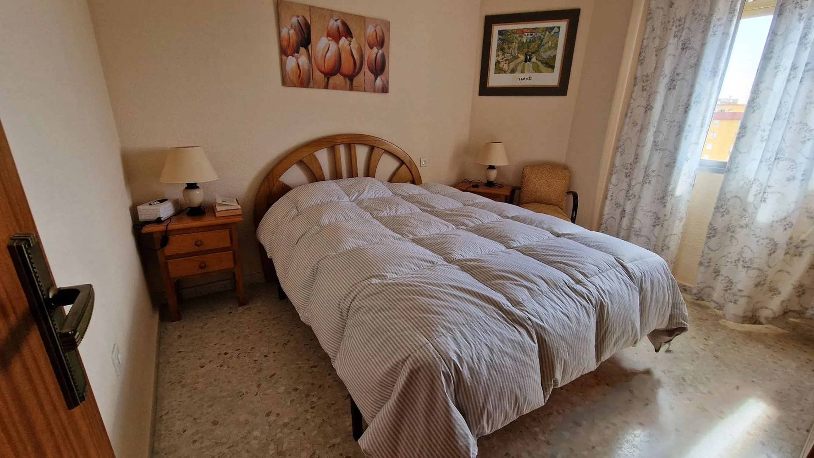 Piso calle Moreno Carbonero con vistas panorámicas, planta alta, 3 dormitorios y 1 baño, cocina independiente con lavadero, salón con acceso a la terraza acristalada con cortinas de cristal, electrodomésticos nuevos, plaza de garaje opcional a una calle de distancia. En el precio no están incluidos los gastos de notaría, impuestos de trasmisiones, actos jurídicos documentados y registro. Apartment on Moreno Carbonero Street with panoramic views, top floor, 3 bedrooms and 1 bathroom, separate kitchen with utility room, living room with access to the glazed terrace with glass curtains, new appliances, optional parking space one street away. The price does not include notary fees, transfer tax, documented legal acts, and registration. [IW].
