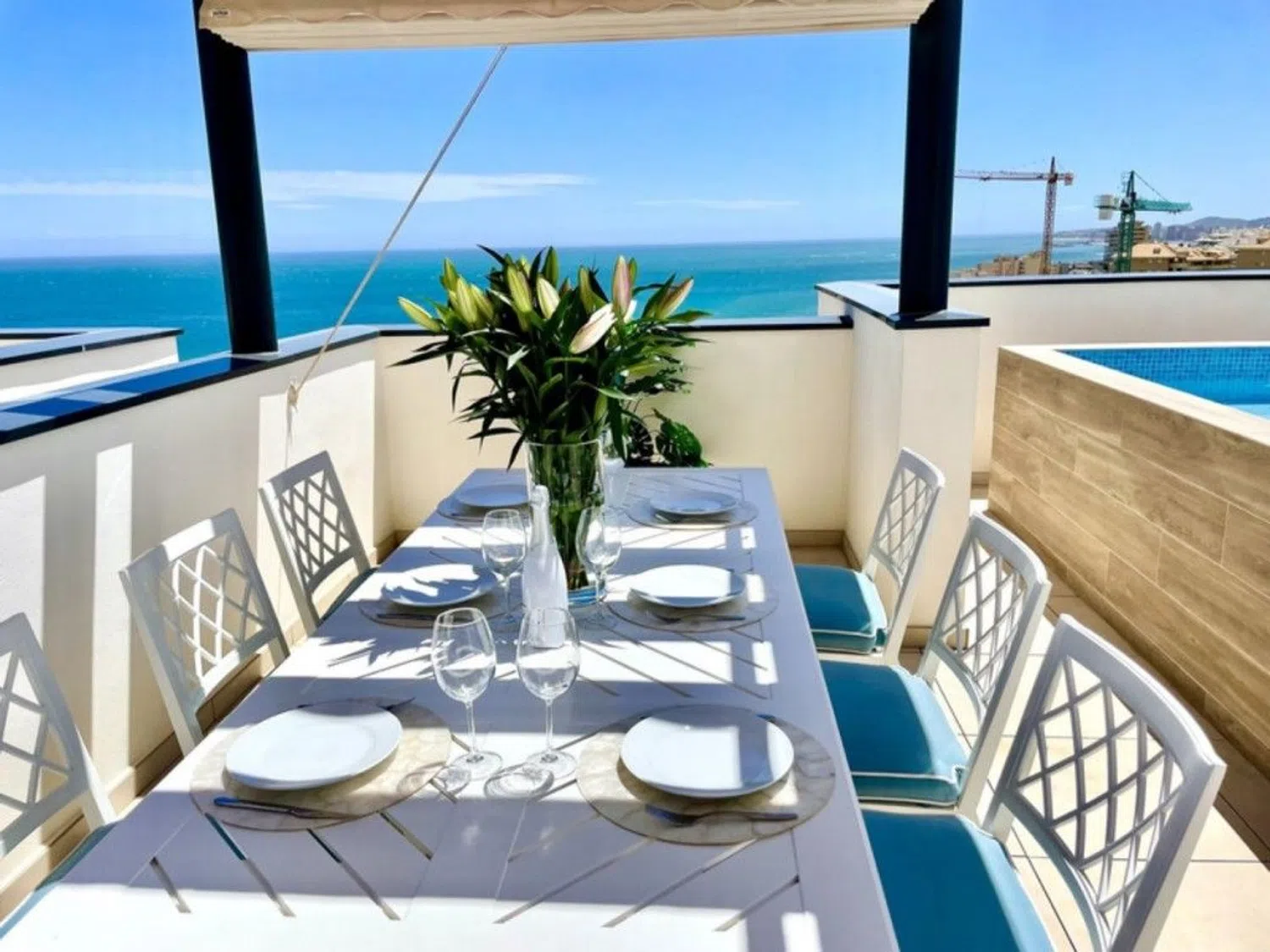 Presentamos un exquisito ático de lujo de 3 dormitorios, situado en una prestigiosa comunidad de sólo 45 viviendas. Prepárese para ser cautivado por las impresionantes vistas panorámicas del mar y disfrutar de su aroma refrescante que se cuela a través de sus ventanas. Situado en la codiciada zona de Fuengirola/Carvajal, a pocos minutos de la impresionante playa, una gran variedad de restaurantes, tiendas de lujo, exclusivos clubes de playa, la estación de tren, y el famoso complejo de lujo El Higuerón. En esta exclusiva urbanización encontrará un paraíso de servicios de lujo. Sumérjase en la relajación con dos amplias piscinas de agua salada, mímese en el gimnasio y la sauna de última generación, tome el sol en la zona de solarium, e incluso cultivar sus propios productos en el huerto comunitario. Para su comodidad, se incluyen dos plazas de aparcamiento cubiertas y un amplio trastero. El elegante salón y los dormitorios gozan de impresionantes vistas al mar y se abren a una amplia terraza, proporcionando un entorno ideal para celebrar reuniones con amigos o simplemente relajarse con vistas al Mediterráneo. El suelo del vestíbulo, los salones, los dormitorios y los pasillos es de lujoso gres porcelánico, mientras que la cocina está equipada con electrodomésticos de gama alta, como placa de inducción, campana extractora, horno eléctrico, frigorífico, lavavajillas y lavadora. La encimera de cuarzo compacto y el protector contra salpicaduras, complementados por un fregadero con grifo monomando, añaden un toque de sofisticación. Los cuartos de baño están adornados con grifos monomando, espejos y modernos conjuntos de porcelana blanca esmaltada. El cuarto de baño principal cuenta con un lavabo y un tocador acristalados, un plato de ducha con mampara y una grifería monomando, que crean un oasis tipo spa. Todas las terrazas están cuidadosamente diseñadas con un sistema de entrada de agua y desagüe, así como iluminación y tomas de corriente para su comodidad. La seguridad es primordial, por eso los espacios al aire libre están pavimentados con gres antideslizante y cuentan con zócalos del mismo material. Además, el solárium cuenta con piscina privada y zona de barbacoa, lo que le permitirá deleitarse con las impresionantes vistas mientras disfruta de la compañía de sus seres queridos. Este extraordinario ático está meticulosamente amueblado y decorado por un reconocido estudio de diseño de Marbella, lo que garantiza una experiencia de vida exclusiva y lujosa. No pierda la oportunidad de hacer suyo este excepcional Ático de Lujo de 3 Dormitorios, donde el confort y la sofisticación sin igual se fusionan a la perfección con el encantador estilo de vida costero de Fuengirola/Carvajal.