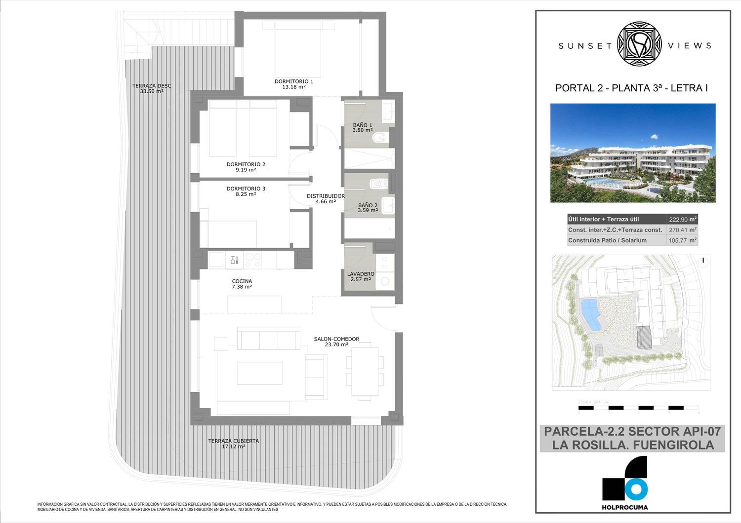 *Todas las viviendas del proyecto tienen 2 plazas de garaje y 1 trastero incluidos en el precio.Sunset Views está situado en la zona norte de Fuengirola, en el Barrio Los Pacos: una zona residencial, multicultural y multilingüe con ambiente cosmopolita, cercano a la playa y perfectamente conectado por carretera y transporte público.Conformado por dos edificios con 74 viviendas, que incluyen dos plazas de garaje, trastero, dos piscinas y espacio workout al aire libre, diseñadas para personas con buen gusto que les importa su bienestar y el de su familia. Definitivamente, un lugar ideal para desconectar y conectar de nuevo con tu esencia en medio de un entorno natural, en el que podrás disfrutar de más de 3000 horas de sol al año y de los majestuosos atardeceres que nos regala esta maravillosa ciudad costasoleña. Las amplias ventanas con doble acristalamiento inundan de vitalidad y optimismo cada rincón de la vivienda, dejando pasar los rayos de sol hacia todas las estancias, conectando de manera elegante con la preciosa y cómoda terraza. Un espacio destinado para el bienestar y disfrute del clima de la Costa del Sol, con preciosas vistas a la montaña o al mar, mientras disfrutas de cada amanecer o atardecer.El diseño del complejo residencial está concebido bajo 3 ejes: buscar el máximo confort de los residentes, utilizar los espacios y recursos de manera eficiente y hacerlo de manera respetuosa para los vecinos y el medio ambiente.El confort térmico es una de las claves para el disfrute de una vivienda, por ello se ha tenido muy en cuenta el estudio de soleamiento para aprovechar la luz solar, minimizando el impacto del sol de mediodía. Carpinterías exteriores de alta calidad, el alto grado de aislamiento térmico de la envolvente del edificio, junto con el sistema de renovación controlada del aire, permite unas viviendas más frescas en verano y más cálidas en invierno, reduciendo las necesidades de usar la climatización de última generación instalada en todas las viviendas. Desde electrodomésticos eficientes y silenciosos, hasta la generación de agua caliente y bonitos jardines con plantas de baja demanda de agua: Sunset Views se ha concebido para que no te preocupes de nada más que disfrutar de la vida.