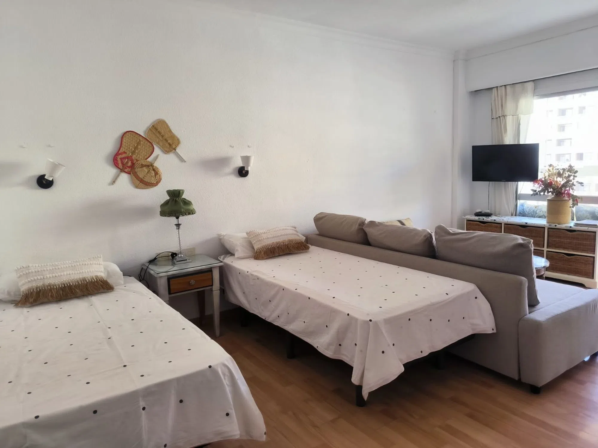 Descubre este magnífico y amplio estudio en el corazón de Fuengirola, situado en el emblemático Edificio Hotel PYR, a solo dos minutos caminando de la playa. Su privilegiada ubicación en pleno Paseo Marítimo te brinda acceso inmediato a todos los servicios necesarios para disfrutar al máximo del estilo de vida costero. Las vistas despejadas al Puerto deportivo son simplemente espectaculares, mientras que su orientación sur-suroeste asegura una luminosidad excepcional durante todo el día. Con un total de 51 m2 construidos —incluida una encantadora terraza acristalada— este hogar está listo para habitarse e incluye cocina amueblada con electrodomésticos, acogedor salón comedor y baño completo. Además, existe la posibilidad de adaptar el espacio creando una habitación independiente si así lo prefieres. Los residentes disfrutan también del uso exclusivo a instalaciones como piscina exterior para adultos y niños; zona ajardinada equipada con bar donde relajarte bajo las sombrillas; tumbonas ideales para tomar sol o leer tu libro favorito; servicio recepción disponible las 24 horas; y zonas comunes bien mantenidas por un modesto coste comunitario mensual que cubre agua, y luz entre otros gastos vitales. No puedes dejar pasar esta oportunidad única: visita hoy mismo esta propiedad llena de potencial!