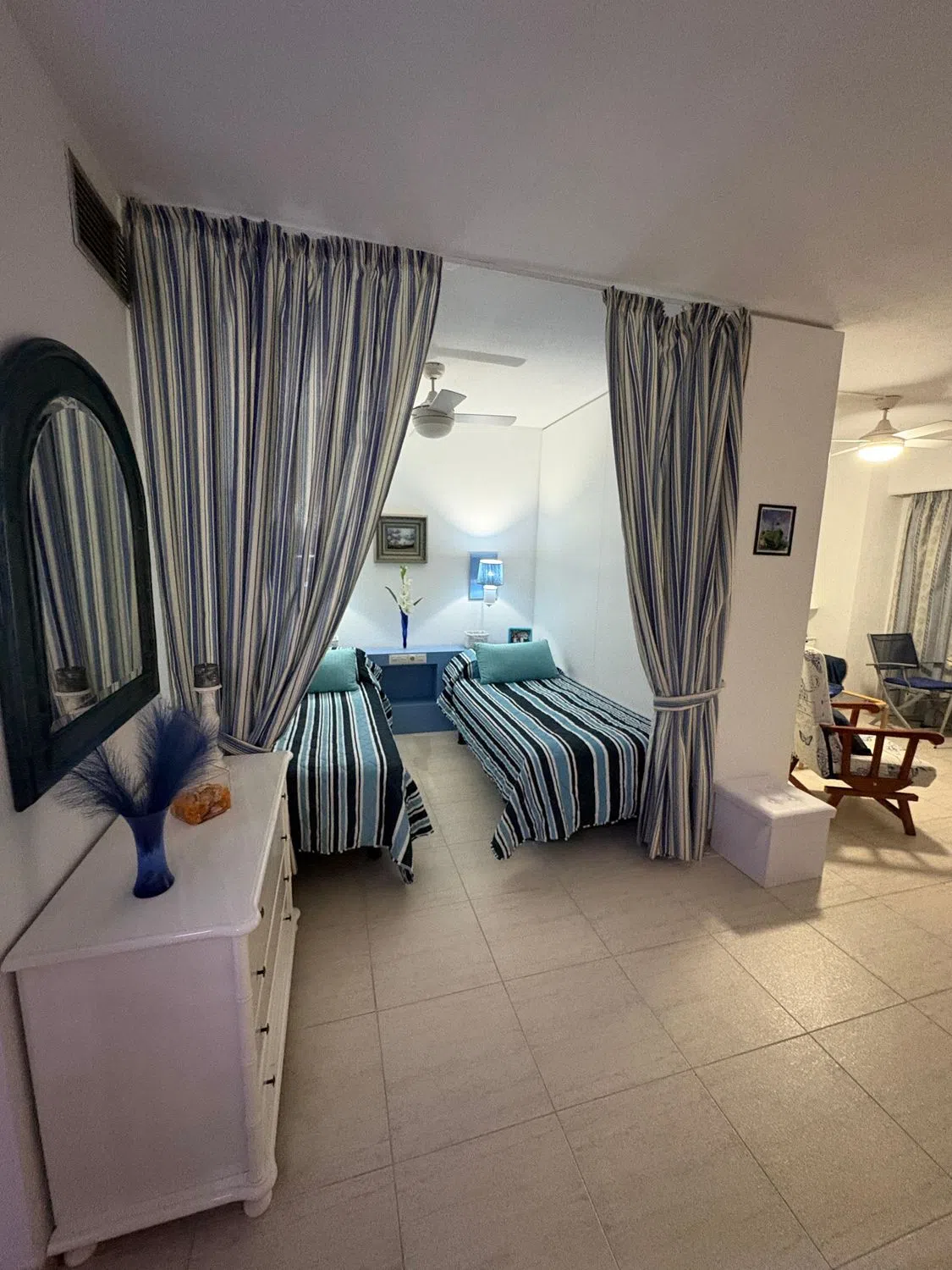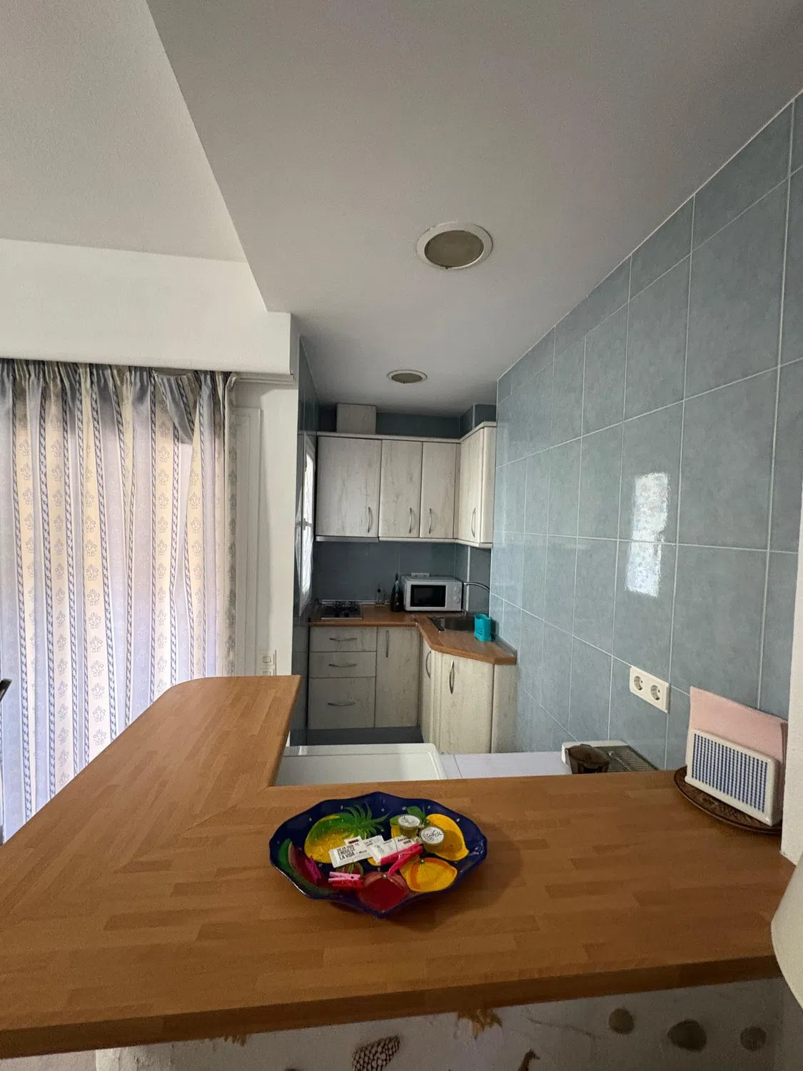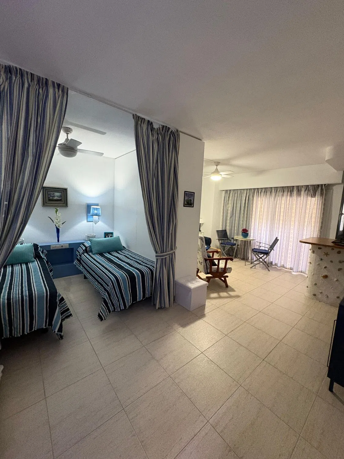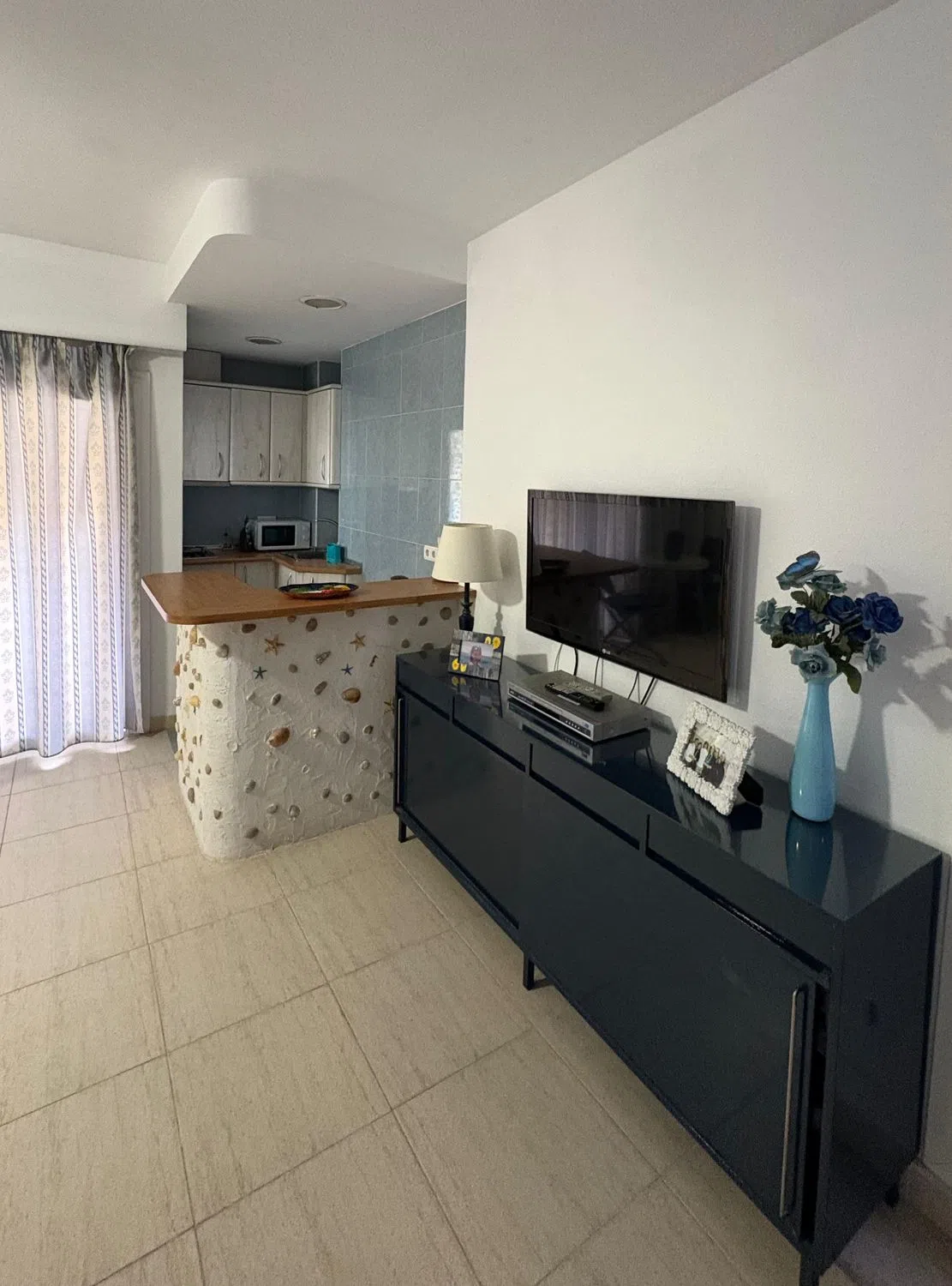 Estudio en primera línea de playa con vistas al mar, situado en el complejo hotelero PYR, frente al Puerto Deportivo, en pleno centro de Fuengirola. Estudio luminoso mas grande al estar en esquina, que cuenta con zona de dormitorio, sala de estar con sofá cama, armario empotrado y armario separador de estancias realizado a medida por carpintero con menos de 5 años de antigüedad, y cocina americana con barra de diseño. La terraza tiene vistas al mar y esta acristalada con cortinas de cristal de la prestigiosa marca Lumon (valorado en mas de 12.000 euros). Se vende totalmente amueblado. Posibilidad de comprar plaza de garaje en el mismo hotel con acceso en ascensor directo. El complejo hotelero ofrece bar/cafetería, bar de piscina en los meses de verano, solarium, piscina exterior para adultos y niños, hamacas/sombrillas, proporcionando todo lo necesario para disfrutar del clima.