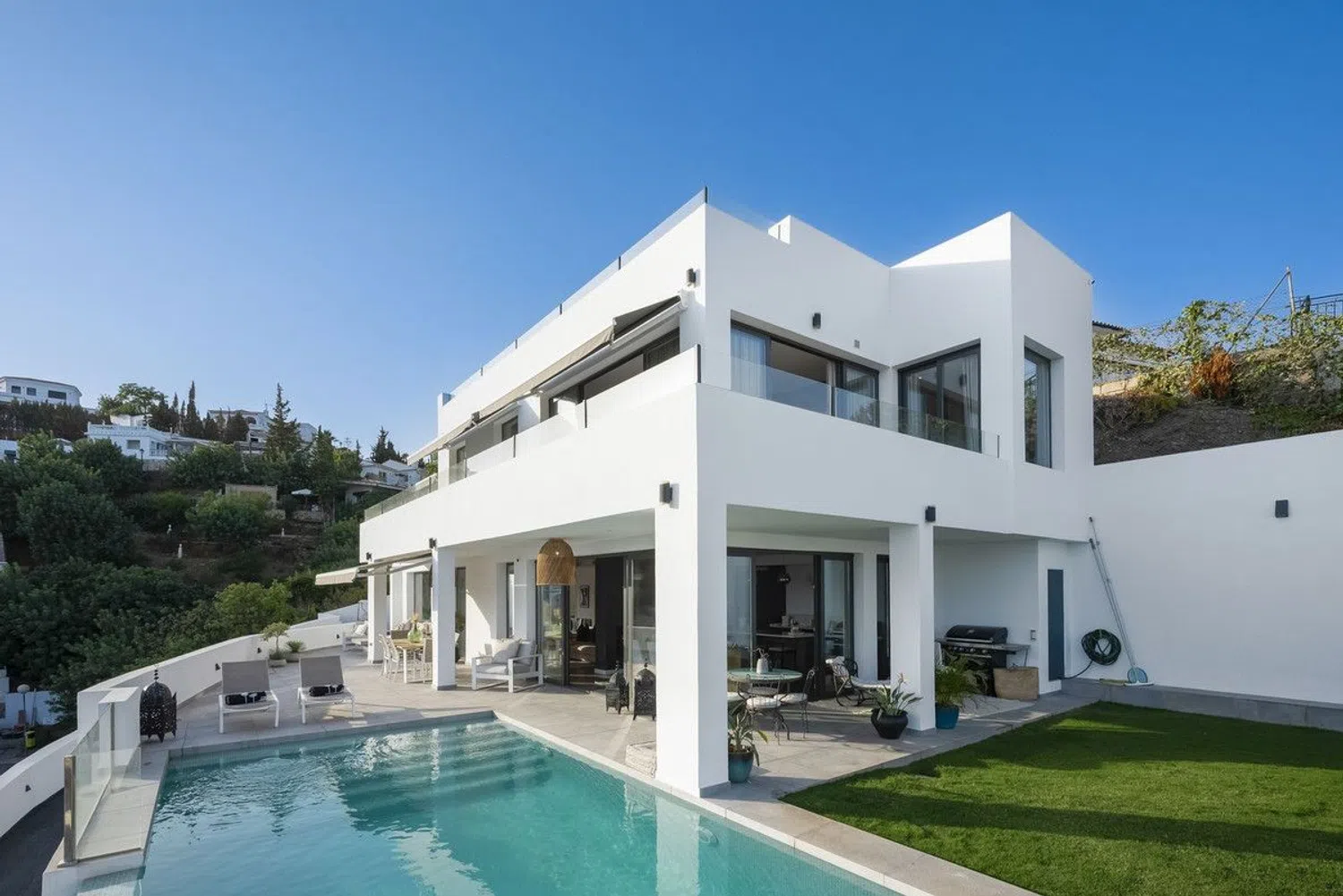 Villa - Chalet, Fuengirola, Costa del Sol. 4 Dormitorios, 4 Baños, Construidos 406 m², Terraza 174 m², Jardin/Terreno 1020 m². Posición: Cerca de Tiendas, Cerca del Mar, Cerca de Cuidad, Cerca de Colegios. Orientación: Sur, Suroeste. Estado: Excelente. Piscina: Privada. Climatización: Aire Acondicionado. Vistas: Mar, Montaña, Campo, Panorámicas, Jardín, Piscina, Urbanas. Caracteristicas: Terraza Cubierta, Armarios Empotrados, Terraza Privada, Trastero, Baño En-Suite, Jacuzzi, Barbacoa, Doble acristalamiento, Sótano. Muebles: Amueblada. Cocina: Equipada. Jardin: Privado. Seguridad: Recinto Cerrado, Portero Automático. Aparcamiento: Libre, Más de uno, Privado. Servicios Públicos: Electricidad, Teléfono. Categoría: Inversion, Lujo, Reventa, Contemporáneo.
