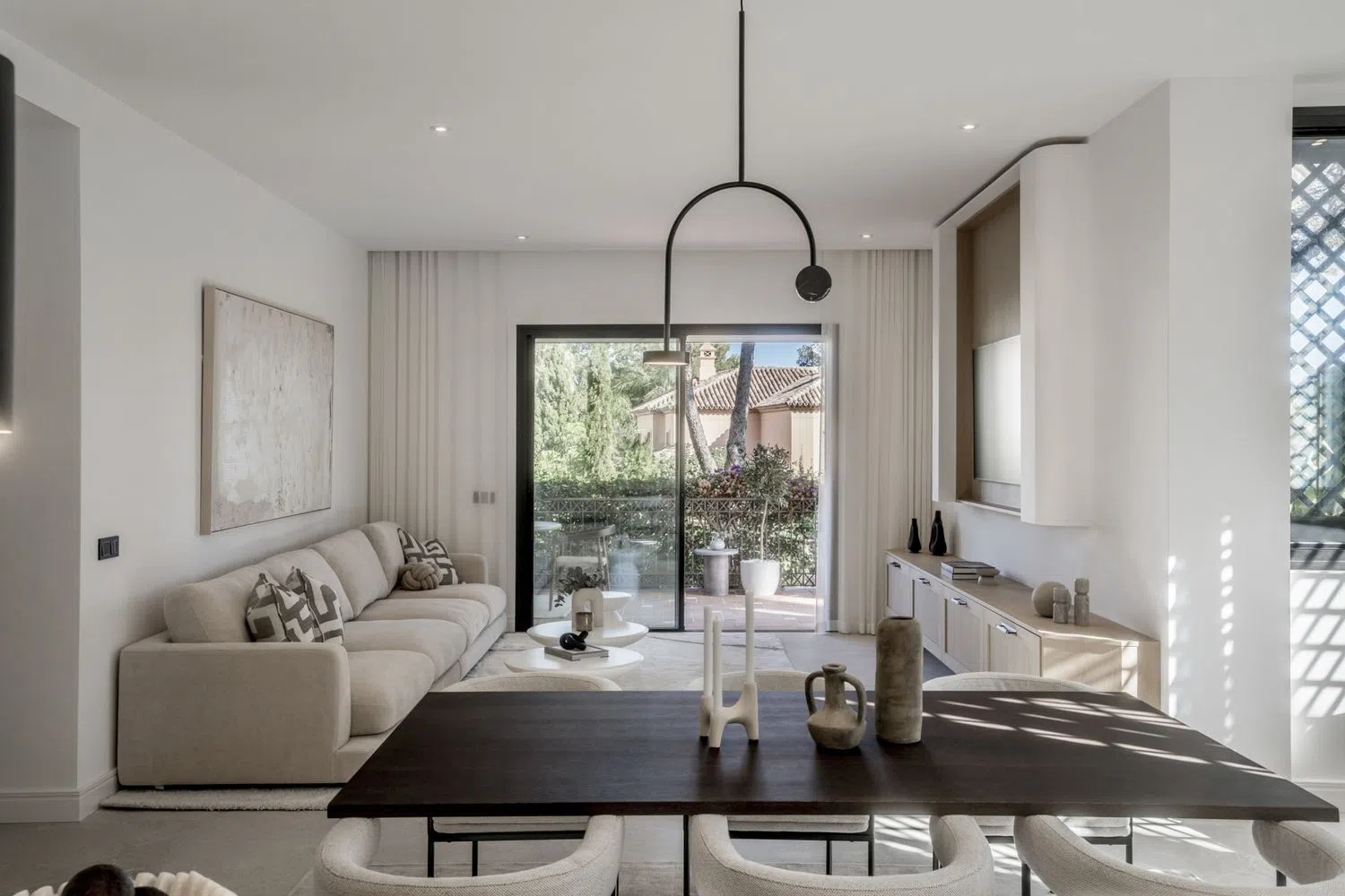 Presentamos Altos Reales 1, un apartamento en planta baja de 3 dormitorios y 3 baños recientemente renovado en la prestigiosa comunidad de Altos Reales de Sierra Blanca. Esta exquisita residencia ha sido meticulosamente diseñada para ofrecer una experiencia de vida verdaderamente única, con elegantes suelos, techos altos, carpintería de madera contemporánea personalizada y una armoniosa mezcla de tejidos y texturas naturales. En su corazón se encuentra una cocina de diseño de planta abierta equipada con electrodomésticos Miele, que combina a la perfección estilo y funcionalidad. Entre en la sala de estar y será recibido por una cocina hecha a medida, donde los acentos de madera profunda en la isla y los gabinetes contrastan maravillosamente con una llamativa encimera de mármol Taj Mahal. Con un generoso espacio de almacenamiento, un amplio espacio de trabajo y un enfriador de vino, este espacio es perfecto tanto para los entusiastas de la cocina como para las reuniones sociales. La acogedora sala de estar cuenta con un elegante televisor de pared con almacenamiento integrado, añadiendo al diseño sin fisuras. Los tres dormitorios son un santuario de sofisticación, con detalles de madera, armarios a medida e iluminación LED suave y ambiental. Los cuartos de baño destilan lujo y están equipados con grifería Dornbracht, duchas de efecto lluvia y el gran cuarto de baño principal con bañera y tocador doble para mayor elegancia. Enclavada en la exclusiva comunidad cerrada de Altos Reales, esta residencia goza de una seguridad y privacidad incomparables, con vigilancia las 24 horas del día, los 7 días de la semana. Los residentes tienen acceso a una serena piscina al aire libre, rodeada de jardines meticulosamente cuidados. Situado en la codiciada Milla de Oro de Marbella, Altos Reales está a pocos minutos de Sierra Blanca, los mejores colegios internacionales, boutiques de diseño y restaurantes de clase mundial. Experimente el pináculo de la vida refinada en Marbella en Altos Reales 1 un hogar donde el lujo moderno se encuentra con la elegancia atemporal.