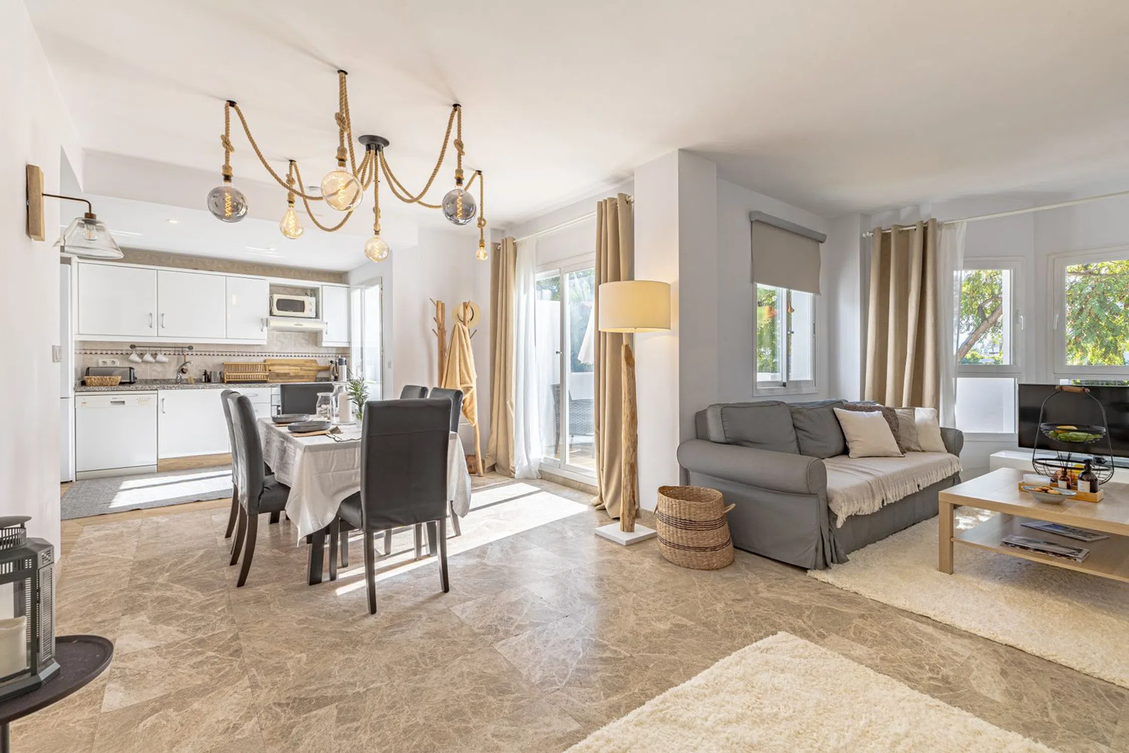 Bienvenido a este encantador apartamento situado en la popular zona de Los Naranjos de Marbella, una urbanización bien cuidada y muy solicitada, con preciosos jardines y varias piscinas comunitarias. La vivienda cuenta con tres amplios dormitorios y dos baños modernos, uno de ellos en suite. El espacioso salón dispone de un diseño abierto hacia la cocina, creando un ambiente luminoso y social con espacio para zona de comedor y de descanso. Las grandes ventanas permiten una excelente entrada de luz durante todo el día, y desde el salón se accede a la amplia y fresca terraza, perfecta para relajarse, disfrutar de cenas al aire libre o simplemente gozar del agradable clima. La ubicación es inmejorable, a poca distancia a pie de restaurantes, supermercados y la playa, y a pocos minutos en coche de Puerto Banús, el centro de Marbella y algunos de los mejores campos de golf de la Costa del Sol. Aquí vivirás en el corazón de Nueva Andalucía, con todos los servicios a mano, pero en un entorno tranquilo y verde. El apartamento tiene una licencia turística válida.