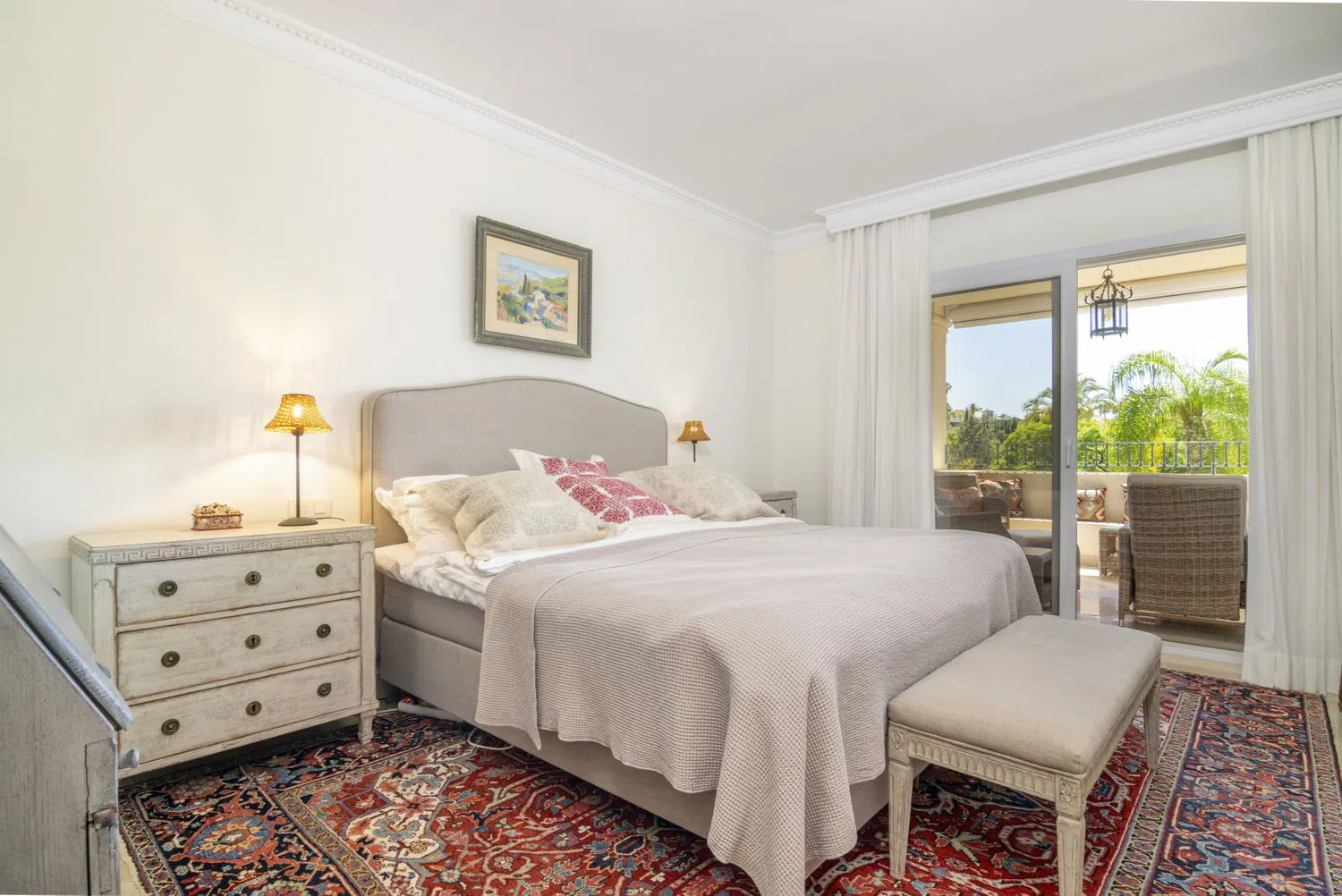 ¡Las Alamandas es una joya escondida! Está situado en el Valle del Golf de Nueva Andalucía entre Los Naranjos Golf y Las Brisas Golf. Es una urbanización muy solicitada y demandada. Este clásico complejo cuenta con cuidados jardines subtropicales y dispone de tres piscinas. Además, hay un gimnasio y sauna. Diríamos que la seguridad aquí es una de las mejores características. Ofrece seguridad las 24 horas, incluida videovigilancia y alarmas por infrarrojos. La urbanización consta de 19 bloques de apartamentos. Hay 5 apartamentos en cada bloque: 2 en la planta baja, 2 en el primer piso y un ático dúplex en la planta superior. Esta unidad está situada en una orientación oeste y lejos de la carretera, muy agradable y tranquilo, pero impresionantes vistas sobre el jardín y la zona de la piscina. Hay una vista a la montaña de La Concha desde el balcón trasero. Es una unidad de dos dormitorios, construida en una sola planta con amplia terraza con acceso desde el salón y el dormitorio principal. Cocina totalmente equipada, bonita y luminosa con lavadero. Dos dormitorios de buen tamaño con baños en-suite con calefacción por suelo radiante, amplias duchas y un jacuzzi en la suite principal. Viene con 1 plaza de garaje y 1 trastero.