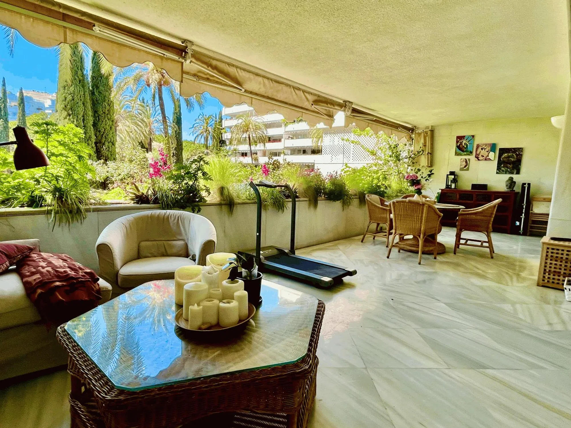 Apartamento en venta en Don Gonzalo, Marbella con 3 dormitorios y 3 baños, con piscina comunitaria, garaje comunitario y jardín comunitario. Respecto a las dimensiones, la propiedad presenta 232 m² en interior. Tiene las siguientes características servicios cercanos, aire acondicionado, terraza privada, comunidad cerrada, vistas al jardín, lado playa, cerca de playa / mar, puertas de cristal, balcón, buen estado, tiendas cerca, cerca del puerto y colegios cerca.
