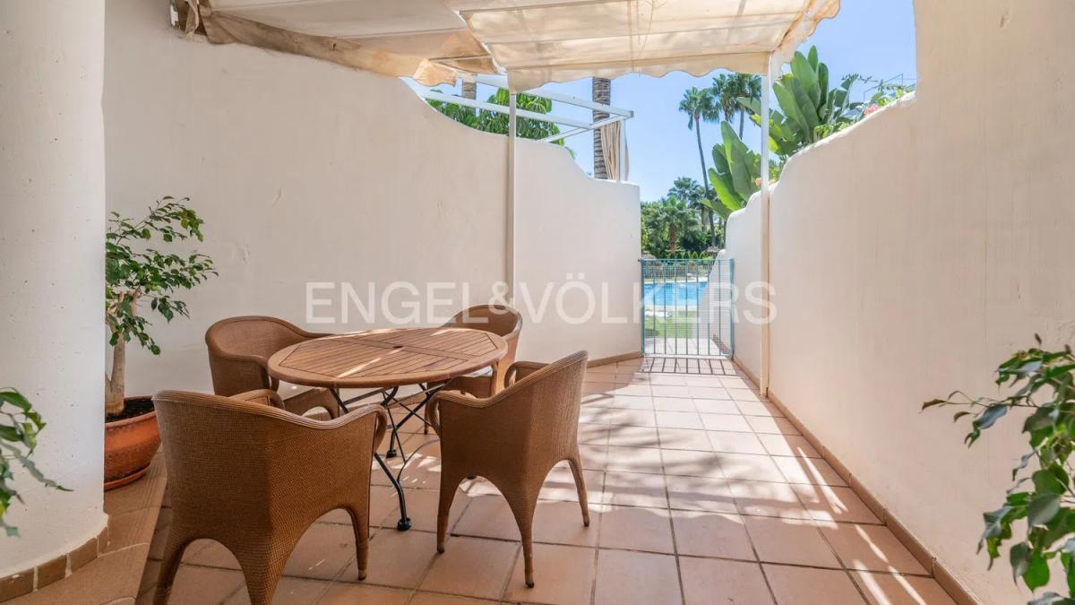Este elegante apartamento, ubicado en la prestigiosa comunidad de Marbella Real, en el corazón de la Milla de Oro de Marbella, ofrece un estilo de vida tranquilo y bien conectado. La propiedad cuenta con acceso directo a una hermosa piscina, rodeada de exuberantes jardines tropicales, lo que permite disfrutar de una experiencia de vida lujosa y relajada. Su ubicación privilegiada permite a los residentes caminar hasta restaurantes, tiendas y el famoso Paseo Marítimo, ofreciendo infinitas oportunidades de ocio. En el interior, el apartamento está diseñado con tres cómodos dormitorios y dos baños. El salón se abre a una terraza orientada al sur con acceso a la piscina, perfecta para relajarse al aire libre o recibir invitados. Una segunda terraza, orientada al norte, está conectada con la cocina totalmente equipada, ideal para desayunos tranquilos o como zona de lavandería. El dormitorio principal con baño en suite tiene acceso a la terraza principal, mientras que los otros dos dormitorios comparten un baño. Marbella Real ofrece cinco piscinas comunitarias, pistas de pádel, gimnasio y amplios jardines tropicales, creando un oasis de paz mientras se encuentra cerca de todos los servicios. El entorno tranquilo, combinado con la proximidad a todo lo necesario, hace de esta propiedad una excelente opción para quienes buscan comodidad y tranquilidad. Esta propiedad es perfecta para quienes desean una vivienda cómoda y bien ubicada en la zona más deseada de Marbella.