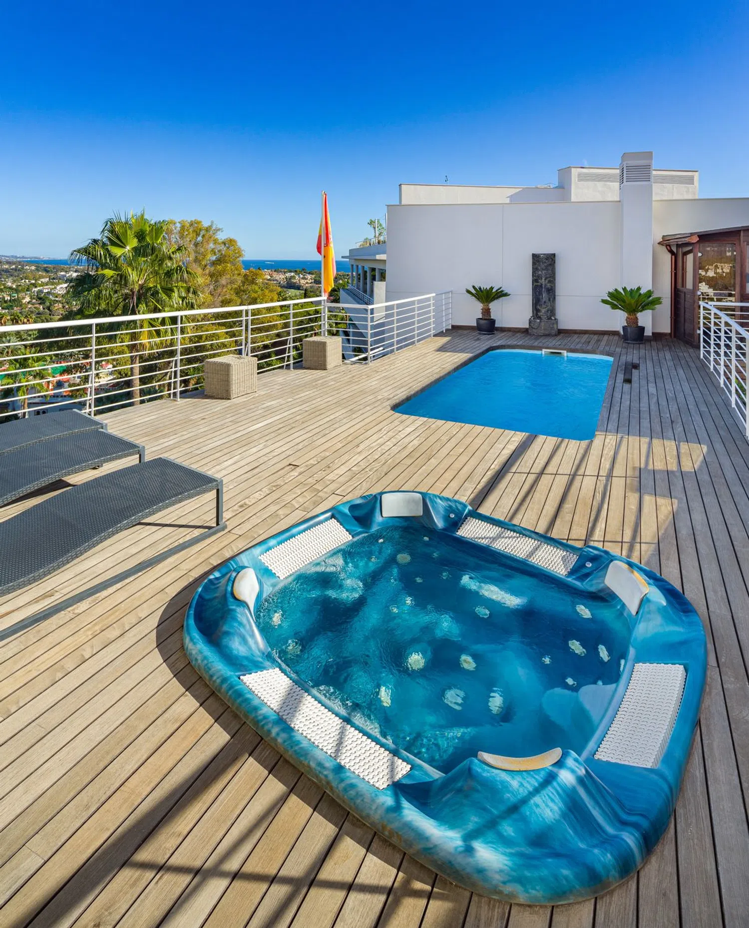 Descubre la joya de Marbella con este impresionante ático dúplex de tres dormitorios! Este exclusivo hogar combina la elegancia contemporánea con comodidades de lujo, ofreciendo un estilo de vida excepcional en una de las ubicaciones más codiciadas de la Costa del Sol. Este ático dúplex ha sido diseñado con un enfoque en la amplitud y la luminosidad. Los espacios abiertos y la distribución inteligente proporcionan una sensación aérea y de fluidez en toda la propiedad. Disfruta de tres amplios dormitorios que ofrecen privacidad y confort. Las ventanas panorámicas permiten que la luz natural inunde cada habitación, creando un ambiente acogedor y relajante. Relájate y disfruta del sol en tu propia piscina privada, en el jacuzzi, o en tu propia sauna, mientras contemplas las impresionantes vistas a la montaña emblemática de La Concha y a la costa mediterránea. El solarium te brinda un espacio exclusivo para entretenimiento y momentos inolvidables con familiares y amigos. Este ático ofrece vistas panorámicas que te dejarán sin aliento. Desde las majestuosas montañas hasta el resplandeciente horizonte del mar, cada rincón de este hogar ofrece un paisaje pintoresco que se convierte en el telón de fondo perfecto para tu vida cotidiana. Posee una ubicación privilegiada en Marbella, situado en una comunidad cerrada de acceso privado y vigilancia 24hrs. La vivienda dispone también de tres plazas de garaje y un trastero, y la urbanización exclusiva ofrece a sus propietarios hermosos jardines, piscina comunitaria y pista de padel. Este ático dúplex es más que una propiedad, es un estilo de vida. Sumérgete en la esencia del lujo y la sofisticación que solo Marbella puede ofrecer; el acceso a las playas, restaurantes de alta cocina internacional, tiendas de lujo, campos de golf de reclamo mundial... ¡No pierdas la oportunidad de llamar a este extraordinario ático tu hogar!