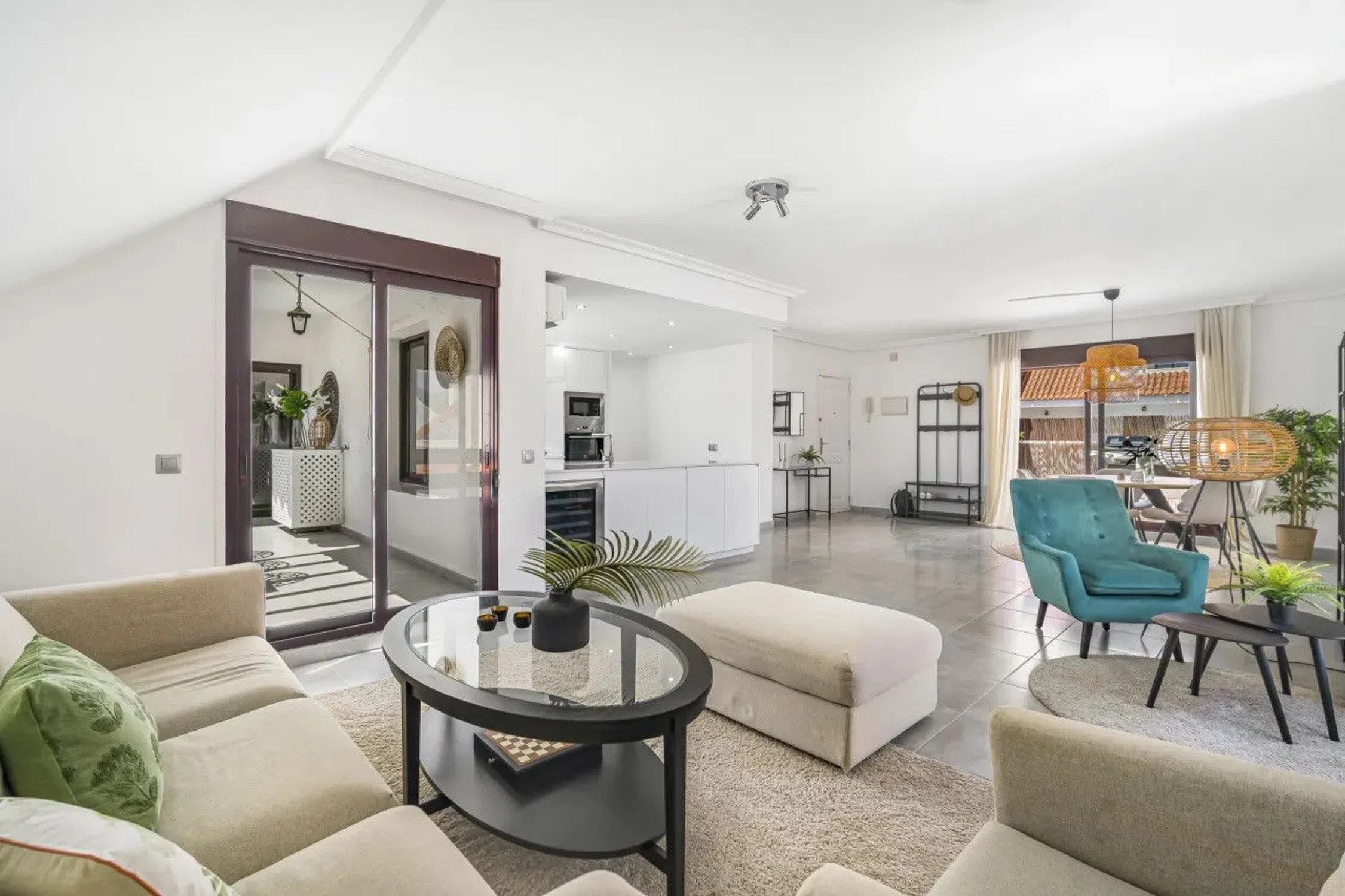 Este impresionante ático dúplex se encuentra en la urbanización La Maestranza, en pleno corazón de Nueva Andalucía. Recientemente renovado al más alto nivel, el apartamento combina diseño moderno con comodidad, creando la casa perfecta en Marbella. Con cuatro amplios dormitorios, dos baños, y un diseño de planta abierta, la propiedad ofrece zonas de estar luminosas y espaciosas ideales para la relajación y el entretenimiento. Tres terrazas privadas ofrecen sol de mañana a noche, haciendo vivir al aire libre tan agradable como en interiores. La comunidad cerrada cuenta con tres piscinas (una climatizada, una piscina infantil y una olímpica), jardines muy bien mantenidos y seguridad las 24 horas. A poca distancia encontrará una amplia selección de restaurantes, cafeterías, supermercados y tiendas. El mundialmente famoso puerto deportivo de Puerto Banús y sus playas de arena también están a pocos pasos de distancia. Si usted está buscando un retiro de vacaciones, residencia permanente o inversión de alquiler, este ático es una opción perfecta.
