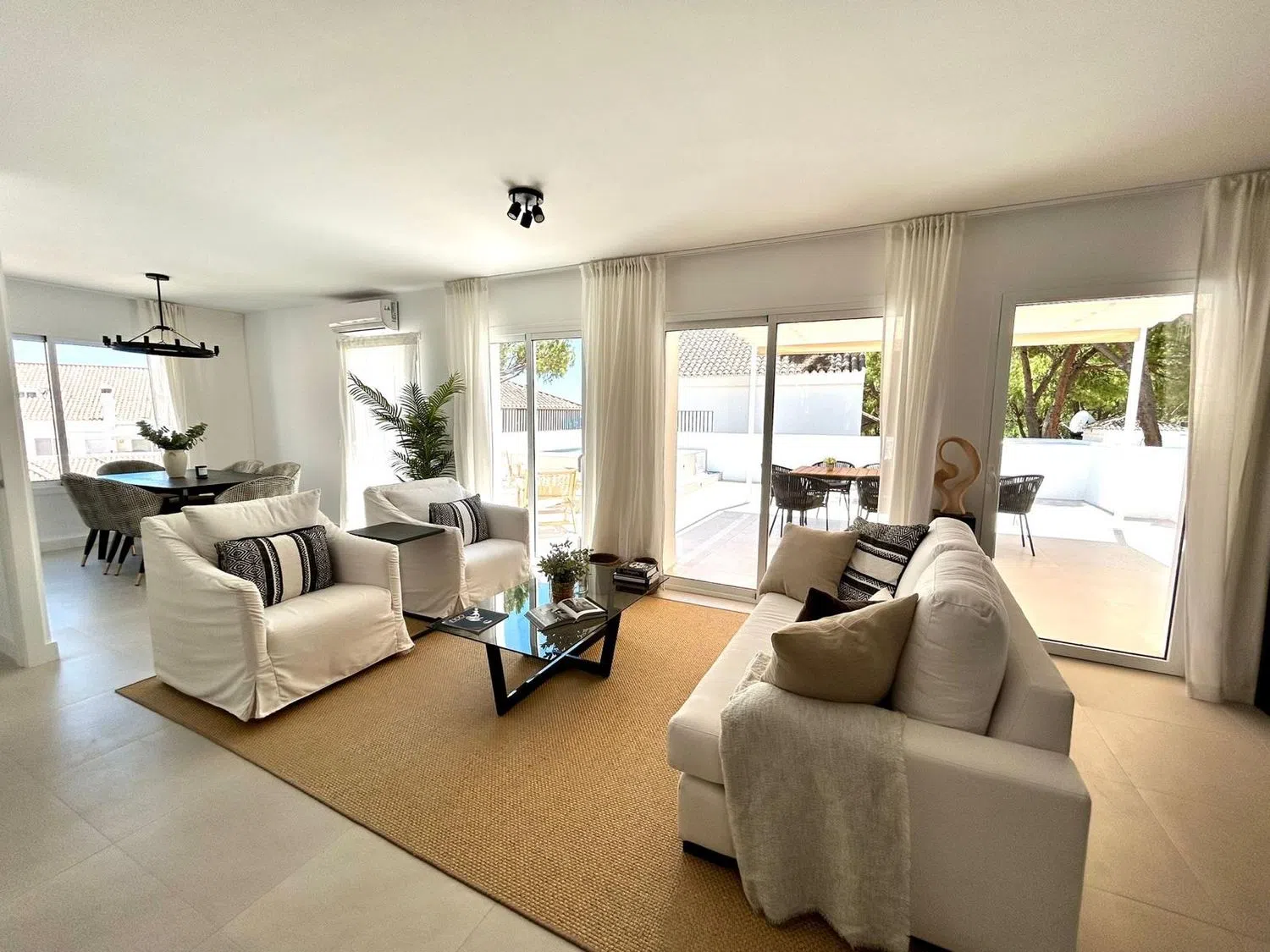 Nuevo en el mercado y completamente renovado al más alto nivel. Situado en una comunidad cerrada en el animado barrio de Aloha. Este ático dúplex con orientación sur tiene 4 dormitorios y 3 baños. Esta impresionante propiedad cuenta con 160m2 de espacio interior con una amplia terraza de 60m2. Y tiene su propia piscina privada. En la parte superior cuenta con hermosas vistas al mar y al jardín. La propiedad tiene un gran plan abierto comedor / sala de estar en el primer piso, con 2 dormitorios y 1 baño. En la planta superior la propiedad cuenta con 2 dormitorios principales con baño privado, amplios armarios y vistas impresionantes desde las ventanas del dormitorio. Cuenta con mucha luz natural, armarios empotrados en cada dormitorio y tiene focos de techo con estilo instalado en todas partes. La cocina está totalmente equipada con un rico color nogal y sin manija gabinetes. Situado en una de las zonas más solicitadas, justo en la puerta de Aloha Golf Club, a 1 minuto a pie de Aloha collega y 5 minutos en coche de Puerto Banús. El apartamento viene completamente amueblado con una mezcla de muebles de estilo moderno/elegante. Esta propiedad será una fantástica casa familiar, póngase en contacto hoy para evitar decepciones. en whatsapp por un cita.