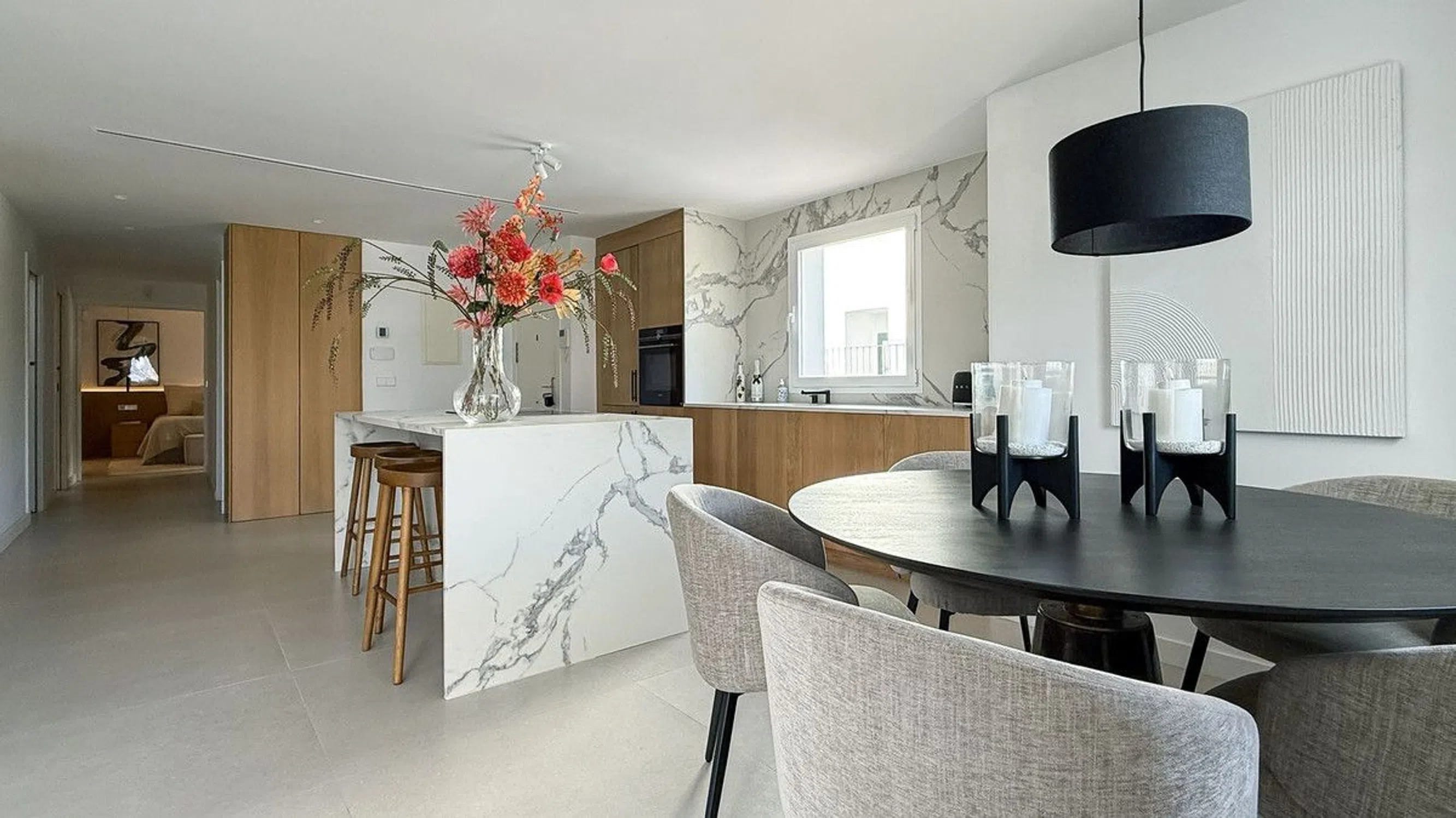 Apartamento Renovado con Terraza Espectacular y Vistas Panorámicas en Jardines de Andalucía Descubra este hermoso apartamento renovado en la tranquila Jardines de Andalucía, en el corazón de Nueva Andalucía. La vivienda cuenta con 3 dormitorios y 2 baños con suelo radiante, una luminoso salón-comedor de concepto abierto, y una cocina de la exclusiva marca sueca Ballingslöv, terminada con los más altos estándares. Cada rincón ha sido cuidadosamente diseñado para confort y estilo. Salga a la amplia terraza y disfrute de vistas panorámicas a la montaña La Concha. Perfecta para relajarse o recibir invitados, incluye una zona lounge y comedor, barbacoa, ducha exterior e incluso una pared de cine al aire libre, ideal para días soleados o noches acogedoras bajo las estrellas. La ubicación es inmejorable: Centro Plaza, donde se celebra el popular mercado de los sábados, está a poca distancia, y el Aloha College está a la vuelta de la esquina. Restaurantes, cafés y servicios locales están al alcance de la mano, y en pocos minutos llegará a Puerto Banús, la playa y a algunos de los campos de golf más prestigiosos de la Costa del Sol. Este apartamento es perfecto como casa de vacaciones o residencia permanente, combinando confort moderno, estilo cuidado y una ubicación que hace que cada día se sienta como unas vacaciones.