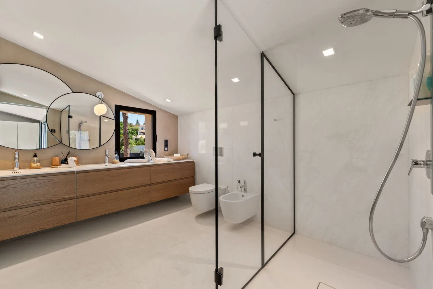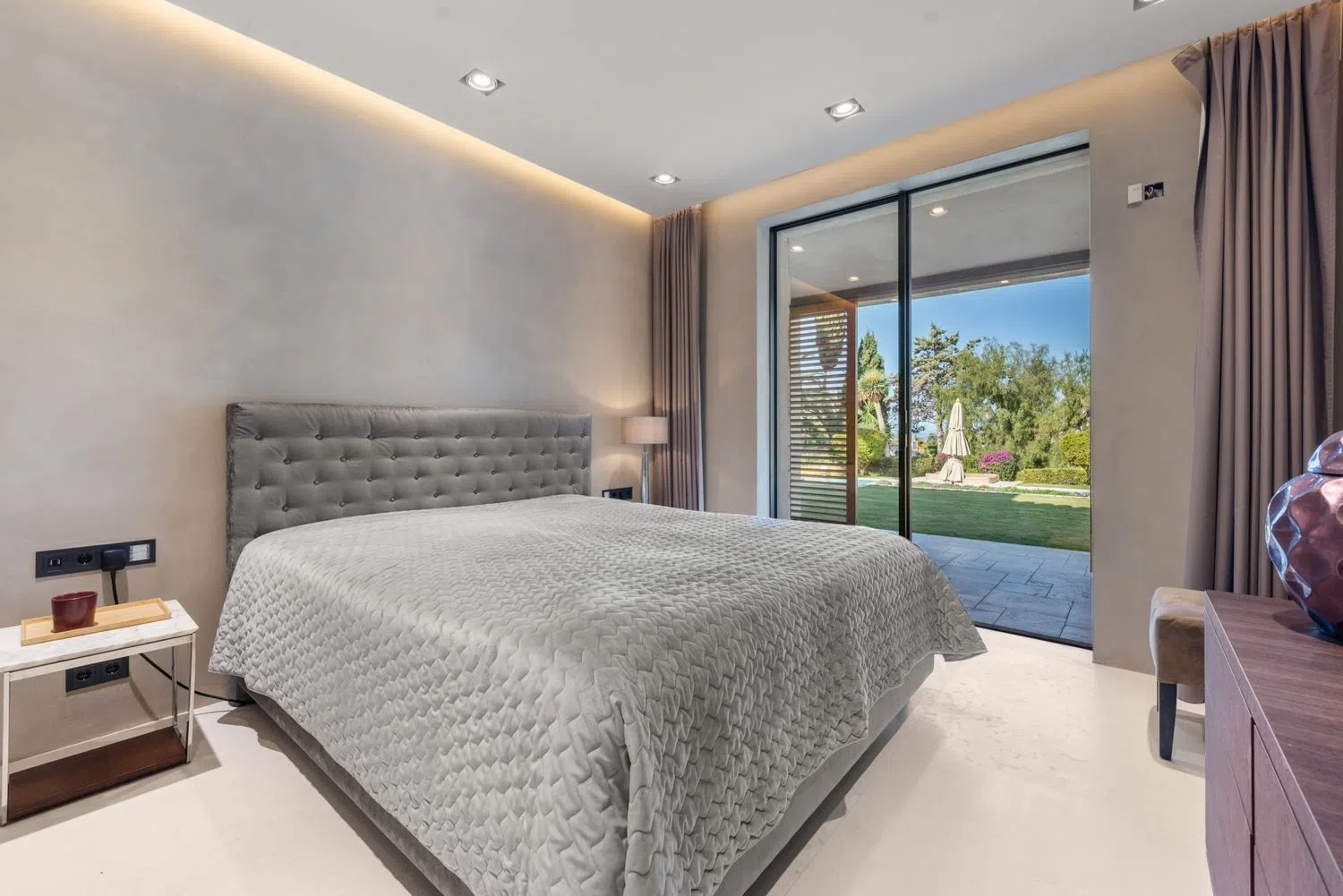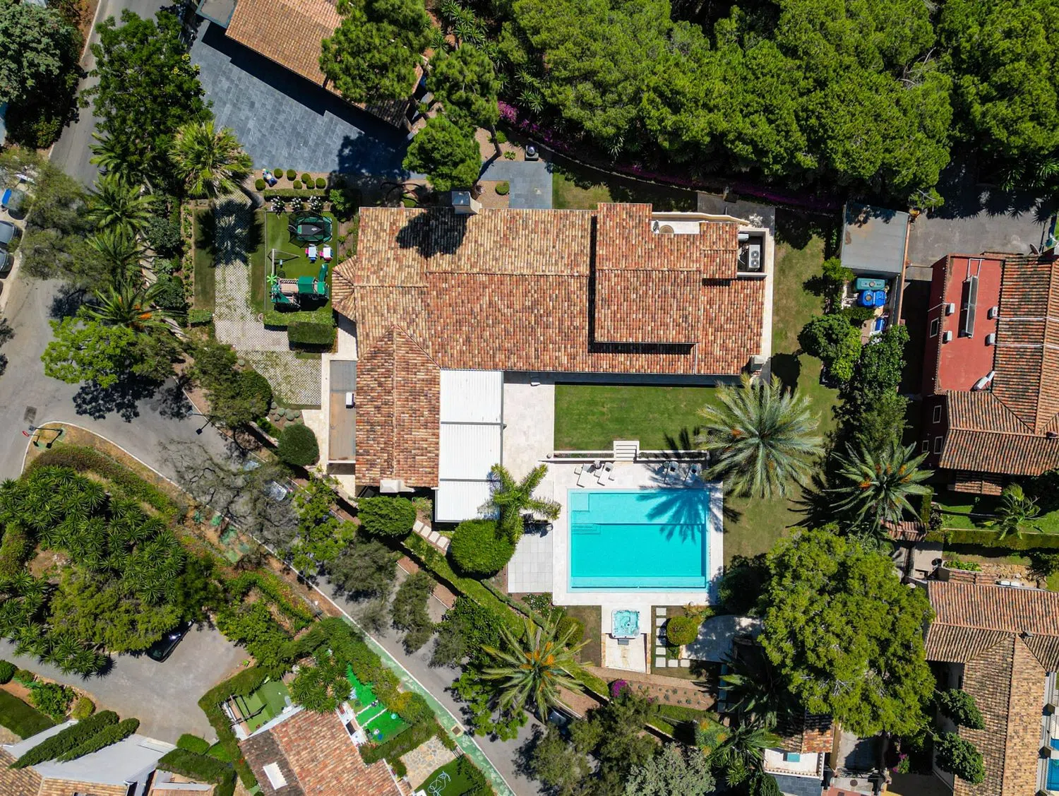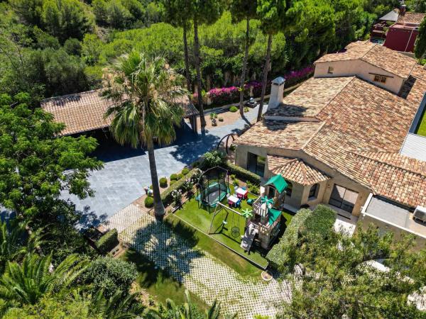 Esta cautivadora residencia totalmente privada se encuentra en los frondosos suburbios de Marbella y está rodeada de exuberante vegetación natural, mientras que en las proximidades de todos los servicios principales, incluyendo escuelas internacionales, tiendas de gama alta y una gran variedad de restaurantes y bares internacionales. Con una superficie construida de más de 800 m2 y ubicada en una parcela de 2300 m2, la propiedad fue completamente renovada hace 5 años con la máxima atención al detalle. Con 6 dormitorios y 7 baños, el espacio es algo que abunda. La planta baja es espectacular, con amplias zonas de estar conectadas a través de espaciosos pasillos, iluminadas de forma natural por puertas y ventanas correderas de cristal que van del suelo al techo y permiten que la luz natural inunde todos los rincones. La cocina abierta es exquisita en su diseño y decoración. La isla de la cocina ocupa el centro del escenario y da a la amplia zona de estar alrededor de una mesa de comedor adyacente completa con sillas altas de estilo taburete de bar que muestran una floritura de color brillante que complementa la madera de castaño que muestran las unidades de cocina. La cocina está totalmente equipada con electrodomésticos Gaggenau y una sutil iluminación empotrada trabaja en conjunto con la luz natural que brilla desde la gloriosa terraza exterior. Unas colosales puertas correderas se abren para fusionar la zona de estar interior con la exterior, un espacio exquisitamente decorado y sabiamente aprovechado. Una lujosa mesa de comedor con tapa de madera de caoba y capacidad para 10 comensales ocupa un lugar privilegiado bajo una terraza sombreada, y es contemplada por una elegante zona de asientos que exhibe un sofá diseñado a medida. La terraza cubierta puede protegerse de los vientos veraniegos (o de los chaparrones invernales) mediante grandes cortinas que se pueden correr para crear una sensación de privacidad. Al otro lado de la mesa de comedor de la terraza hay otra cocina, totalmente equipada con su propia isla con una encimera de madera de caoba, una barbacoa moderna y se completa con un fregadero y un montón de espacio de almacenamiento en armarios, todo elegante y limpio en acero inoxidable. Toda la cocina tiene vistas a los jardines, a las zonas chill out cercanas y a los arbustos circundantes a través de grandes ventanales. Los taburetes de bar situados en uno de los extremos permiten a los invitados ver trabajar al chef mientras disfrutan de un cóctel. Desde muchos de los puntos de vista a lo largo de las inmensas terrazas, los jardines bellamente cuidados se puede apreciar plenamente, al igual que la piscina de gran tamaño y relajantes zonas de estar. Hay un montón de tumbonas que dan a la piscina, desde dos niveles diferentes, así como una cama de día, y el jardín también está equipado con una piedra rodean ducha elegante. Hay 4 dormitorios doble (con la posibilidad de aumentar a 6), todos con acceso a los jardines a través de elegantes puertas correderas de terraza, y a todos ellos se accede por resplandecientes pasillos con favorecedoras lámparas de techo. Casi todos disfrutan de extravagantes cuartos de baño privados que son elegantes y casi sexys, vestidos finamente en colores neutros combinados con materiales naturales, creando una sensación de paz y tranquilidad. Se ofrecen amplias duchas con mamparas de cristal del suelo al techo. La suite principal se encuentra en la planta superior y cuenta con un balcón terraza privado con vistas a la piscina y a los tranquilos jardines. Esta suite, opulenta y elegante, cuenta con armarios empotrados con frentes de cristal. La propiedad también cuenta con 2 apartamentos de invitados y una oficina, junto con un gimnasio privado y en todo se ha acabado con la más alta calidad extras adicionales, incluyendo un sistema domótico casa inteligente, calefacción por suelo radiante, cámaras de seguridad en todas partes, una pi.
