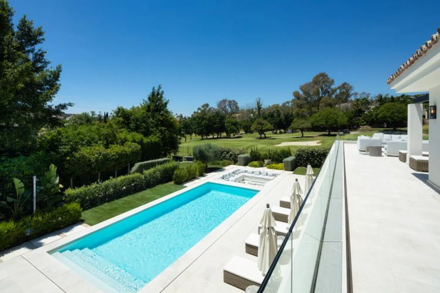 **Descubra Villa Auriga 36: La elegancia clásica se une al lujo contemporáneo en Nueva Andalucía** Situada en una de las zonas más codiciadas de Marbella, **Auriga 36** es una sorprendente villa que combina armoniosamente exteriores atemporales con interiores opulentos. Esta lujosa propiedad ofrece amplios espacios al aire libre diseñados para la relajación y el entretenimiento, con una impresionante piscina, un área de descanso hundida y amplias terrazas para cenar y descansar al aire libre. A su llegada, una cochera cubierta para dos coches y una elegante entrada crean una primera impresión memorable. Su ubicación privilegiada en primera línea de golf ofrece vistas panorámicas del campo, que se disfrutan perfectamente desde la terraza de la villa. Recientemente renovado con estándares impecables, Auriga 36 irradia elegancia, con ventanales de piso a techo y puertas corredizas que inundan la casa con luz natural. La villa incluye cinco habitaciones con baño bellamente decoradas, cada una diseñada como un refugio tranquilo. El nivel inferior está dedicado al ocio y cuenta con un elegante bar y un gimnasio en casa de última generación, creando un paraíso privado para la relajación y el entretenimiento. Ubicada en **Calle Auriga en el corazón de Nueva Andalucía**, esta villa ofrece un acceso incomparable a las mejores comodidades, campos de golf y playas de Marbella, lo que la convierte en el hogar ideal para aquellos que buscan una vida refinada en una ubicación exclusiva.