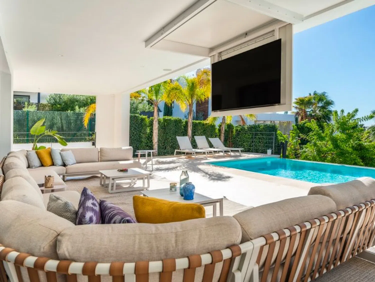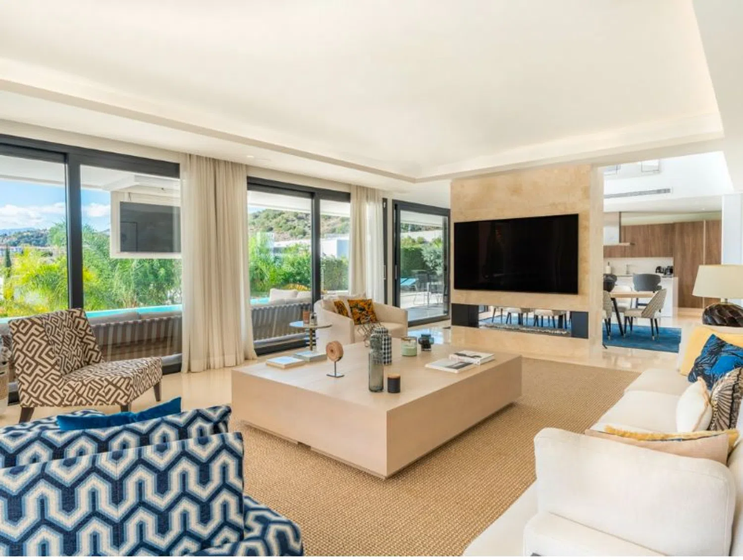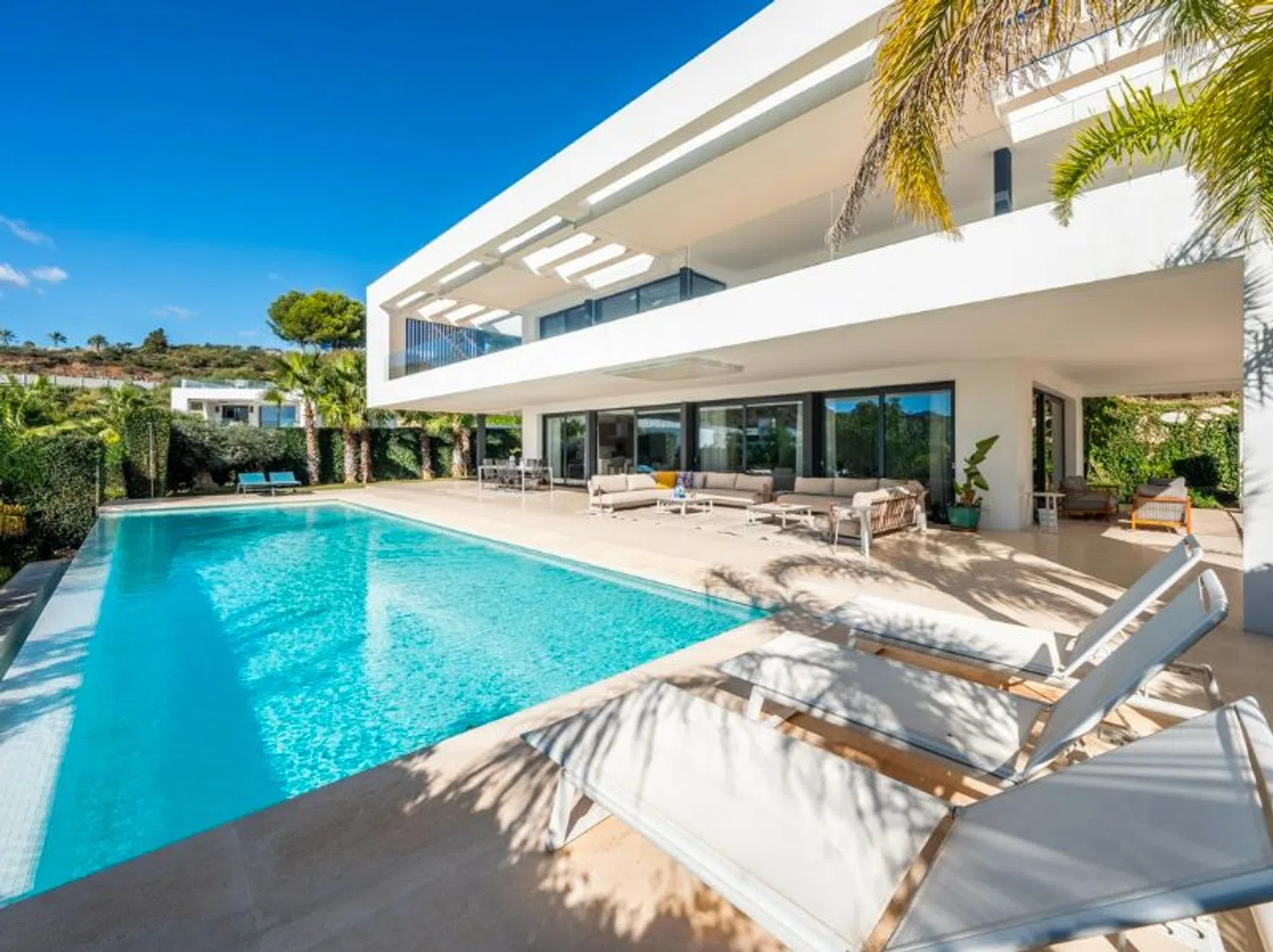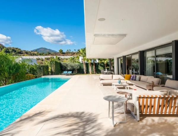 ¡Presentamos el epítome de la vida de lujo en Marbella! Descubra esta exquisita villa de 6 dormitorios, con un elegante diseño contemporáneo, ubicada en el corazón del Valle del Golf de Marbella. Situada dentro de la exclusiva comunidad cerrada de Los Olivos, dentro del prestigioso enclave residencial Haza del Conde, esta obra maestra moderna ofrece impresionantes vistas de paisajes pintorescos. Combinando el encanto mediterráneo con la arquitectura contemporánea, esta villa rezuma opulencia y sofisticación. Disfrute de la proximidad a servicios de primer nivel, incluidos campos de golf, tiendas, restaurantes, escuelas internacionales y más. Con su ubicación privilegiada cerca de playas con bandera azul, famosos clubes de playa y la vibrante vida nocturna de Puerto Banús, todos los caprichos están a su alcance. Esta villa se destaca entre sus pares, ofreciendo los más altos estándares de confort y lujo. Con sus amplias salas de estar, cocina de última generación, dormitorios tranquilos y baños modernos, cada aspecto rezuma elegancia. En el exterior, disfrute de la comodidad del estacionamiento cubierto, una piscina de borde cero que se combina a la perfección con un entorno exuberante y amplias terrazas para cenar al aire libre. El jardín paisajístico realza el ambiente lujoso de la propiedad. Esta casa ecológica está amueblada con buen gusto y cuenta con comodidades de lujo, que incluyen paneles solares, aire acondicionado y seguridad las 24 horas. No se limite a ser propietario de una casa; adopte un estilo de vida de sofisticación y tranquilidad en la codiciada Nueva Andalucía de Marbella.