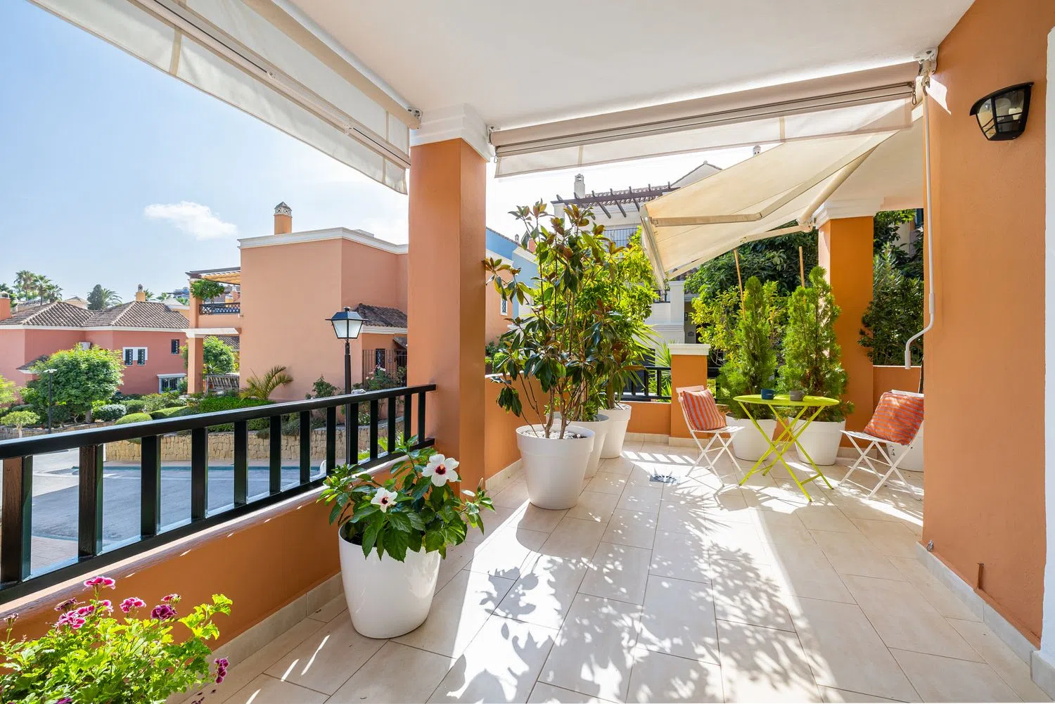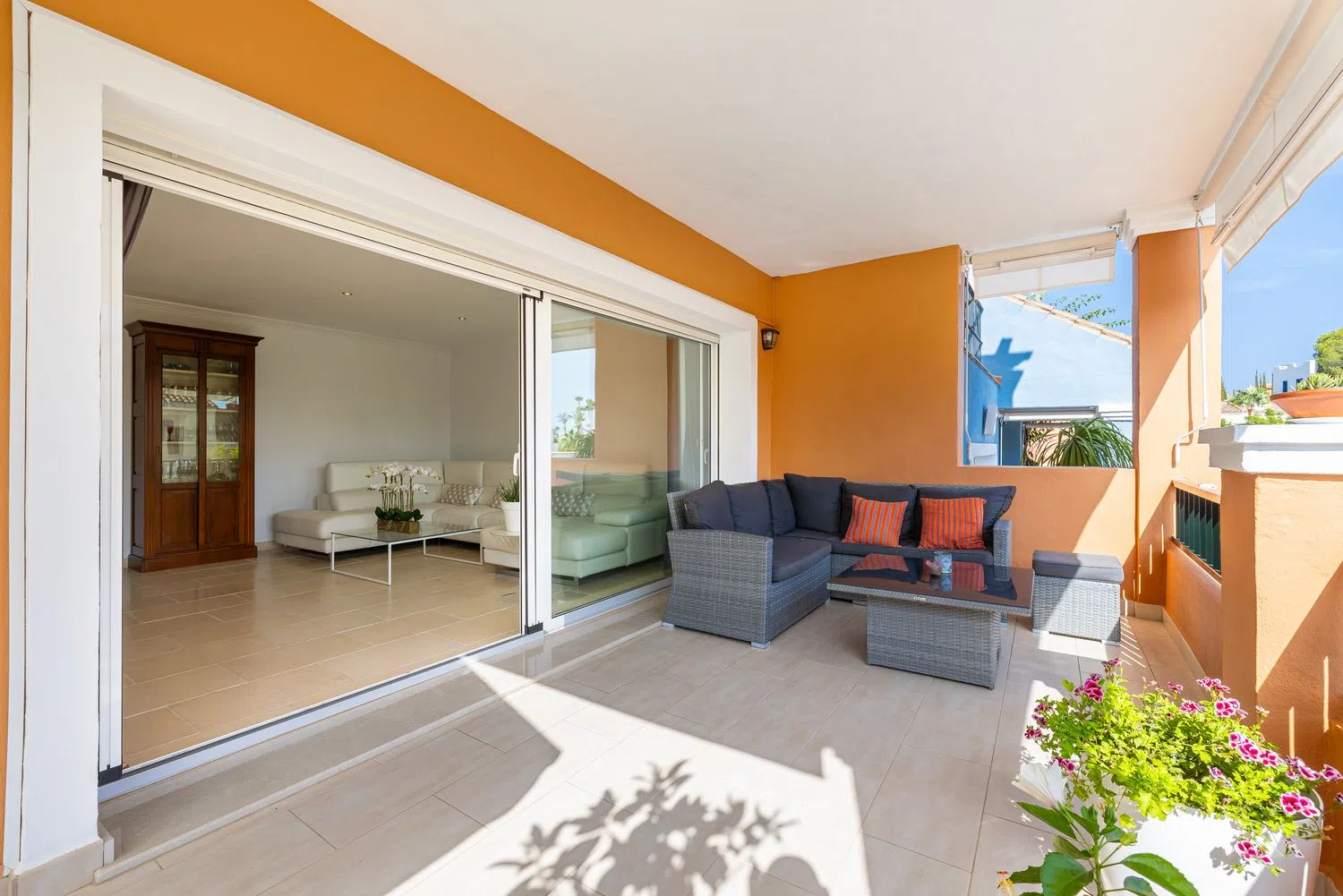 Ubicado en la prestigiosa urbanización Brisas Del Sur, este hermoso adosado reformado ofrece una oportunidad única de vivir en una de las zonas más exclusivas de Nueva Andalucía. La comunidad cerrada, llena de coloridos adosados, consta de solo 52 propiedades y cuenta con impresionantes vistas a la montaña y al mar. Situado en una suave ladera, esta propiedad se encuentra a poca distancia de algunos de los campos de golf más reconocidos de la Costa del Sol, como Los Naranjos, Aloha y Las Brisas. En pocos minutos en coche, podrá llegar a los vibrantes centros de Puerto Banús o San Pedro de Alcántara. La urbanización ofrece amplias plazas de aparcamiento, lo que añade valor a la propiedad. Los residentes pueden disfrutar de los exuberantes jardines comunitarios, una hermosa zona de piscina y un campo de golf de práctica privado, lo que convierte a este lugar en el entorno ideal para parejas, familias y entusiastas del golf. Detalles Interiores Al entrar, descubrirá amplios espacios de vida inundados de luz natural, gracias a grandes ventanales que crean un ambiente luminoso y aireado. La propiedad cuenta con cuatro amplios dormitorios, tres baños, un aseo de invitados, una cocina totalmente equipada y 42m² de terrazas, que ofrecen un amplio espacio para un estilo de vida cómodo y contemporáneo. Entre las comodidades adicionales se incluyen un generoso garaje y un práctico cuarto de lavandería. Construido con altos estándares, la casa está equipada con ventanas de doble acristalamiento, suelos de mármol, aire acondicionado, persianas eléctricas y una espaciosa cocina con electrodomésticos modernos, incluyendo un frigorífico doble con dispensador de cubitos. Ubicación Perfecta Experimente el encanto de un estilo de vida tipo pueblo, combinado con la proximidad a los servicios y principales atracciones de la Costa del Sol, todo en un entorno sereno y tranquilo. Ya sea que esté buscando un hogar familiar, un refugio vacacional o un paraíso para los golfistas, esta propiedad lo tiene todo.