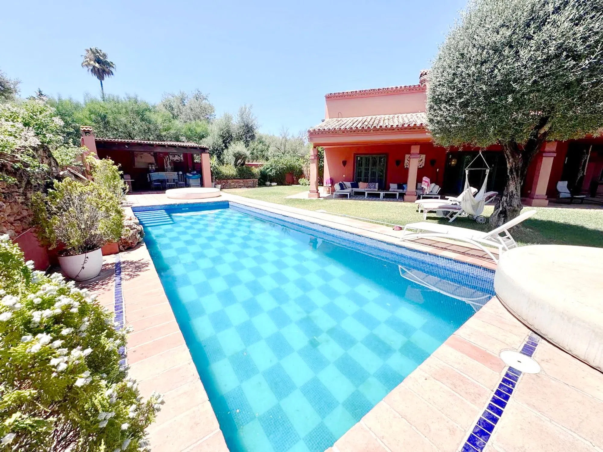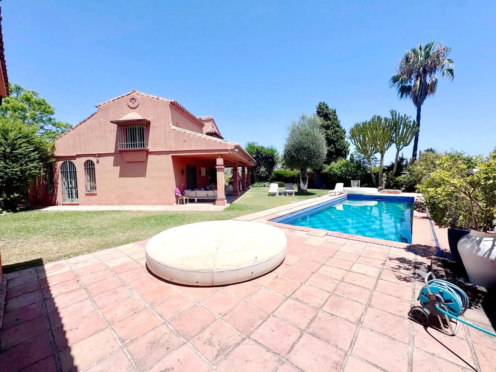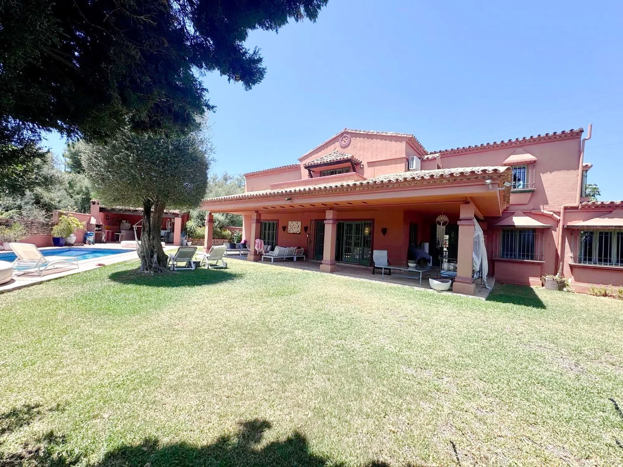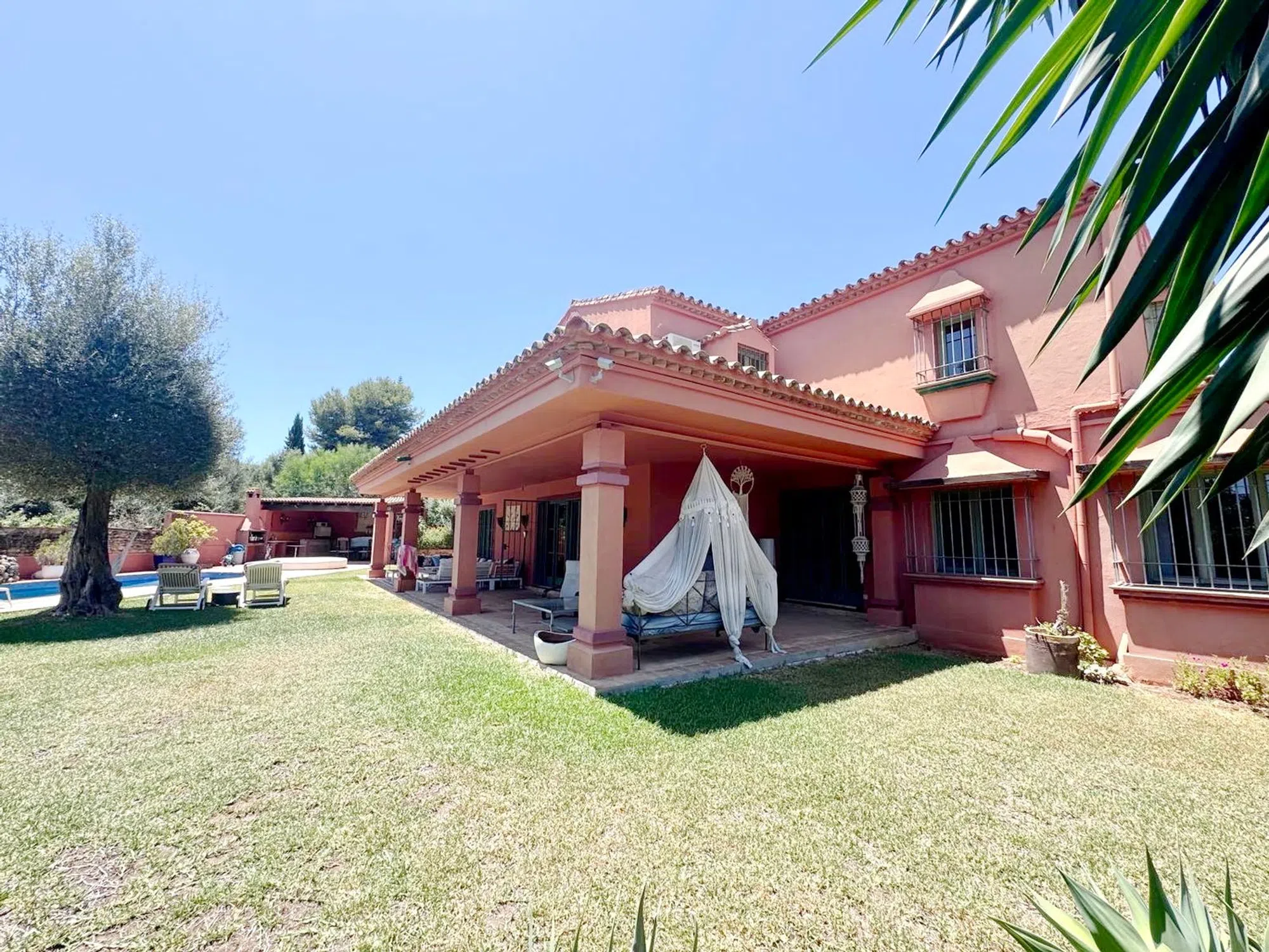 Exclusiva villa con gran potencial de inversión, situada en una de las zonas más prestigiosas de Marbella, a escasos metros de Puerto Banús y sus playas, rodeada de todos los servicios y comodidades, junto a la reconocida urbanización Atalaya de Río Verde, esta magnífica propiedad forma parte de un futuro complejo residencial de lujo con seguridad privada, lo que añade tranquilidad y valor sostenido a largo plazo. La villa se asienta sobre una amplia parcela de 1.204 m² y ofrece un frondoso jardín maduro, piscina privada, zona chill-out y árboles de gran porte, creando un entorno ideal para disfrutar del excelente clima de la Costa del Sol durante todo el año. Cuenta con 506 m2 construidos distribuidos en 4 amplios dormitorios y 4 baños en suite, además de un apartamento independiente y una habitación de servicio con baño junto a la cocina. El hecho de estar orientada al sur le hacen ser muy luminosa, además está muy bien distribuida por lo que es una vivienda muy cómoda, dispone de rincones con mucho encanto. Entre sus espacios destacan tres salones (dos interiores y uno exterior), así como una cocina totalmente equipada con acceso directo a las zonas exteriores y área de barbacoa y zona de comedor. Techos altos, abovedados con bonitas bigas de madera que le dan un carácter especial a la casa. Cocina exterior con una amplia zona de barbacoa para el disfrute durante todo el año. Equipada con aire acondicionado, chimenea y aparcamiento privado para 2-3 vehículos. Ubicada en una zona en plena expansión con gran proyección, esta propiedad combina a la perfección estilo de vida, privacidad y potencial de revalorización. A tan solo 2 minutos de la playa de Puerto Banús, del prestigioso Colegio Aloha, campos de golf y de todos los servicios premium que ofrece Marbella. Una inversión inteligente en una ubicación verdaderamente privilegiada.