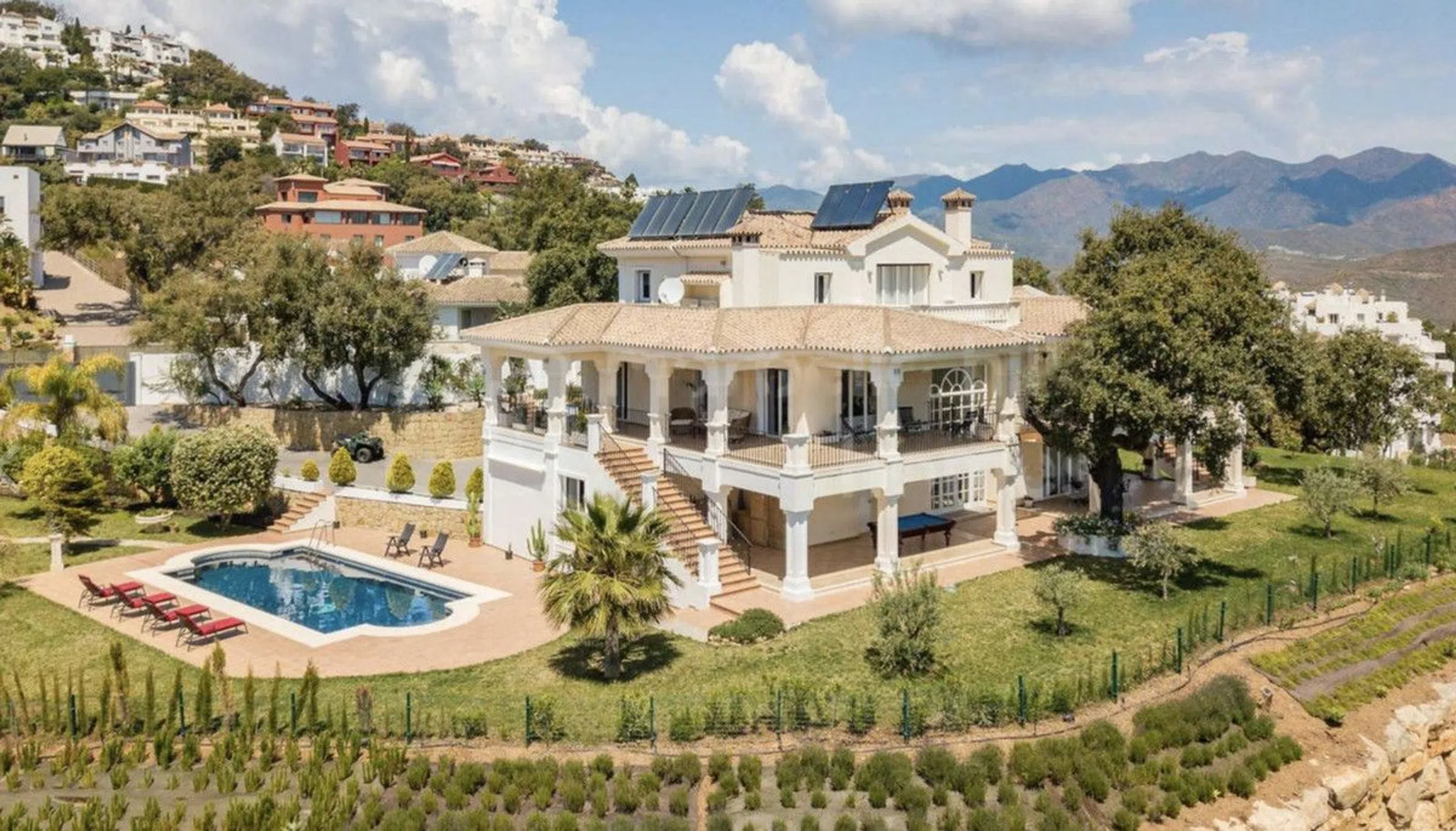 Villa - Chalet, Marbella, Costa del Sol. 5 Dormitorios, 6 Baños, Construidos 750 m², Terraza 170 m², Jardin/Terreno 3200 m². Climatización: Aire Acondicionado, Chimenea. Vistas: Mar, Montaña, Golf, Panorámicas, Jardín. Caracteristicas: Terraza Cubierta, Ascensor, Armarios Empotrados, Terraza Privada, TV Satélite, Sala de Juegos, Casa de Huéspedes, Trastero, Baño En-Suite. Muebles: Amueblada, Opcionales. Cocina: Equipada. Jardin: Privado. Servicios Públicos: Electricidad. Categoría: Urge venta, Golf, Inversion, Reventa.