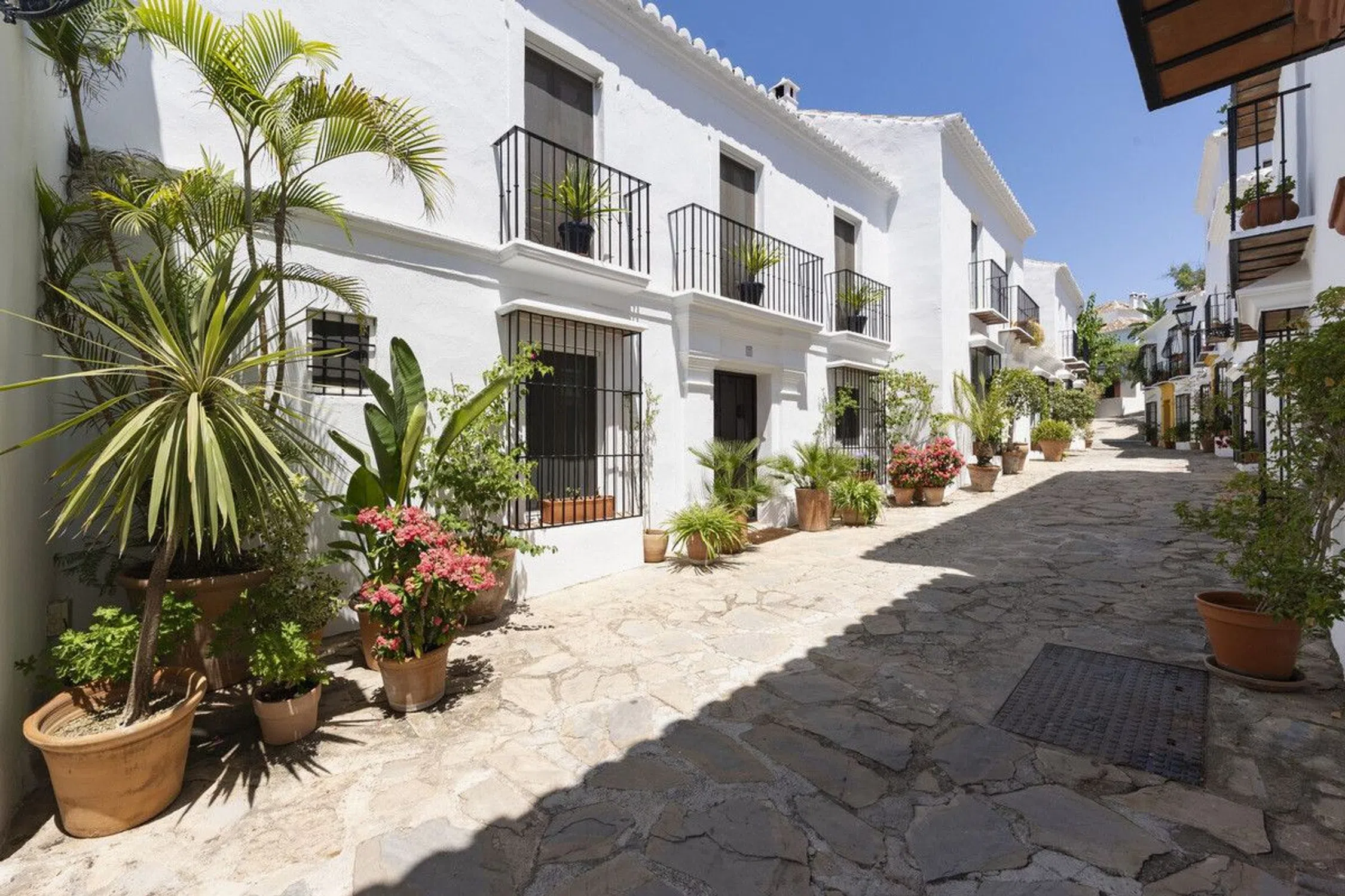 Esta hermosa casa adosada combina el auténtico carácter andaluz con el confort moderno en una de las zonas residenciales más deseadas de Marbella, a lo largo de la Milla de Oro. Diseñada con materiales cálidos, elegantes suelos blancos y sutiles detalles de mármol, ofrece una estética atemporal que se siente a la vez acogedora y contemporánea. La distribución proporciona generosas áreas de estar en dos plantas, además de un sótano versátil, comenzando con un luminoso hall de entrada que fluye hacia una sala de estar en forma de L con chimenea y acceso directo a una terraza parcialmente cubierta, ideal para comer al aire libre. Un comedor independiente y una cocina totalmente equipada con amplio espacio de trabajo complementan la planta baja, junto con un aseo de invitados. Los dormitorios principales se encuentran en la planta superior, donde una tranquila sala de estar conduce al espacioso dormitorio principal con baño en suite. Dos dormitorios adicionales, cada uno con su propio baño, ofrecen un alojamiento confortable para familiares, invitados o una oficina en casa. El sótano añade una flexibilidad excepcional con una distribución amplia y dividida, adecuada para una sala de fitness, un estudio de pasatiempos, una bodega o incluso un apartamento de invitados completo con acceso por escalera interna. La vida al aire libre se ve realzada por una tranquila terraza privada y espacios comunes bellamente mantenidos, que incluyen una piscina y una zona social rodeada de jardines paisajísticos que reflejan el encanto de un pueblo andaluz. Características prácticas como armarios empotrados, trastero, terraza privada, garaje comunitario y aire acondicionado garantizan la comodidad diaria. Ubicada dentro de un tranquilo complejo residencial cerrado, la casa disfruta de una orientación oeste que ofrece luz natural y cálidas puestas de sol, junto con vistas abiertas a la montaña y urbanas. Su ubicación es excepcional: a solo 10 minutos a pie de la playa y cerca de los mejores restaurantes, boutiques, cafeterías, escuelas y servicios diarios. Con campos de golf, clubes de playa y el vibrante centro de la ciudad de Marbella al alcance de la mano, ofrece un estilo de vida mediterráneo ideal, ya sea como residencia principal, refugio de vacaciones u oportunidad de inversión.