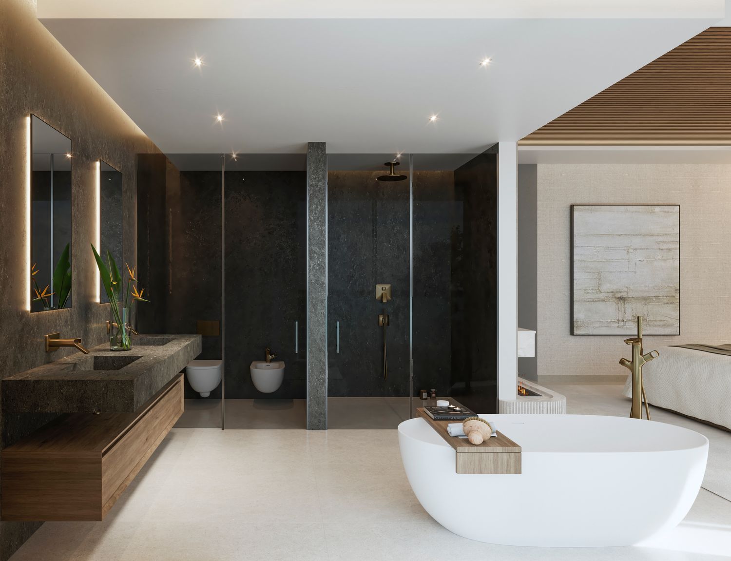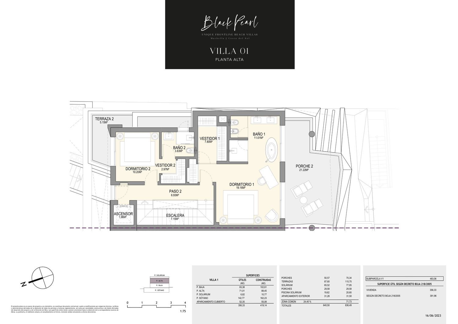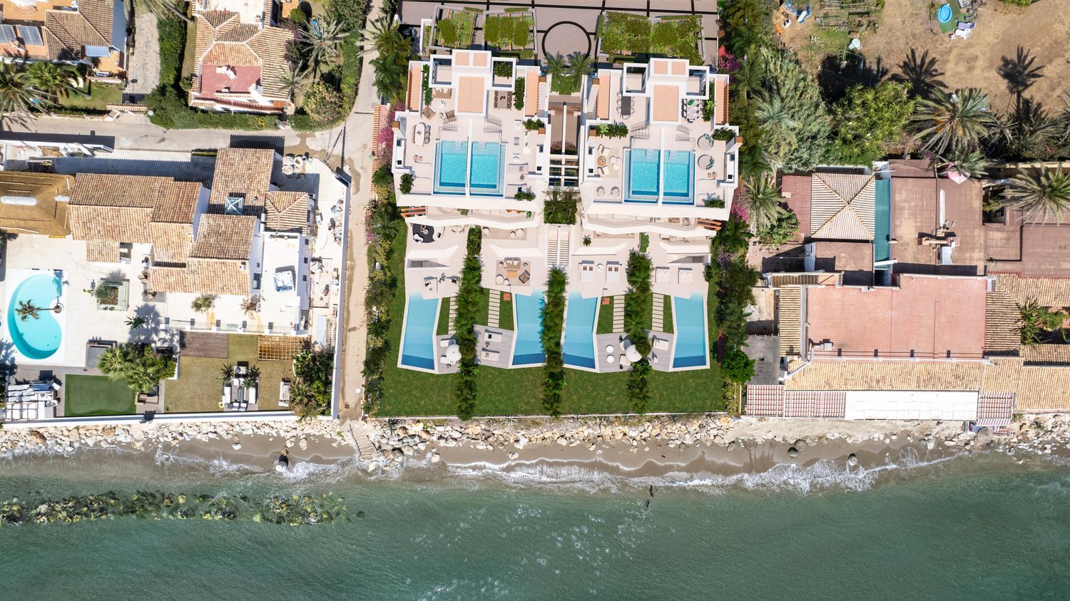 BLACK PEARL ist ein exklusives Projekt mit 4 spektakulären Häusern mit einem einzigartigen Design. Diese Häuser befinden sich in einer bewachten Anlage direkt am Strand von Marbella Ost, umgeben von feinen Sandstränden und luxuriösen Villen. In der Nähe zahlreicher Annehmlichkeiten und der besten Golfplätze der Costa del Sol ist das renommierte Architekturbüro Gonzalez & Jacobson für das exklusive Design von BLACK PEARL verantwortlich. Der Komplex bietet nicht nur atemberaubende Ausblicke, sondern zeichnet sich auch durch eine hohe Bauqualität, ein nachhaltiges Design und einen kreativen und innovativen Ansatz aus, wie er bei Wohnanlagen selten ist: Das Design von BLACK PEARL wurde sorgfältig geplant, um die Ausblicke zu maximieren und die einzigartige Lage dieses wunderschönen Projekts hervorzuheben. Jede Villa wurde individuell gestaltet, um die natürliche Schönheit der Umgebung hervorzuheben. Das Wohnzimmer und die Terrasse verschmelzen zu einem großen Wohnbereich, in dem die Fenster nahtlos in die Wände integriert sind, um den ungehinderten Blick auf die natürliche Umgebung einzurahmen. Jedes Haus hat ein privates Grundstück von ca. 500 m2 und besteht aus 4 Schlafzimmern, 4 Bädern und einer Gästetoilette. Der Außenbereich erstreckt sich von der überdachten Veranda bis zum Swimmingpool und endet in einem privaten Sandbereich, wo Sie Ihren eigenen Strand am Meer genießen können. Alle Villen wurden sorgfältig auf 4 Etagen verteilt, um Komfort und Luxus in jedem ihrer Räume zu bieten. Im Erdgeschoss befindet sich die Hauptebene der Villa, die so gestaltet ist, dass sie ein Maximum an Komfort und sozialem Leben bietet. Hier finden Sie ein geräumiges Wohnzimmer mit spektakulärem Meerblick, ideal zum Entspannen und um Momente in Gesellschaft zu genießen. Die strategisch günstig gelegene Küche der renommierten Marke NOLTE ist modern und komplett mit den besten Geräten von GAGGENAU ausgestattet und bietet einen funktionalen Raum für die Zubereitung köstlicher Mahlzeiten. Darüber hinaus befindet sich auf dieser Etage ein Schlafzimmer mit eigenem Bad, das den Bewohnern einen komfortablen Aufenthalt ermöglicht.Im ersten Stock befindet sich der Bereich, der für Privatsphäre und Ruhe bestimmt ist. Hier finden Sie zwei Schlafzimmer mit eigenem Bad. Das Hauptschlafzimmer mit eigenem Bad verbindet Komfort, Eleganz und Panoramablick und bietet einen privaten und exklusiven Raum, in dem Sie sich ausruhen, entspannen und die unvergleichliche Lage am Meer genießen können. Das an das Hauptschlafzimmer angrenzende private Bad ist ein wahres Schmuckstück in Bezug auf Design und Qualität. Es ist mit hochwertigen Materialien ausgestattet, die Eleganz und Luxus ausstrahlen. Doppelwaschbecken mit raffinierten gebürsteten bronzefarbenen Armaturen verleihen dem Bad einen Hauch von Raffinesse, und hinterleuchtete Spiegel ergänzen die elegante Ästhetik des Badezimmers. Eine geräumige Badewanne lädt zum Eintauchen und Entspannen nach einem langen Tag am Strand ein. Außerdem gibt es eine begehbare Dusche mit Regendusche, die ein erfrischendes Erlebnis bietet. Sowohl das Hauptschlafzimmer als auch das Badezimmer haben Fenster, die einen atemberaubenden Blick auf das Meer bieten, so dass tagsüber natürliches Licht in den Raum fällt und Sie die Möglichkeit haben, atemberaubende Sonnenuntergänge bequem vom Schlafzimmer aus zu genießen. Außerdem verfügt das Hauptschlafzimmer über einen großen begehbaren Kleiderschrank, der viel Platz für die Aufbewahrung und Organisation von Kleidung und Accessoires bietet. Hier finden Sie maßgefertigte Einbauschränke, Regale und Schubladen, die auf Ihre Bedürfnisse zugeschnitten sind.