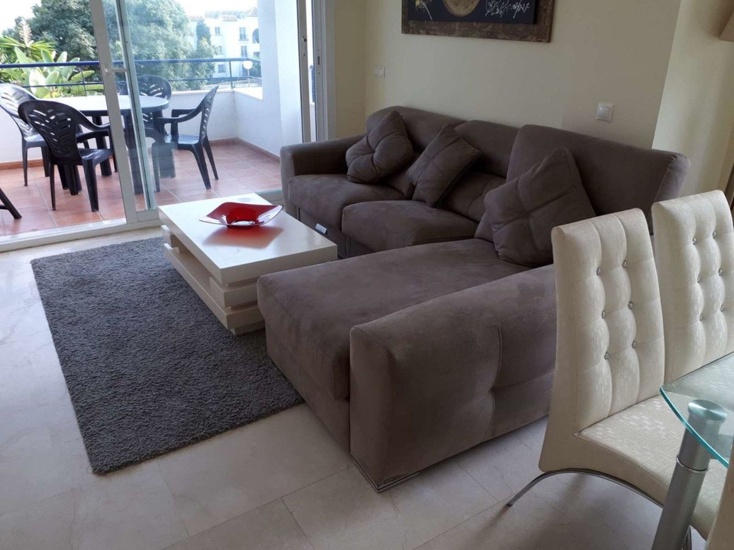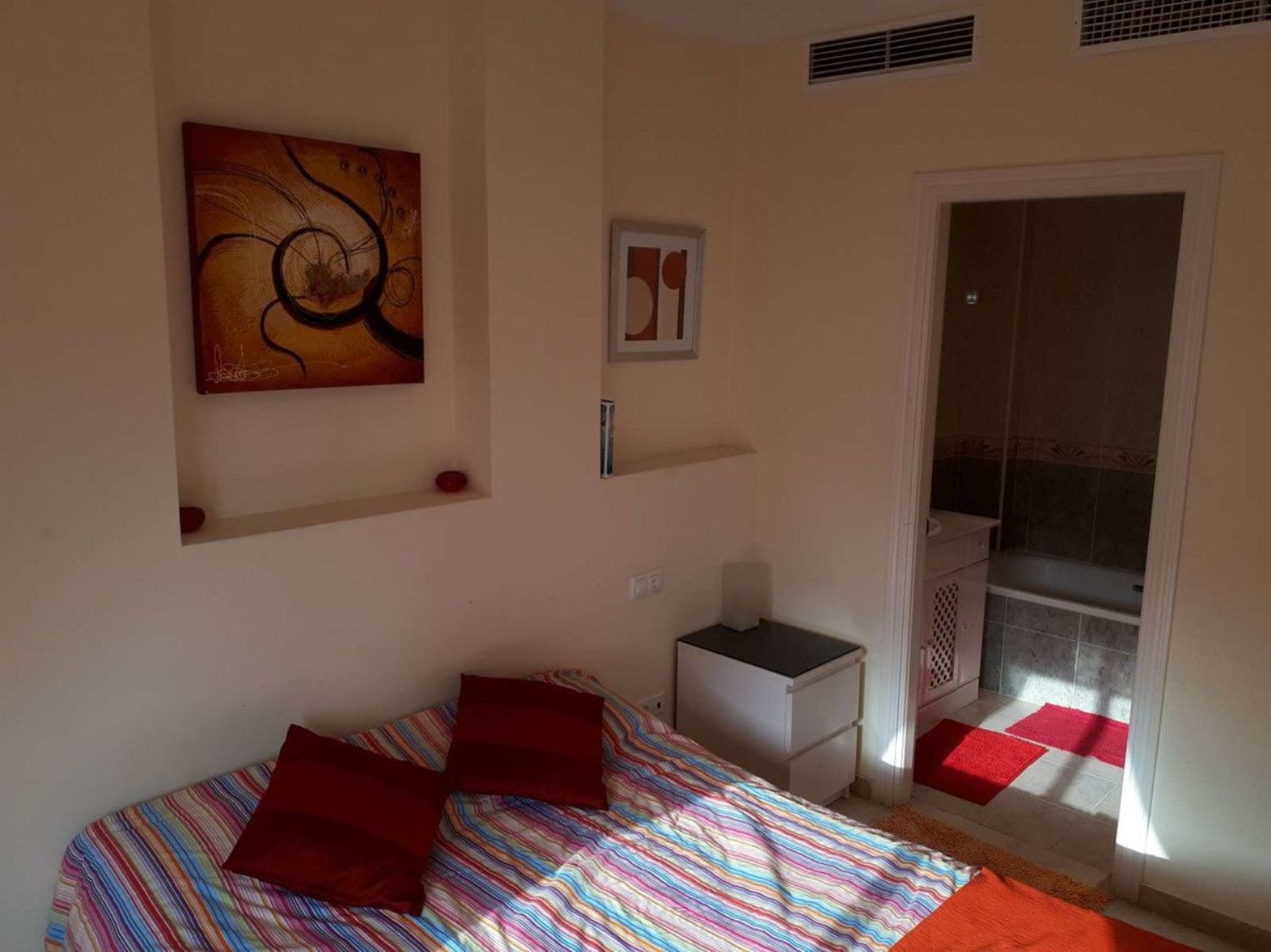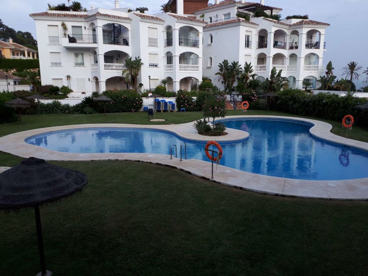 Impecable apartamento de planta baja en venta. Cuenta con 2 dormitorios y 2 baños, orientación sur y oeste. Los dormitorios son dobles y tienen armarios empotrados. El dormitorio principal tiene baño en suite, y hay un baño familiar con ducha adicional. La cocina semiabierta está totalmente equipada, incluyendo lavavajillas. El salón comedor es amplio y la terraza tiene unas hermosas vistas al mar. Los suelos son de mármol en todo el apartamento. Hay ascensores a todos los pisos y una plaza de aparcamiento extra grande. Además, cuenta con un trastero de 8 m². Los jardines comunitarios son preciosos y hay una gran piscina climatizada en invierno. El acceso es bueno para personas con movilidad reducida. La playa y todas las comodidades están a poca distancia. Se vende completamente amueblado. 90 m² construidos, 76 m² útiles. Año de construcción: 2004. Bajo, exterior, con ascensor. Orientación sur y oeste. Plaza de garaje incluida en el precio. Aire acondicionado. Piscina y jardín.