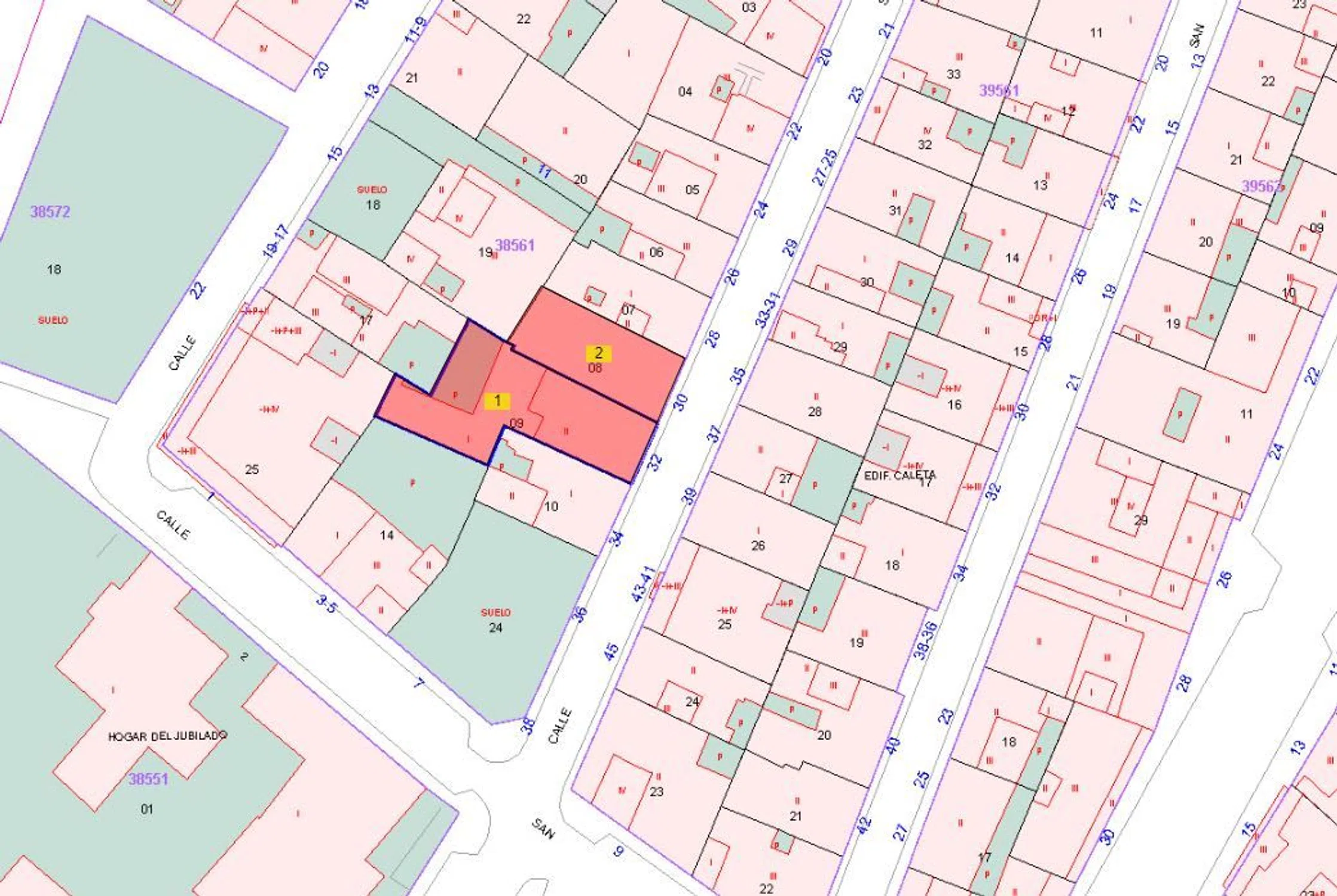 Suelo urbano consolidado con desarrollo totalmente terminado. La ordenación característica de la zona es la de edificios en manzana cerrada. Parcelas de forma poligonal irregular con una superficie de 325 m2. Edificabilidad: 1.128, 60 m2c. Uso: Residencial Plurifamiliar: Propiedad: 100. Las parcelas presentan una orografía sensiblemente horizontal. Se permite PB+2+ático retranqueando dos metros de la fachada. La Ocupación del resto de plantas es del 100 deduciendo los huecos para patios. La promoción inmobiliaria más probable es la construcción de un edificio plurifamiliar de 3 plantas sobre rasante y planta ático para cada una de las fincas registrales. La finca registral 43776 registralmente figura como vivienda, pero su situación física es la de suelo por cuanto que la edificación ha sido demolida con carácter previo, por lo que se transmite en dicha situación debiendo encargarse la compradora de la adecuación registral.