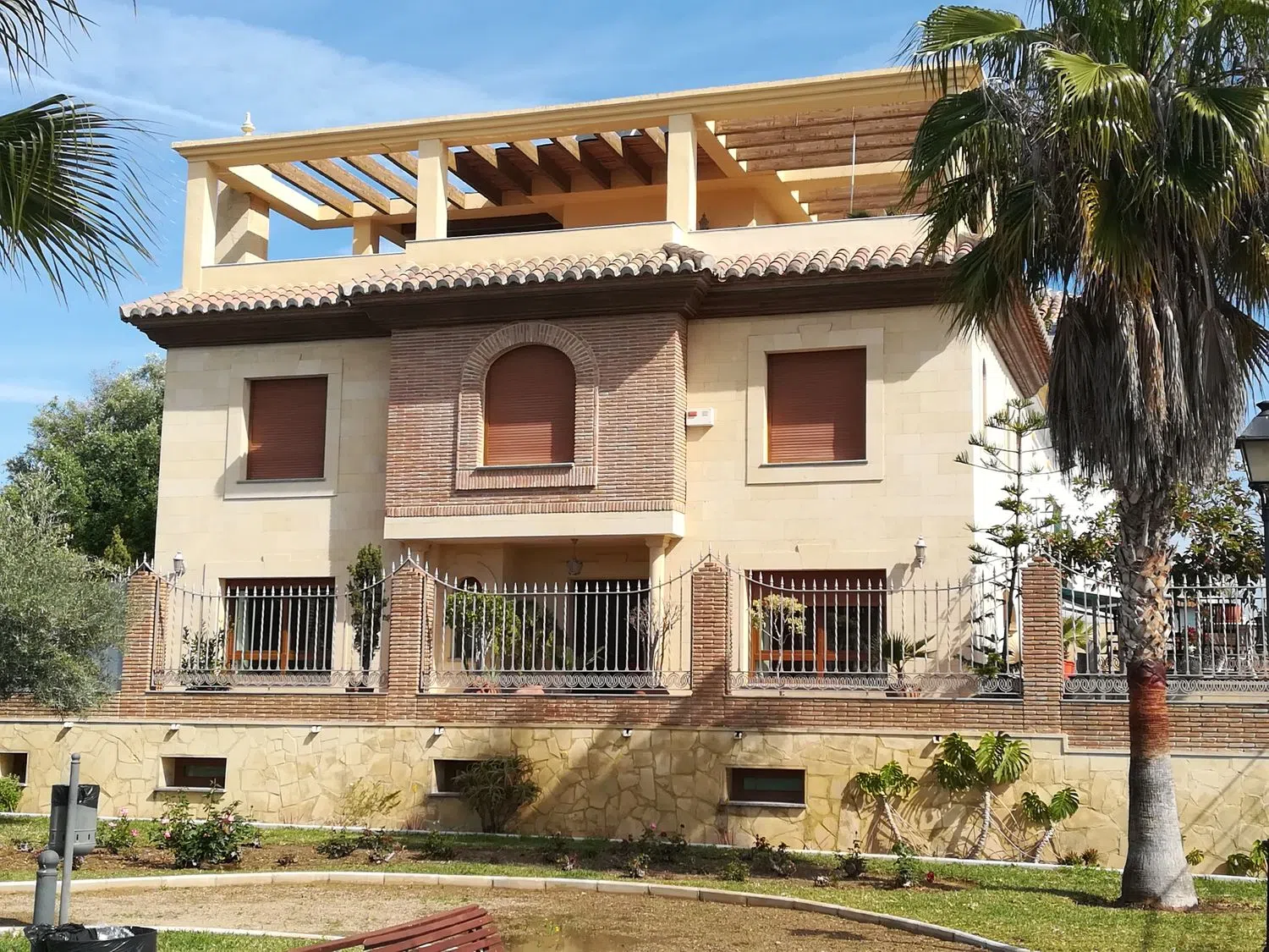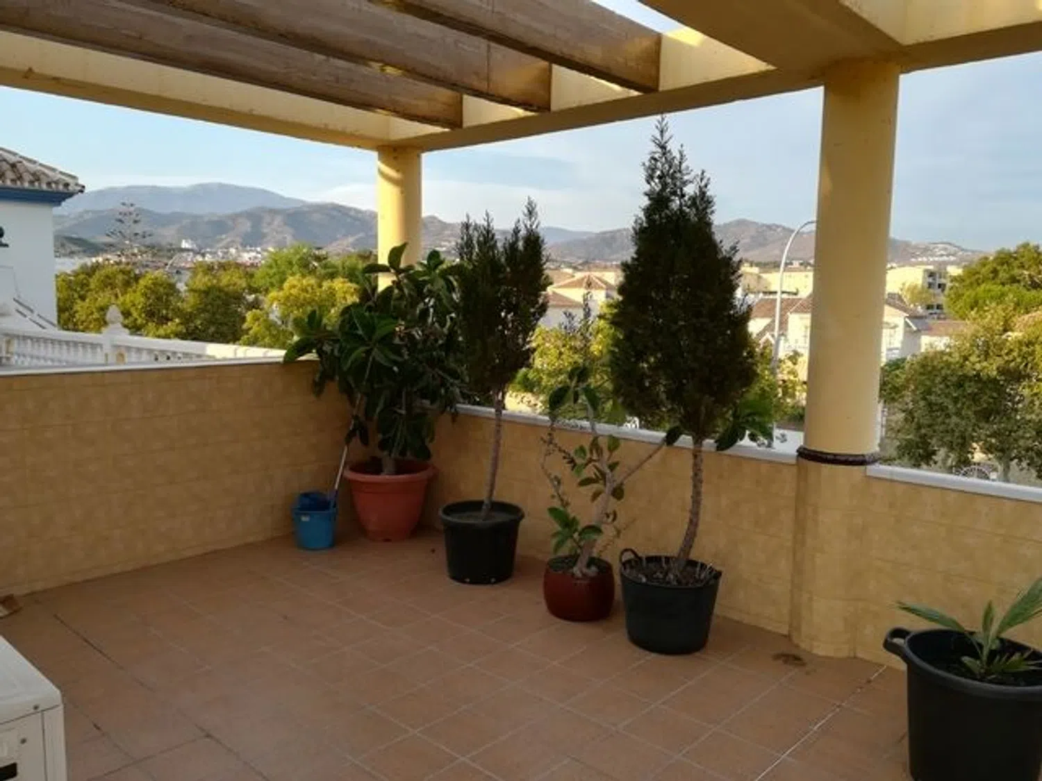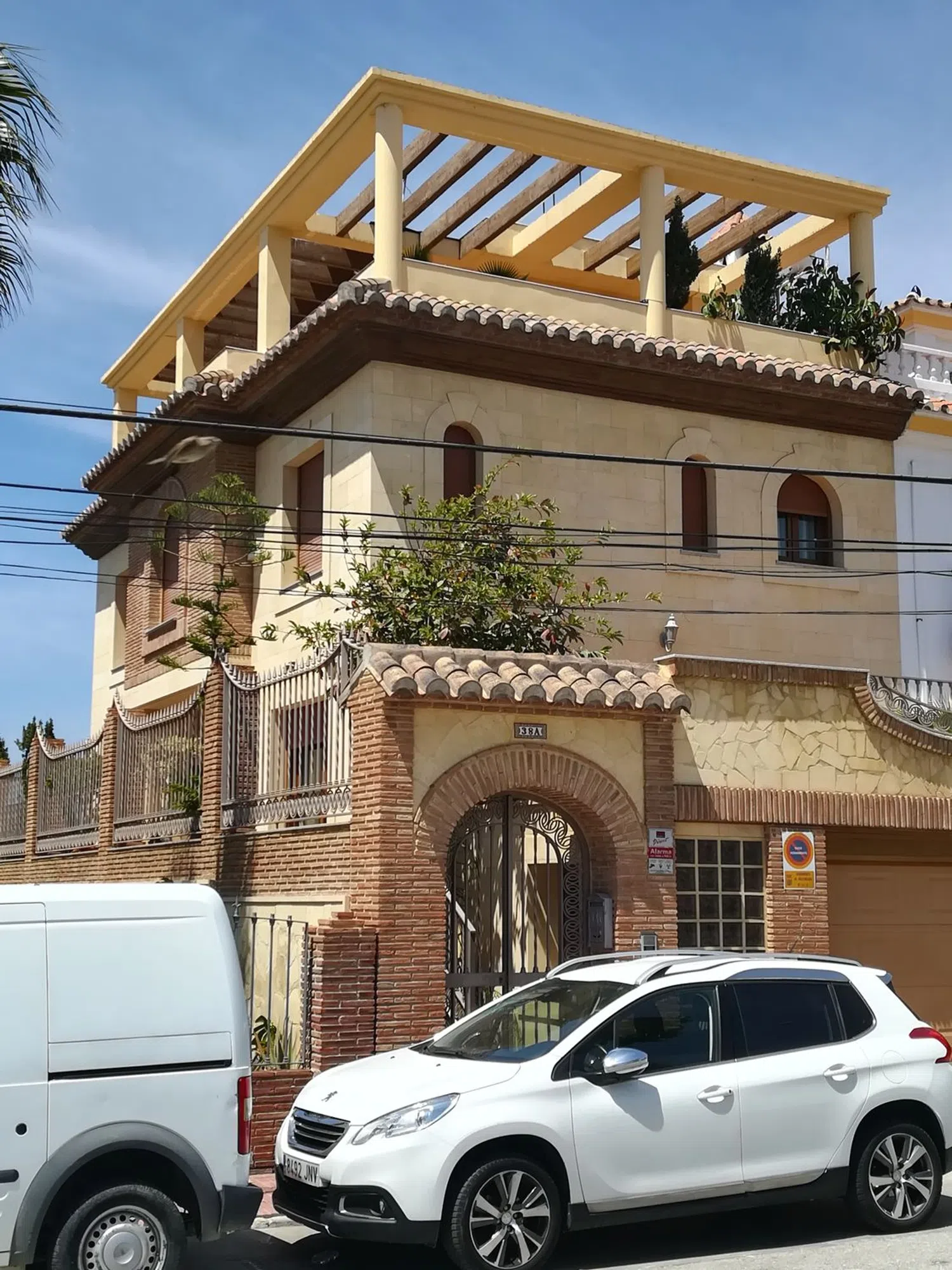 Vivienda unifamiliar pareada situada en una de las mejores zona de Vélez-Málaga, cerca de Guarderías, Colegio, Institutos, Centro de Salud, Farmacia, Supermercado, parada de bus. La fachada norte es pareada, su fachada principal da al sur y las dos restantes están orientadas una al este y otra al oeste. Puedes disfrutar del sol desde el alba hasta el ocaso. El sótano cuenta con una puerta automática que permite la entrada de dos coches a la vez y es muy luminoso pues tiene pequeñas ventanas en la fachada sur que dan al jardín. Se pueden distinguir distintos espacios: garaje, zona de lavado y planchado, estudio, aljibe, cuarto de la depuradora y ducha, despensa, escalera a planta baja, trastero, vestidor. La planta baja se distribuye en: salón, cocina-comedor, aseo, distribuidor, escalera, barbacoa cubierta, pequeña piscina, terraza en la fachada este y terraza de acceso en la fachada sur. En planta primera hay: dormitorio principal con baño, dormitorio segundo, dormitorio tercero, baño segundo, distribuidor, escalera y tres armarios empotrados. La escalera sigue hasta la terraza superior que ocupa toda la superficie construida de la planta primera. En este nivel está el casetón de la escalera, zona de tendedero. Toda la terraza está rematada por una pérgola estructural. Desde la terraza se puede ver gran parte de Vélez y de la comarca de la Axarquía, el pico Maroma presidiéndolo todo. La vivienda cuenta con: muro pantalla en la escalera, suelos radiantes, aire acondicionado en cocina y dormitorio principal, preinstalación de aire acondicionado en el salón, agua caliente sanitaria, calentador de butano de reserva, instalación eléctrica de 400 V con tarifa nocturna, suelo de granito nacional en escalera y plantas baja y primera, revestimiento interior de la zona comedor con mármol travertino, revestimiento exterior de la vivienda con piedra arenisca, ventanas de PVC, cristales climalit de seguridad 6+6 cámara 6, puertas interiores de roble macizo, puerta principal de Iroco, aislamiento con espuma de poliuretano. La calificación energética de la vivienda es C y está dada de alta en la Junta de Andalucía. El garaje cuenta con placa de vado del Ayuntamiento.