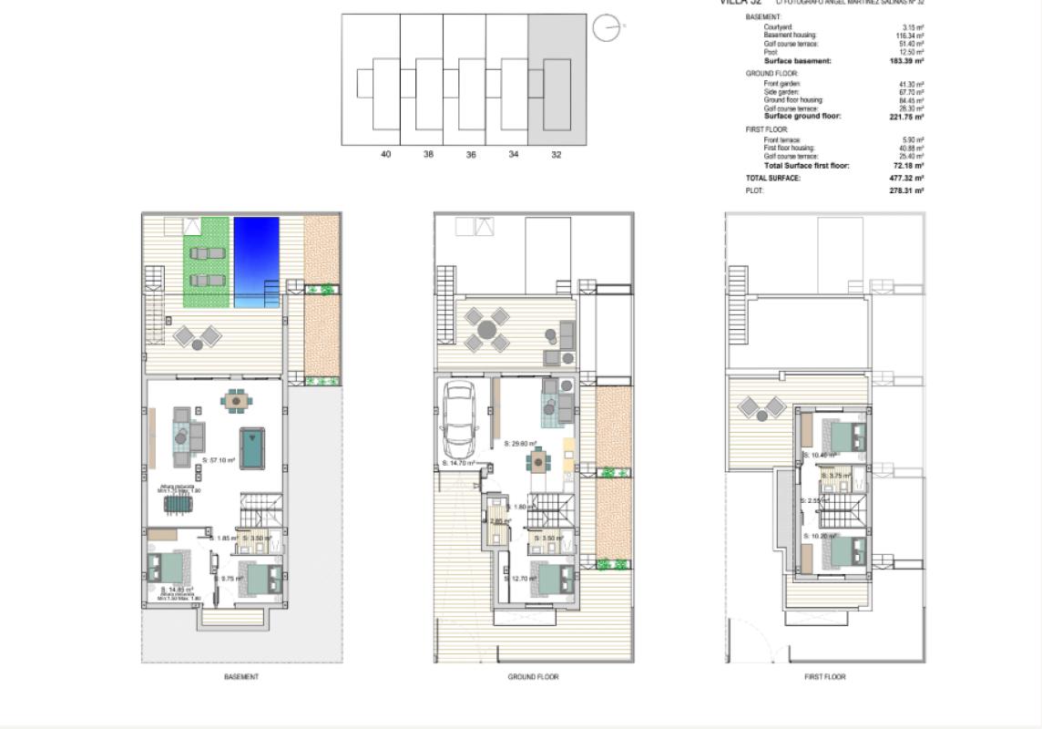 Entdecken Sie wunderschöne, neu erbaute, freistehende und halb freistehende Villen auf einer Ebene mit Solarium, privatem Pool und Parkplatz in Murcia, Los Alcázares. Die Villen von Alejand...