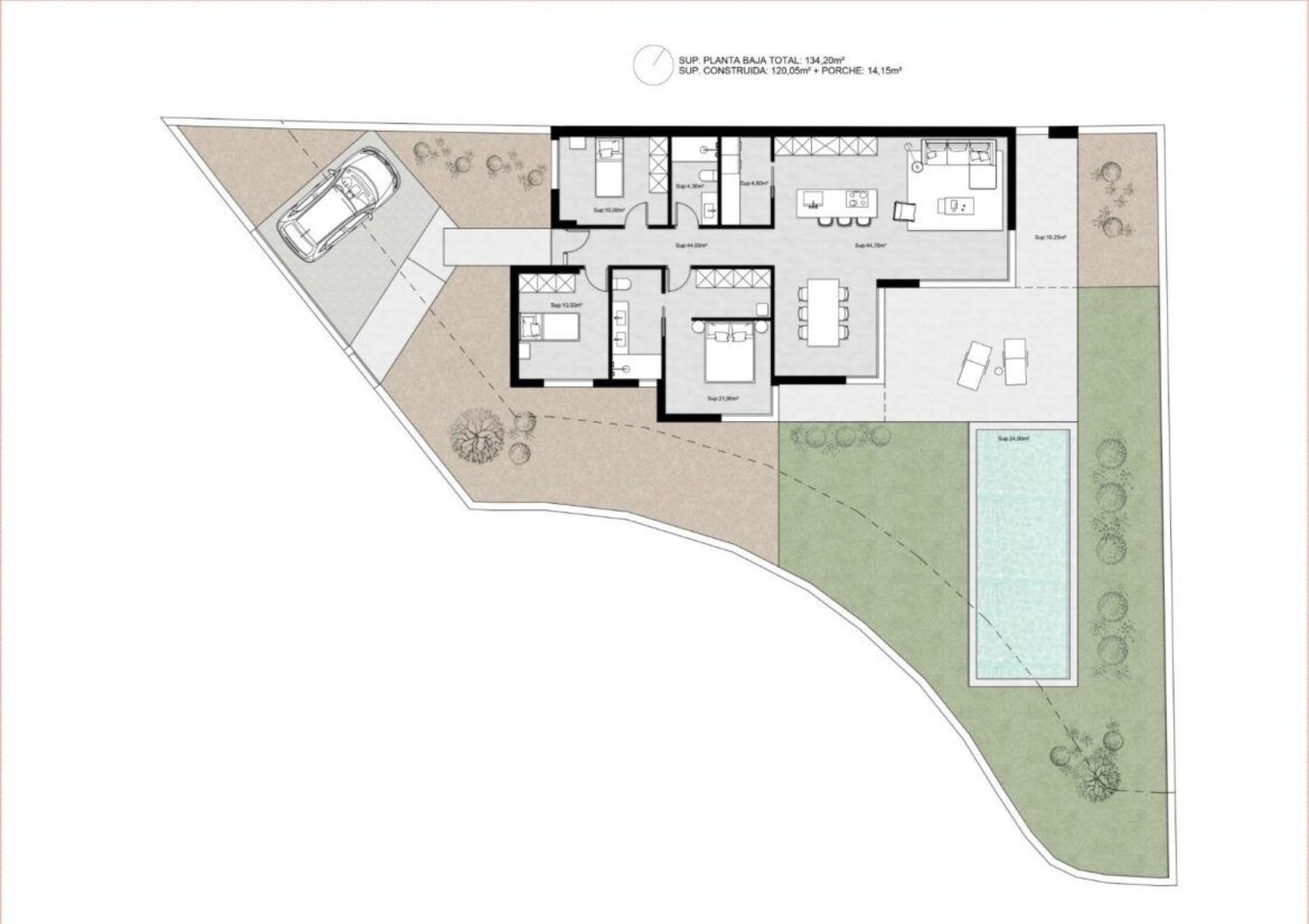 VILLAS DE OBRA NUEVA EN MOLINA DE SEGURA Villas de obra nueva de una sola planta con 3 dormitorios, 2 baños, cocina americana con amplio salón, armarios empotrados, terraza, jardín privado con piscina y plaza de aparcamiento. Villas situadas en urbanización privada con seguridad 24h/7. Entorno con mucha naturaleza y montañas. Centros comerciales a 11 km (IKEA, tiendas, supermercados, restaurantes... ) Supermercado a 350 m. Campo de golf a 7 km. Parque acuático a 12 km. 2 colegios internacionales a menos de 20 min en coche. Centro de Murcia 14 km. Playas de Murcia a 45 min y Orihuela Costa a 50 min. Aeropuerto de Murcia a 30 min y aeropuerto de Alicante a 45 min. Perfecta ubicación para disfrutar de la vida española todo el año.