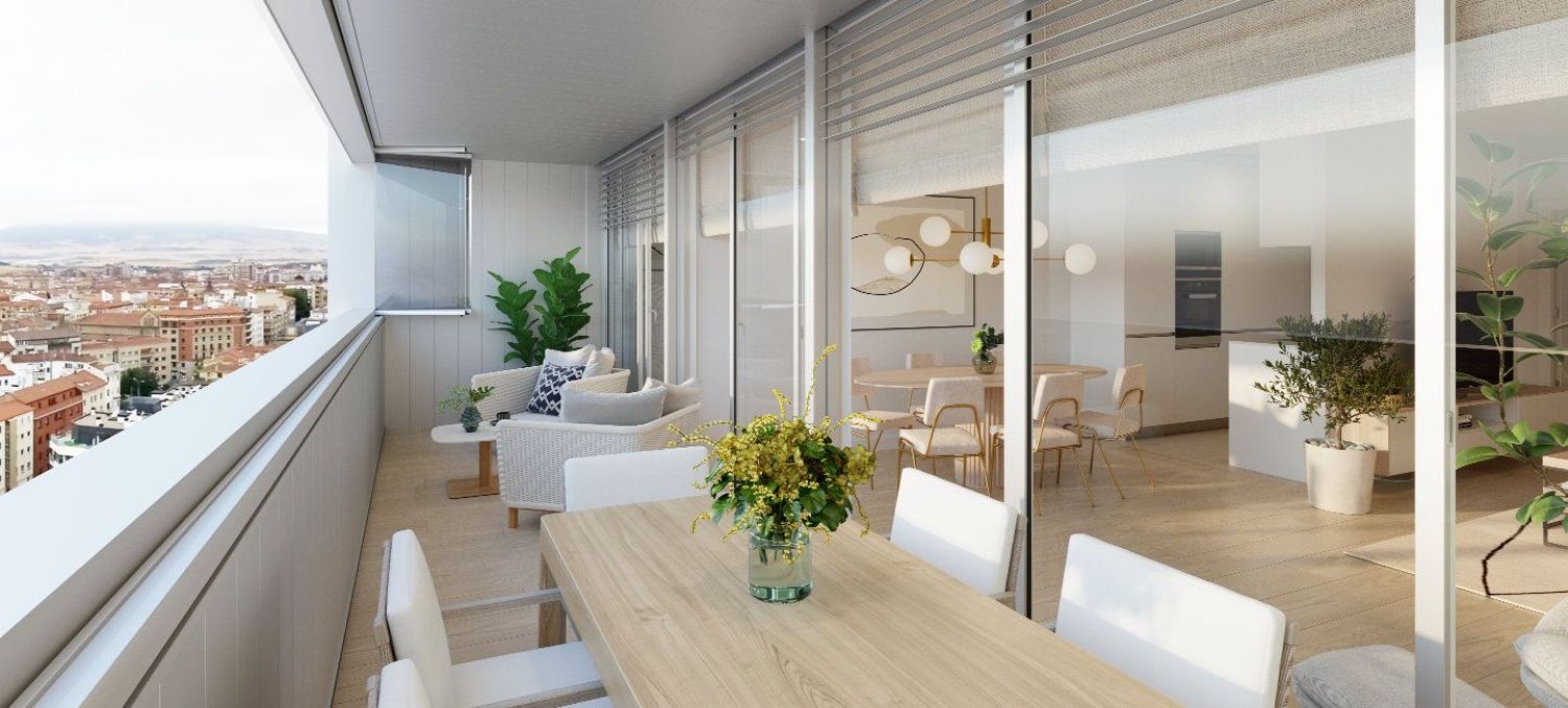 OBRAS INICIADAS. Comodidad, funcionalidad y diseño. Los pilares sobre los que AEDAS Homes ha sustentado Atalaya están pensados para tu bienestar. Esta promoción de obra nueva en Pamplona ofrece viviendas de 1, 2, 3, 4 y 5 dormitorios con variedad de distribuciones y metrajesEn el ensanche de Pamplona junto al Parque de la Media Luna, en la confluencia de las calles Aralar y Leyre, a tan solo unos metros de lugares tan emblemáticos como la Plaza de Toros, la Plaza del Castillo o la Avenida Carlos III. Así, en Atalaya disfrutarás de la tranquilidad de los espacios verdes del Parque de la Media Luna y de la comodidad que supone residir cerca de todo lo que ofrece Pamplona sin olvidar que, gracias a su altura superior a las edificaciones colindantes, tendrás unas vistas privilegiadas sobre la ciudad. Funcionalidad, vanguardia y comodidad. Las mejores calidades, los más altos niveles de confort y la eficiencia energética adaptada a las necesidades del siglo XXI.Todas las viviendas cuentan con:> Luminoso salón comedor diáfano.> Cocina amueblada y equipada.> Dormitorio principal con baño en suite.> Terraza cubierta.> Persianas motorizadas en todas las ventanas.> Garaje comunitario> Trastero.Zonas comunes en las que encontrarás dos piscinas y zona de solárium en cubierta. Contempla Pamplona a vista de pájaro y deleita tu vista con el paisaje que se pinta bajo tus pies. También dispondrás de sala gourmet -txoko- donde compartir experiencias gastronómicas con quien tú quieras y de gimnasio en el propio edificio.Calificación energética A, suelo radiante-refrescante con control de temperatura por estancias, ventilación doble flujo para garantizar la calidad del aire y acristalamientos que asegurarán el confort térmico. Preinstalación para recarga de vehículo eléctrico y podrás escalar el control de tu vivienda mediante dispositivos tecnológicos.