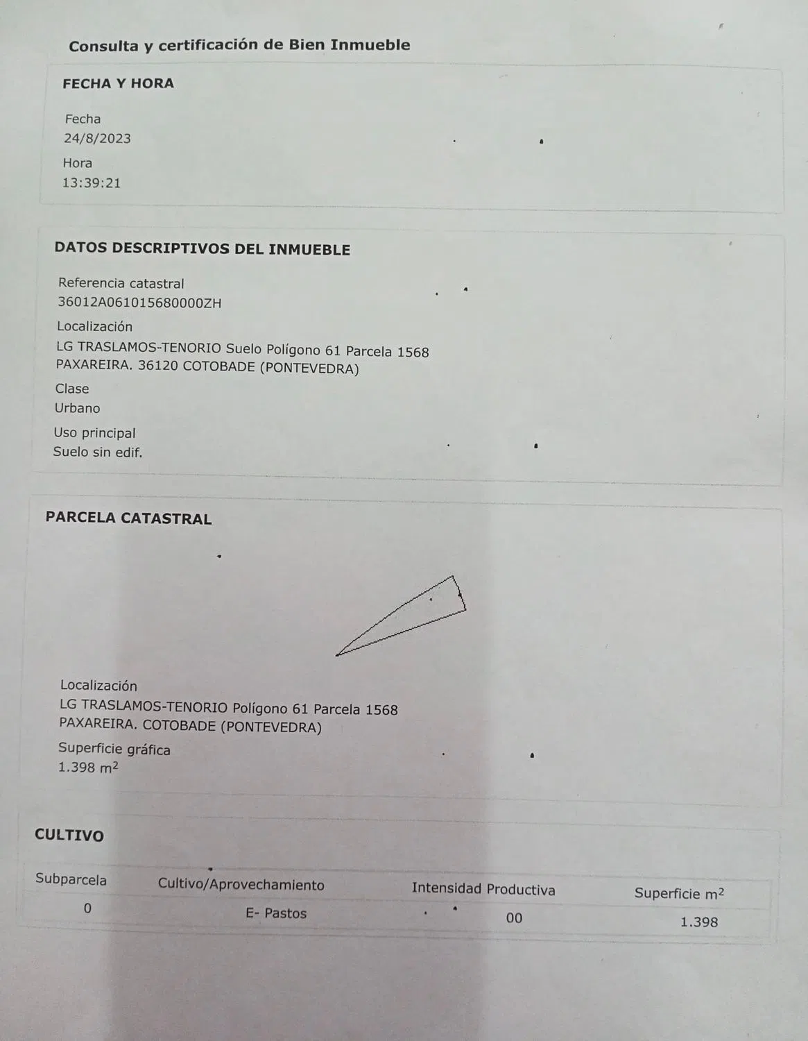 DE LA MANO DE HOMES BY ARENA. ¡Descubre el lugar perfecto para construir tu hogar soñado! Esta magnífica parcela urbana de 1.398 m² se encuentra en Traslamós, Pontevedra, a tan solo 10 minutos de la ciudad por la carretera N. 541 Pontevedra-Orense. Como puedes apreciar en los videos de la publicación, está rodeada de árboles autóctonos y con vistas espectaculares al valle, esta ubicación ofrece la tranquilidad de la vida de aldea sin renunciar a las comodidades modernas. Disfruta de la cercanía de servicios esenciales como colegio, centro de salud, carnicería, café restaurante y panadería. Además, los amantes de la naturaleza encontrarán lugares de esparcimiento a orillas del Río Lérez, incluyendo un puente colgante, la playa fluvial de Calvelo y la impresionante Cascada de Bora. Las rutas de senderismo te invitan a explorar el entorno natural en todo su esplendor. Con posibilidad de edificar una casa de campo de hasta 3 plantas, este terreno cuenta con acceso por carretera y todos los servicios urbanos: agua, luz, alcantarillado y alumbrado público. No pierdas la oportunidad de vivir en un entorno residencial unifamiliar rodeado de naturaleza y tranquilidad. ¡Llama ahora para más información y comienza a hacer realidad tu proyecto!