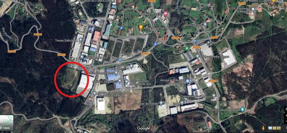 PARCELA de 28.212 m2. en Rúa do Coveliño, en el Polígono Industrial “O Campiño”. 36158 Pontevedra. INSCRIPCIÓN REGISTRAL: REFERENCIA CATASTRAL: 4047201NG3944N0001GR. INFORMACIÓN SOBRE EL POLÍGONO INDUSTRIAL Polígono Industrial inaugurado en 1994. Superficie total: 343.291 m2. Superficie construida: 277.895 m2. Nº de parcelas: 87 Ocupación máxima por parcela: 85% Edificabilidad: 0,7 m2. /m2. Altura máxima: 11 m. l. Promotor del Polígono Industrial: D. Emiliano Quintillán, con domicilio en c/ Maruja Mallo, nº 1 – 1º. 36205 – Vigo. Teléfono: Servicios: alumbrado público, red eléctrica Mt, potencia instalada de 25 W/m2. , red de saneamiento, suministro de agua, alcantarillado, depuradora, red de abastecimiento, red contra incendios, potencia del agua de 22 l. /s, canalización de gas. Accesos: C-531 y N-550. Ancho de viales: 12 m. l. Edificio de servicios: hotel y helipuerto. Servicio de Vigilancia (Seguritas Seguridad España, S. A. ) Distancia a principales ciudades: 8 km. a Pontevedra, 32 km. a Vigo, etc. Asociación de Empresarios “O Campiño”.