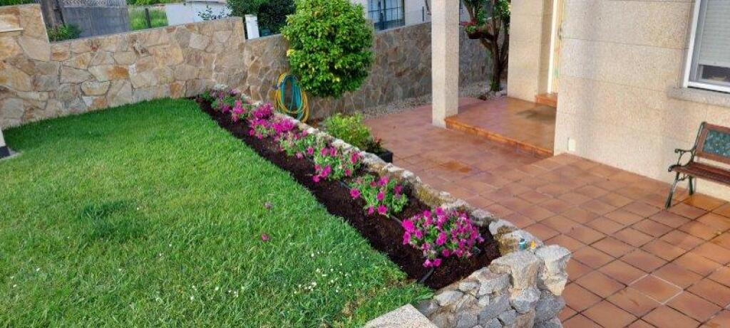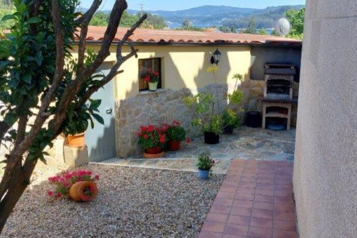 - Zona ajardinada exterior con dos zonas, una a la piscina y la trasera con vistas a la Ría de Pontevedra.