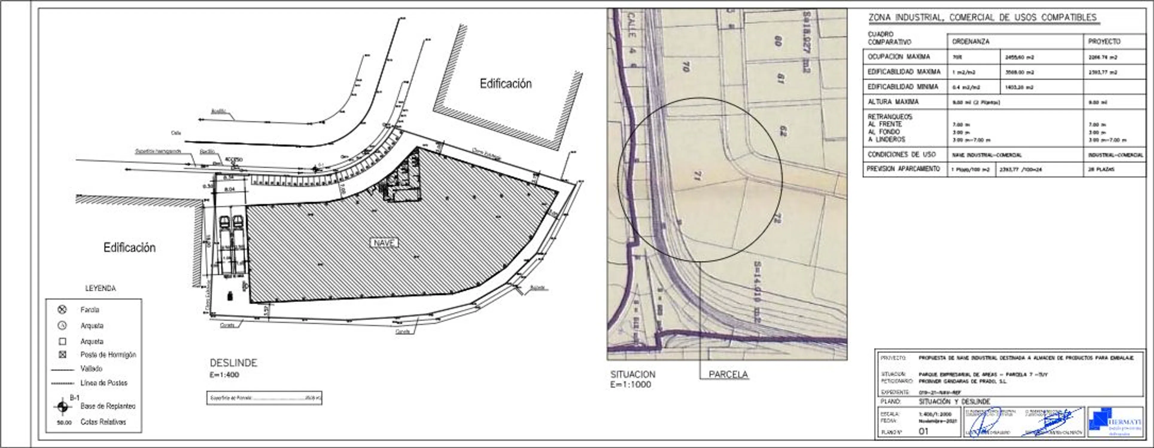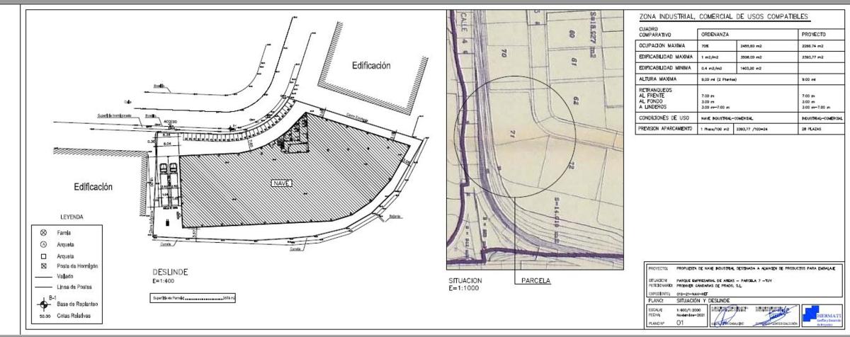 DESCRIPCIÓN: sita en Polígono de Áreas de Tui ( Pontevedra) con una superficie de 3.508 m2, Términos urbanísticos: se permite una ocupación del 70% de la parcela. Edificabilidad: deberá estar comprendida entre 0,40 y 1,00m2/ m2 Número de plantas: se permite un número máximo de dos plantas. Retranqueos de la parcela: Al fondo 3 metros, al frente 7 metros, laterales 3 metros. Número de plazas de parking obligatorias: 1 plaza por cada 100m2 de construcción. Comentarios: CUENTA CON PROYECTO Y LICENCIA...