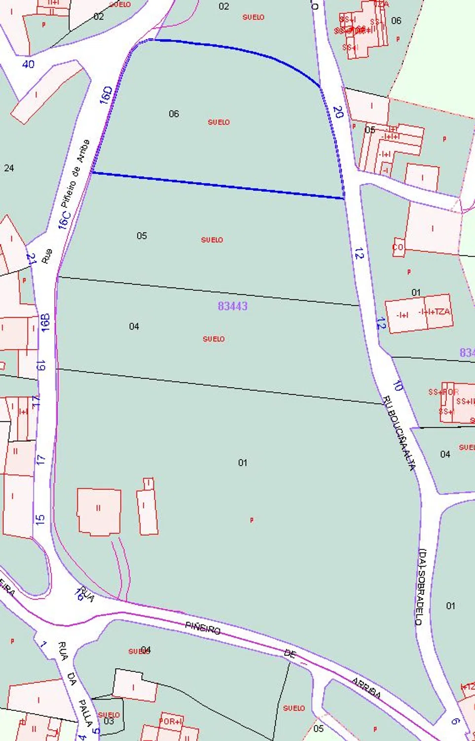 Parcela urbanizable en una de las mejores zonas de El Piñeiro (la marcada como "06" en la foto 2). Existe la posibilidad de vender también la parcela adyacente (la marcada como "05"; otros 2.000 m2.. . 4.000 en total entre ambas). Facilito certificado catastral para personas/empresas interesadas. El terreno está sujeto a un "plan de mejora de núcleos rurales", por lo que es necesario presentar un proyecto ante el Ayuntamiento de Villagarcía, que permitirá mantener la parcela original, o distribuir la superficie en parcelas de menor tamaño (entre 2 y 6). Superficie mínima edificable: 300 m2.