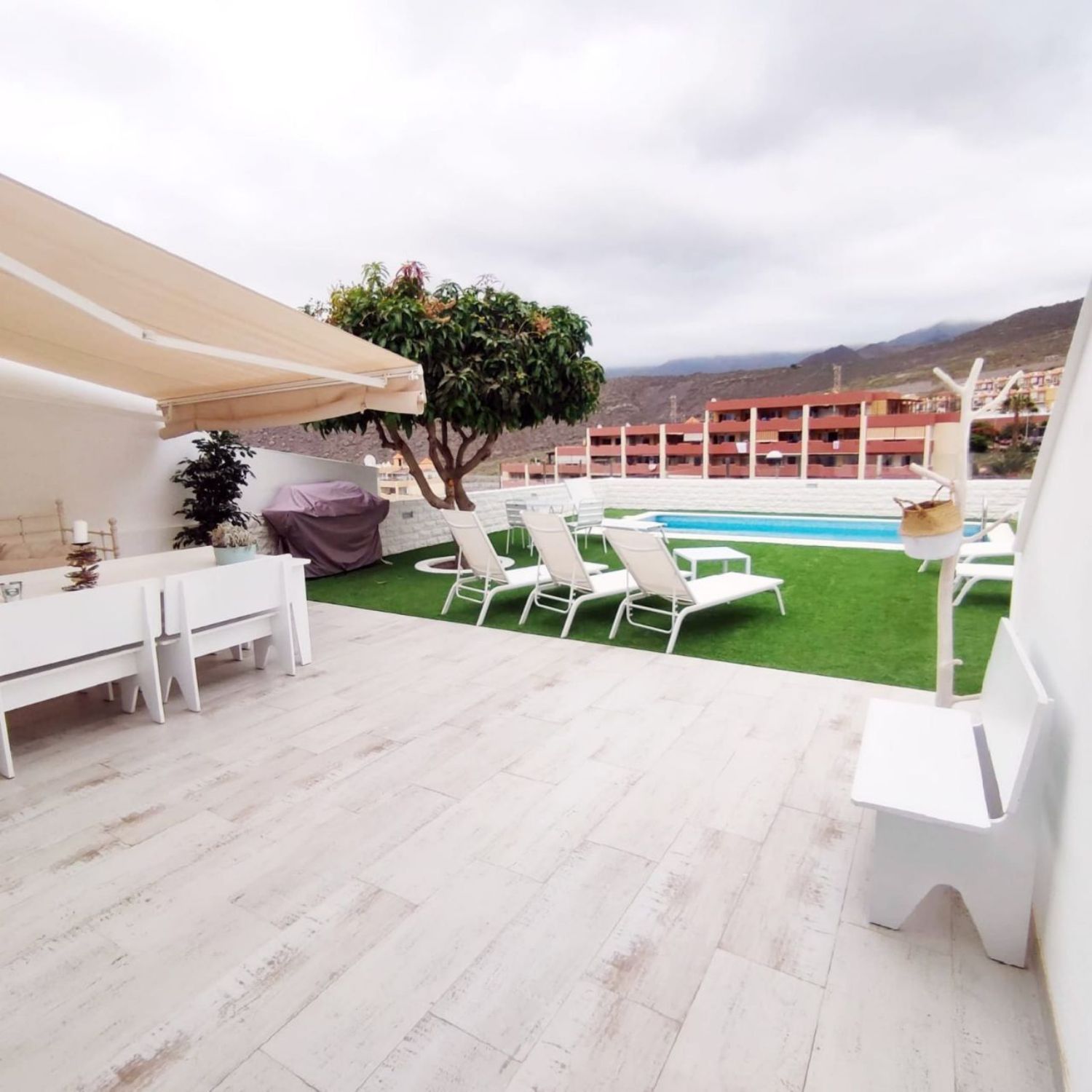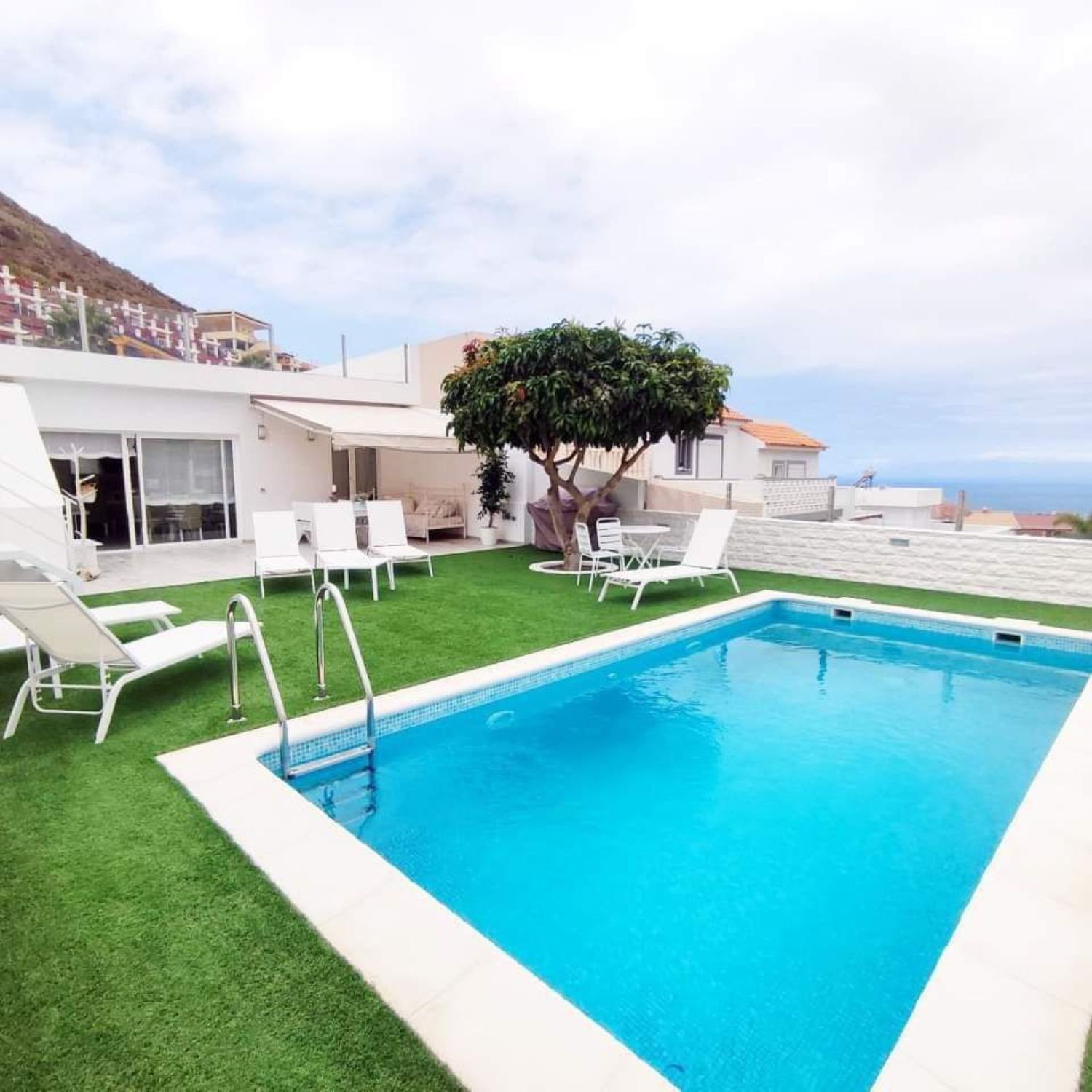 En venta, se ofrece este precioso chalet totalmente reformado con una piscina privada. Consta de 2 dormitorios y 2 baños, pero existe la posibilidad de crear 1 dormitorio más y 1 baño adicional. El inmueble se encuentra completamente equipado y amueblado, incluyendo electrodomésticos de alta calidad. La zona de la piscina es fantástica, con vistas a las montañas y al océano. Además, se ubica en una zona muy tranquila, ideal para residir. El chalet se encuentra cerca de un centro comercial, spa, tiendas, restaurantes y colegios, lo que lo convierte en una fantástica inversión tanto para vivir como para alquilar.