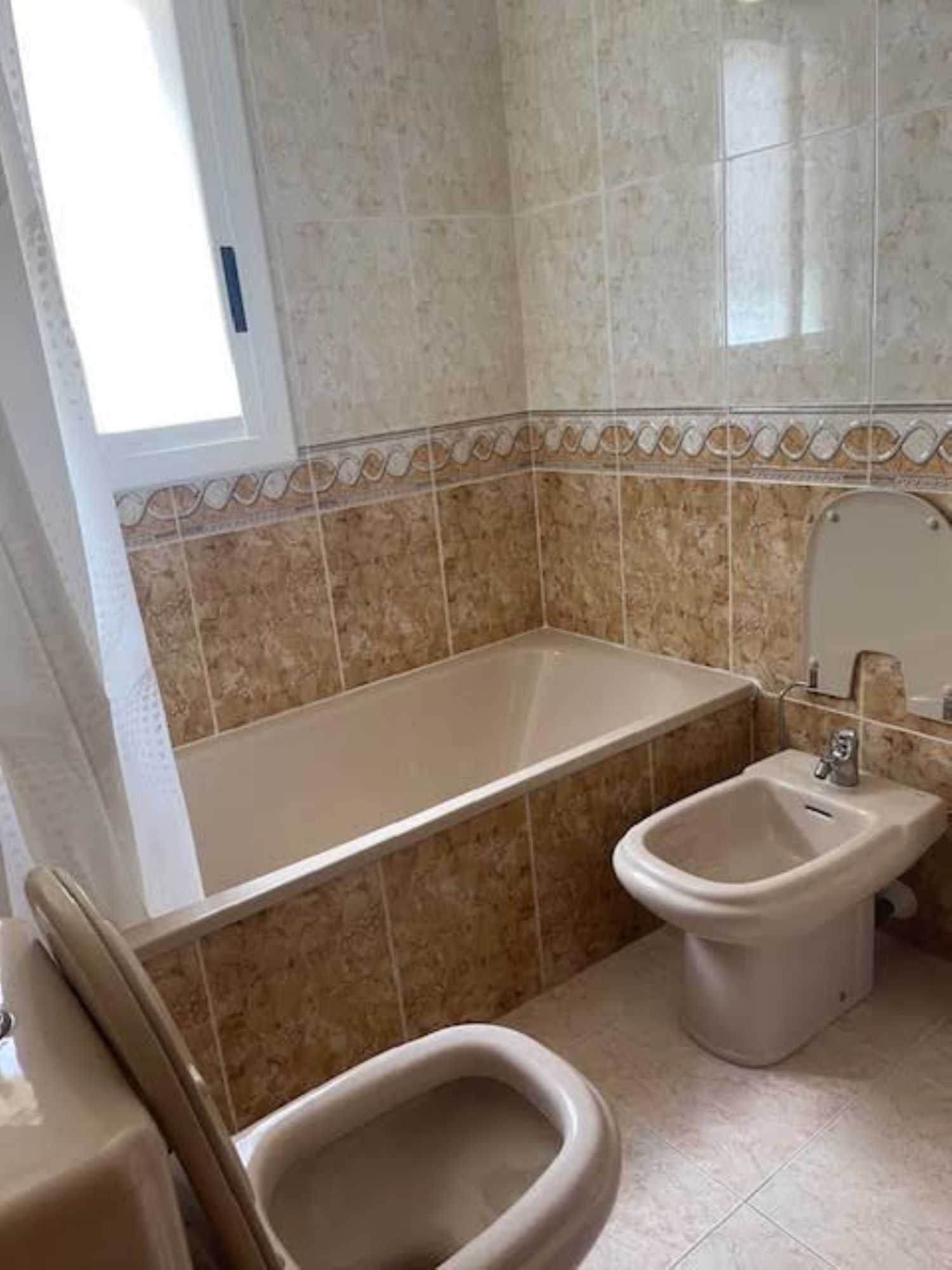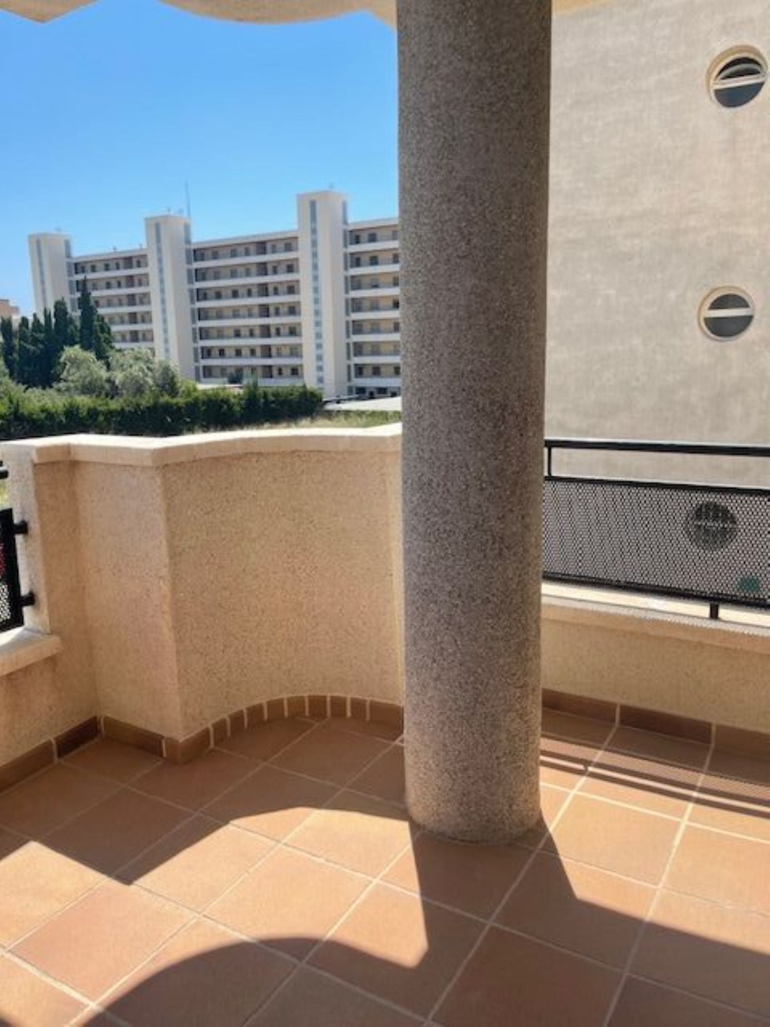 Piso en alquiler, en Calafell, en la exclusiva zona de Mas Mel, con 87 m ², muy cuidado, cuenta con recibidor amplio, dos baños completos, tres dormitorios, uno de ellos suite, cocina independiente, salon comedor con salida a la terraza, plaza de parking, trastero, carpinteria exterior de aluminio, amueblado y equipado con lavadora, nevera, horno y aire acondicionado con bomba de calor, playa a 100 m, vista lateral del mar, orientación sureste, cerca del cub popa.
