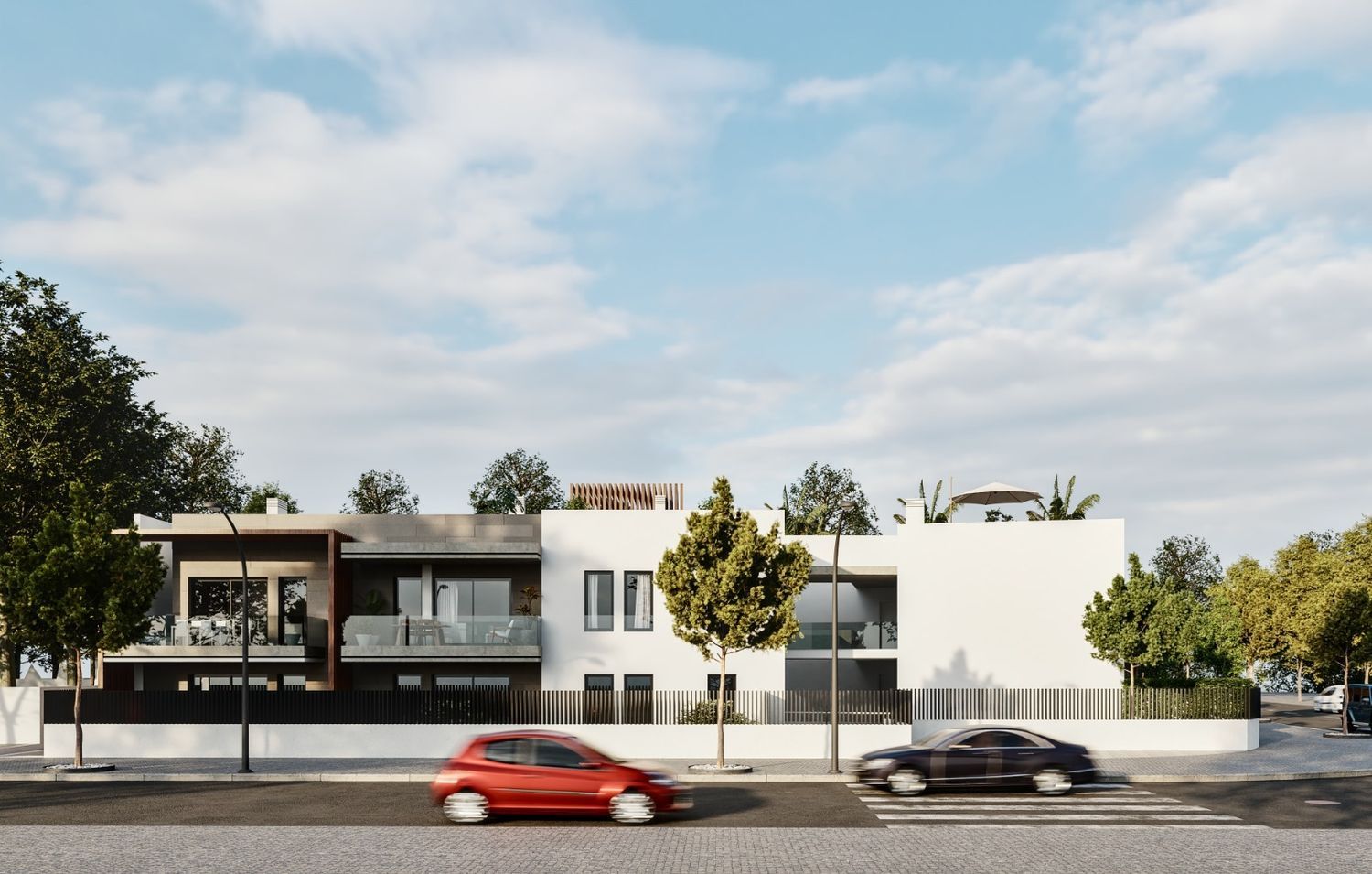Das Projekt umfasst 32 Wohneinheiten, verteilt auf fünf Gebäude, mit einer ansprechenden Mischung aus Erdgeschosswohnungen mit Garten und Penthouse-Wohnungen mit Solarium. Jede Wohnung verfügt über drei Schlafzimmer, zwei Bäder, eine offene Küche, die nahtlos in das Wohnzimmer übergeht, sowie eine großzügige Terrasse. Die Klimatisierung erfolgt mittels Luftkanälen und Warmwasser wird über ein modernes Aerothermiesystem bereitgestellt. Zusätzliche Parkplätze und Abstellräume sind innerhalb desselben Gebäudes verfügbar. Die gemeinschaftlich genutzte Anlage umfasst zudem einen erfrischenden Pool. Die Preise variieren zwischen 360.000 € und 395.000 €.