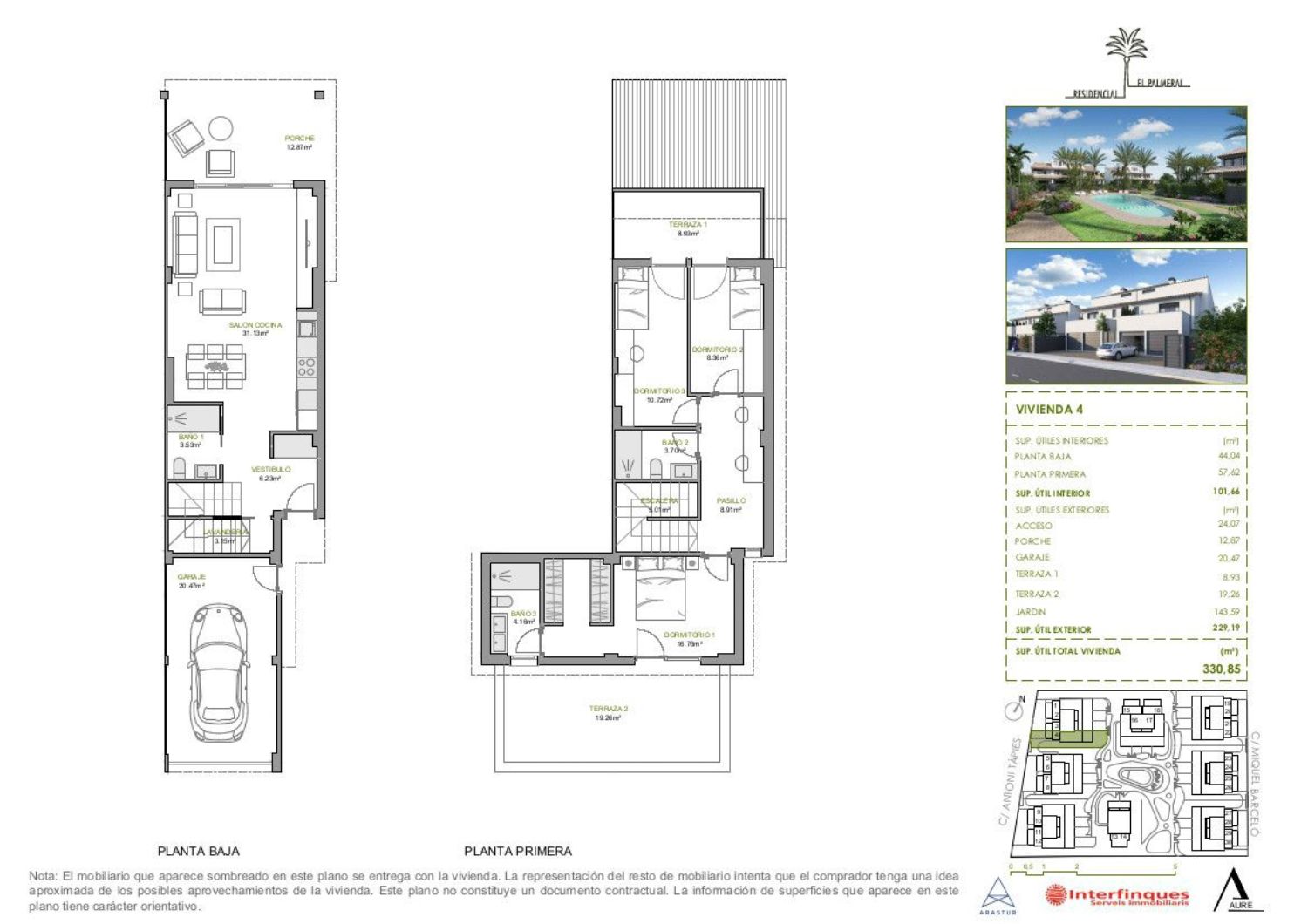 NUEVA PROMOCION! 18 VIVIENDAS (I FASE)Hospitalet de L'Infant RESIDENCIAL EL PALMERALConjunto de adosados con altas calidades, confortables, tecnólogicamente avanzadas, y alta eficiencia energética A-Alto grado de aislamiento térmico y acústico, ventanas y vidrios de alta calidad.Suelo RADIANTE frio/calorAgua caliente y calefacción mediante AEROTERMIASuelos de tarima flotante laminado de alta resistencia.Carpintería interior lacada blanca.Cocinas equipadas, encimera y frontal de cuarzo compacto ("silestone") Electrodomésticos: vitrocerámica, horno, microondas, campana extractora, lavadora y lavavajillas.Garaje 20m2- diferentes medidas de jardines privados PRECIOS SEGÚN M2- Gran zona comunitaria con Piscina.