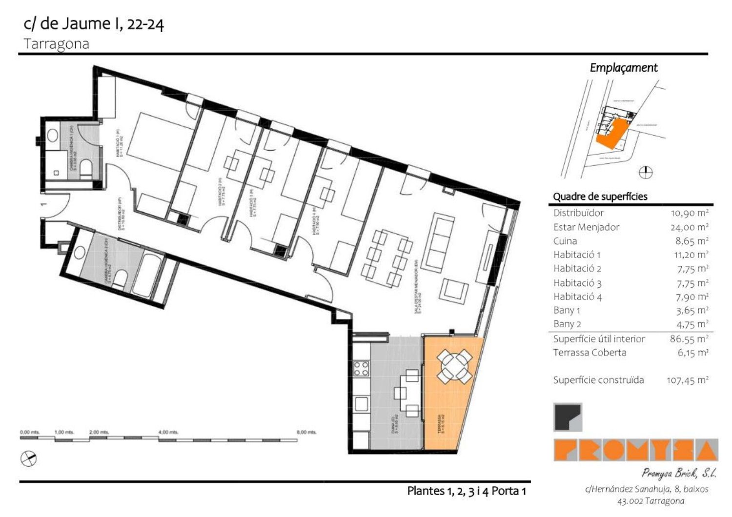 Esta promoción está ubicada en una zona céntrica de Tarragona entre Rambla Nova y La Tabacalera. A pocos metros nos encontramos con la Plaza de toros conocida hoy más como el “Tarraco Arena Plaza”, donde se puede disfrutar de una variedad de eventos. También nos encontramos cerca el parque urbano más grande de la ciudad, el “Parc de la Ciutat” donde poder disfrutar de buenos paseos relajantes bajo sus encinas, robles, almendros, pinos y cipreses.La “Necrópolis” es un lugar cercano de gran valor histórico y de interés turístico, y a pocos pasos de él nos encontramos con el “Centro Comercial Parc Central”, el único centro comercial ubicado dentro de la ciudad. Además, la promoción tiene una gran variedad de servicios cerca como el “Mercadona”, “Bon Área”, “EuroSpar”, “La Sirena”, gimnasio municipal, la Escuela Oficial de Idioma, etc.. . La obra dispondrá de 11 viviendas con tipológicas de 2, 3 y 4 dormitorios. Las viviendas se entregarán con cocinas equipadas. Los suelos serán de parqué de alta calidad a escoger en 3 colores, los baños irán alicatados a escoger entre 2 opciones disponibles.Calificación energética C.Edificio dotado de 1 ascensor.Promoción en fase de comercialización. No se lo piense, pídanos toda la información necesaria de nuestras viviendas.