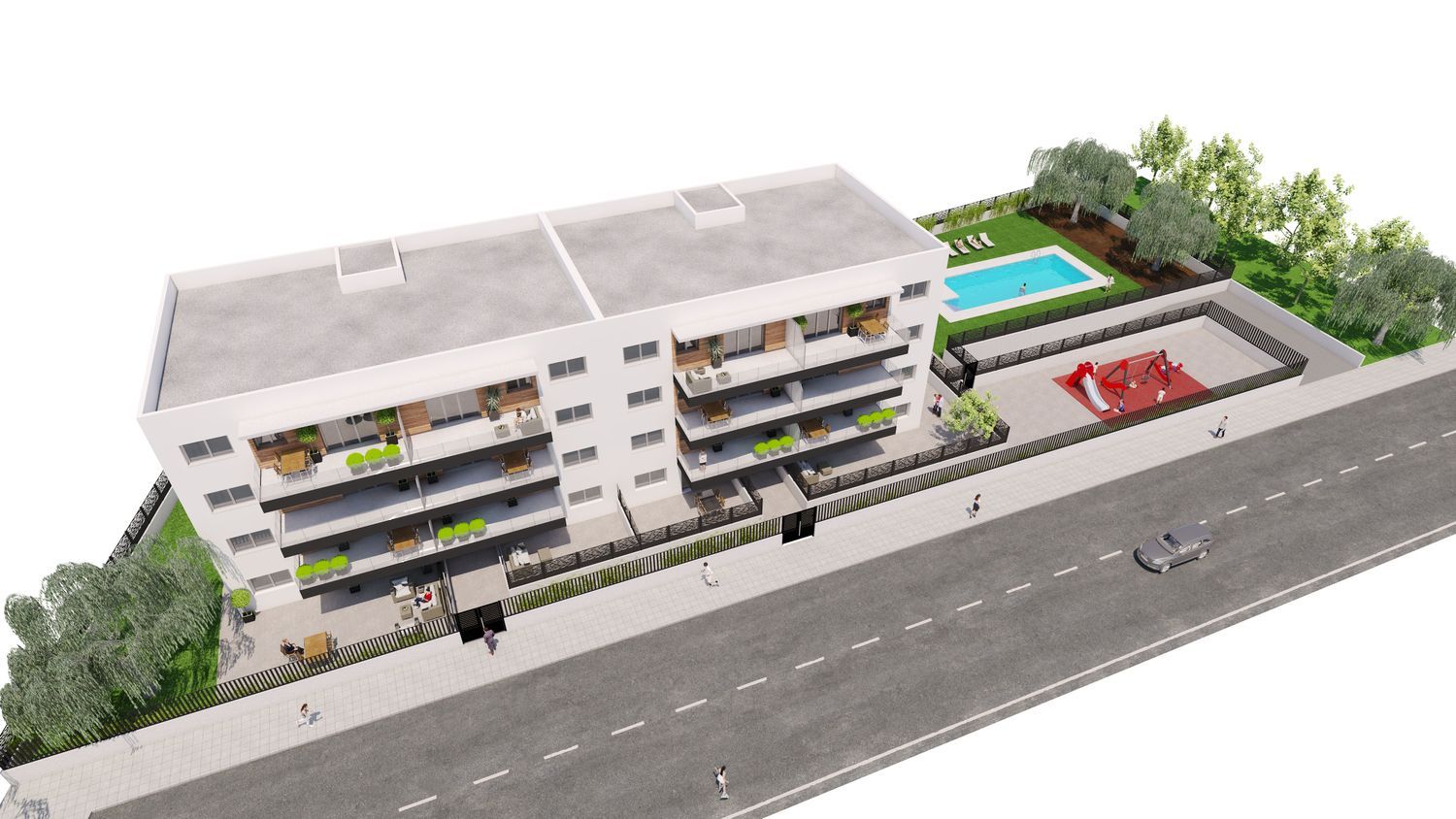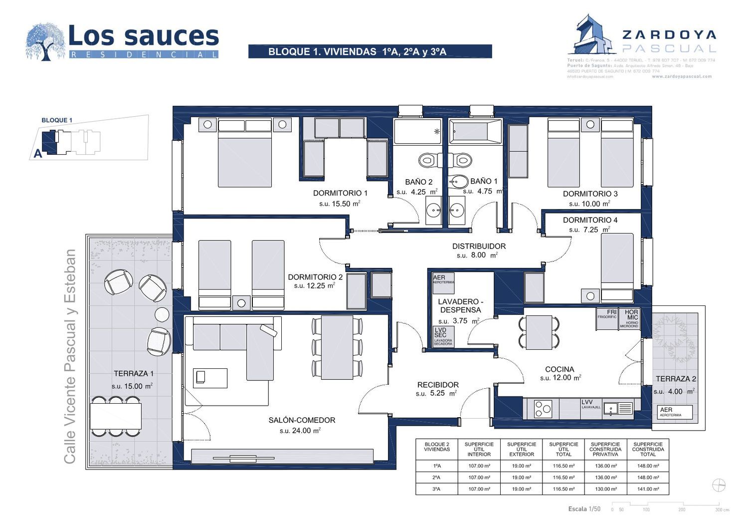 Nueva promoción de viviendas en la zona Ensanche de Teruel, “RESIDENCIAL LOS SAUCES”Ubicado en la calle Vicente Pascual y Esteban de Teruel, LOS SAUCES es un residencial formado por dieciséis viviendas con piscina, el reducido número de viviendas y su exclusiva ubicación en una de las zonas más tranquilas del ensanche, confiere a este residencial un carácter privado e íntimo.Todas las viviendas están orientadas al sur por lo que disponen de sol directo durante todo el día y ventilación cruzada.Destacan como en todas nuestras construcciones la calidad de los materiales y los aislamientos utilizados que junto con el sistema de calefacción por Aerotermia le confieren la calificación energética “A”.Disponemos de viviendas de 4 habitaciones en planta baja, primera, segunda y tercera.El Residencial Los Sauces se encuentra próximo a:•Centros educativos cercanos, colegio La Salle, CEIP La Fuenfresca, IES Segundo de Chomón.•Servicios comerciales, encontrando en las inmediaciones supermercados como Mercadona o Aldi.•Centros deportivos, a escasos 400 metros del Campo de fútbol municipal Pinilla y la piscina climatizada.•Centros sanitarios, situado a 200 metros del Centro de Salud del Ensanche.•Áreas verdes.