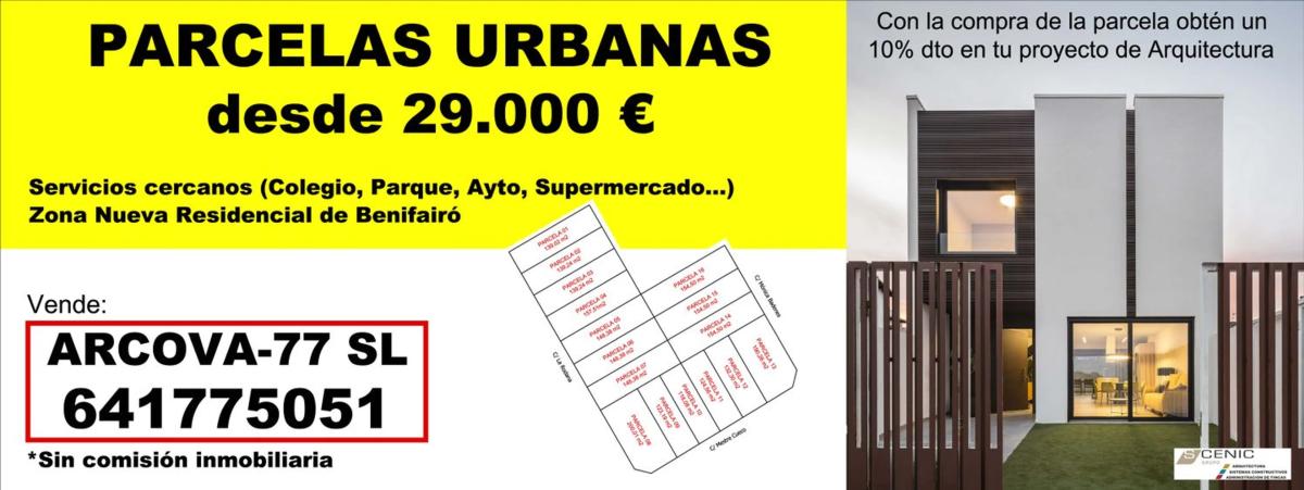¡Tu Futura Casa en Benifairó de les Valls! Venta de parcela urbana de 180 m², en Calle José Micó, 54. Frente a parque y jardín, y con vistas a la montaña. Zona residencial tranquila, cerca d...