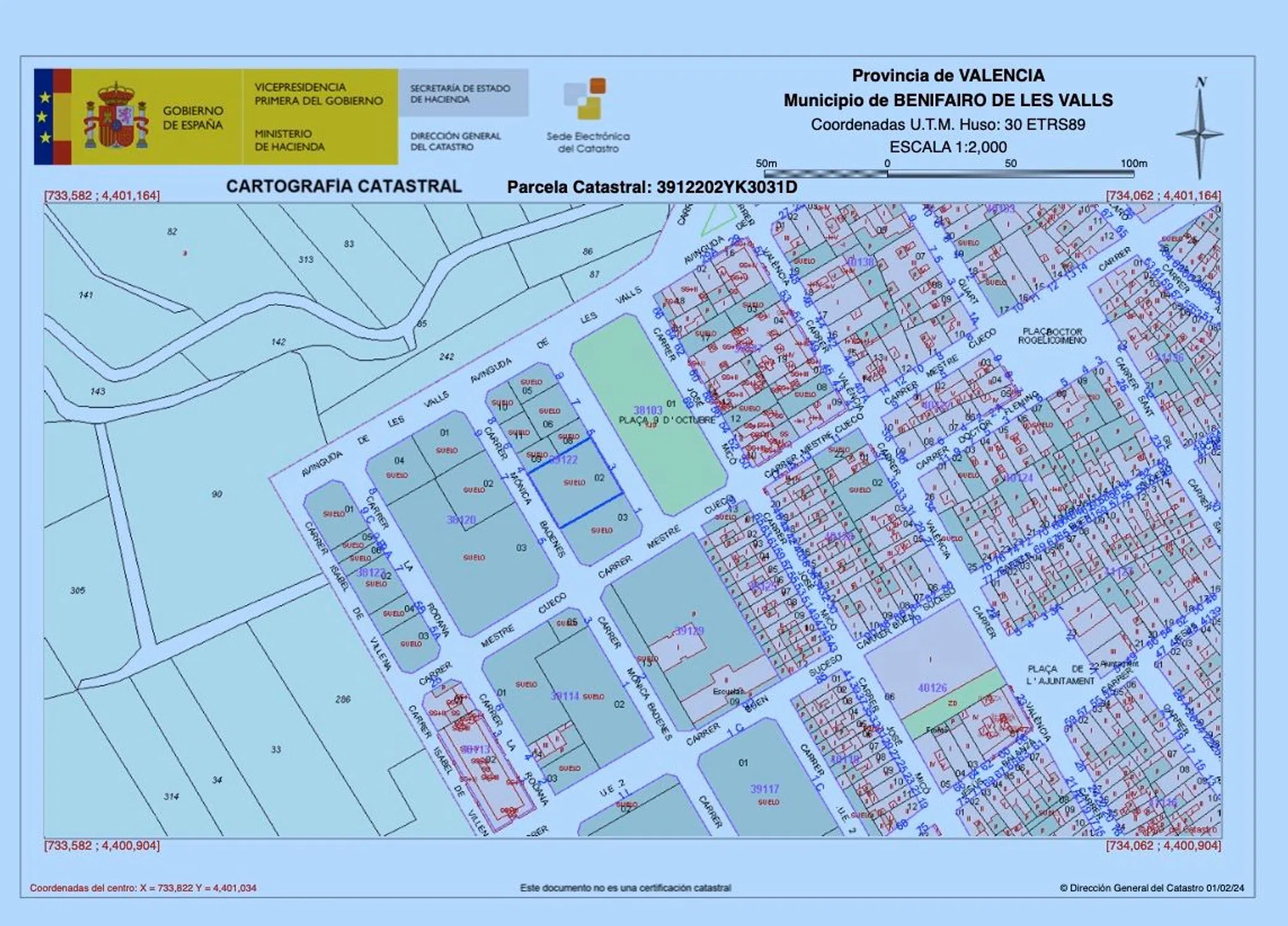 Se vende terreno en suelo urbano en zona nueva de benifairo de les Valls con superficie de 590m2. Justo al lado de parques, zonas verdes, colegios y rodeado de obra nueva. EDIFICABILIDAD: Cuatro alturas de edificabilidad + semisótano. REFERENCIA CATASTRAL: 3912202-YK3031D-0001-HU.